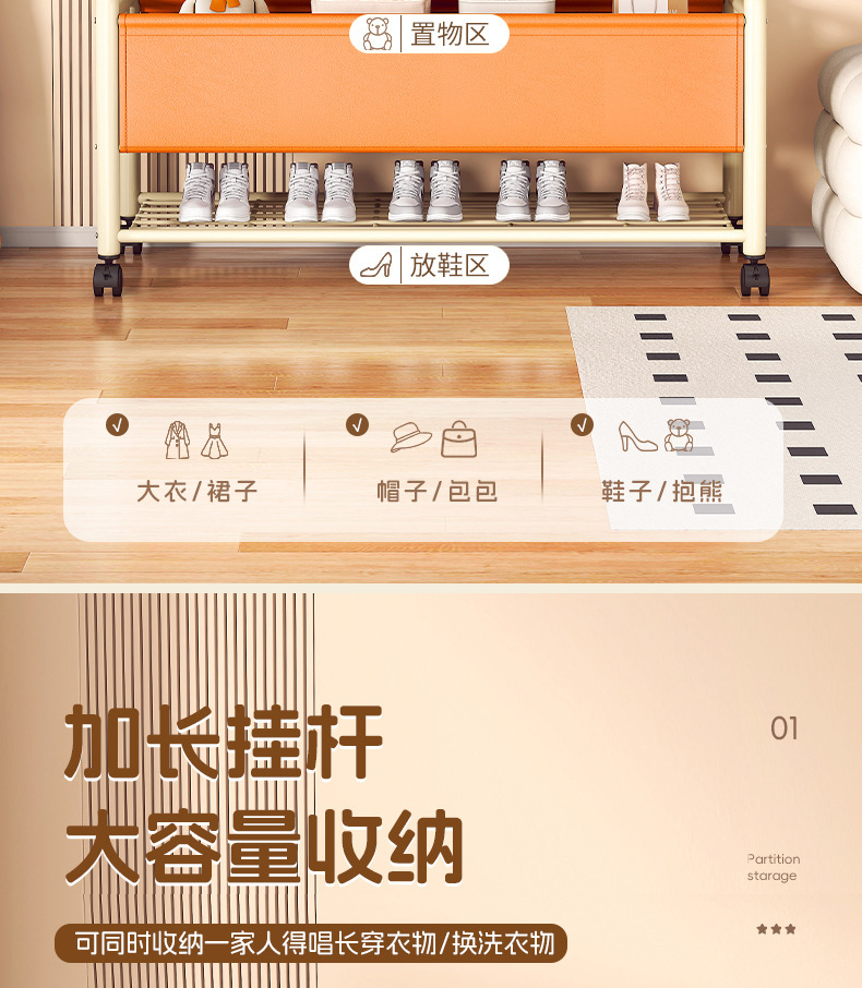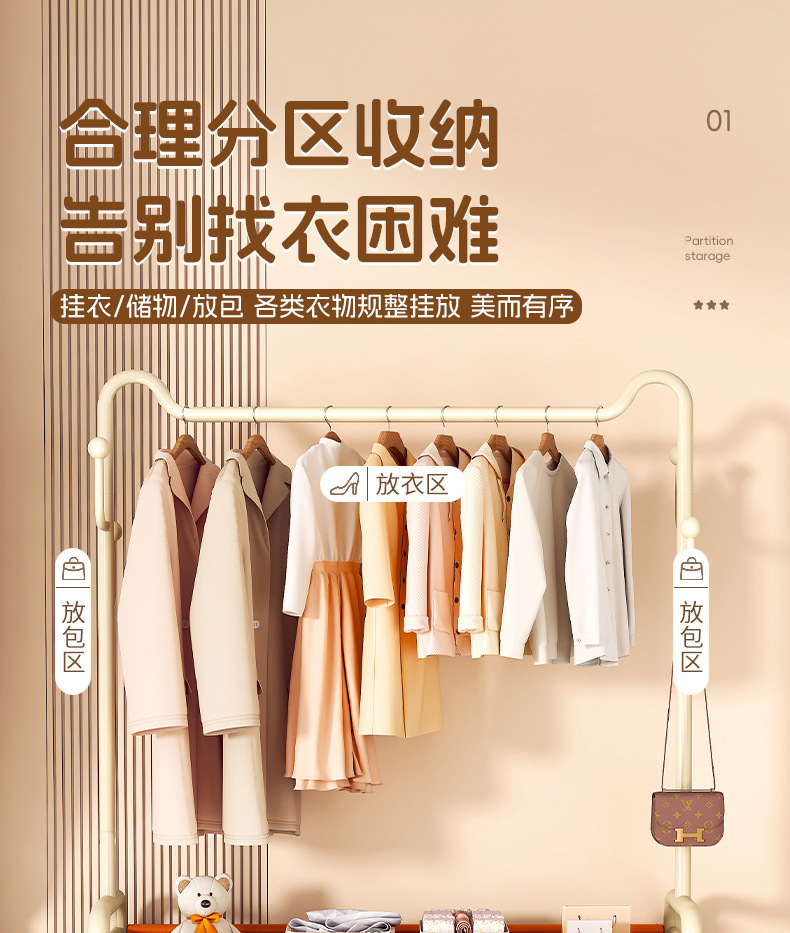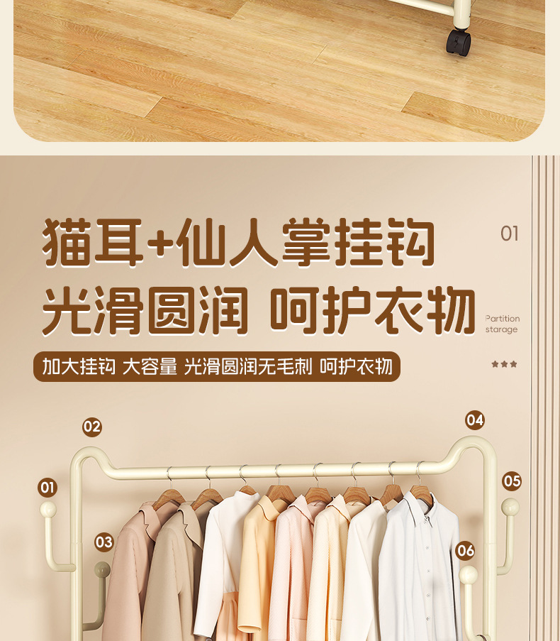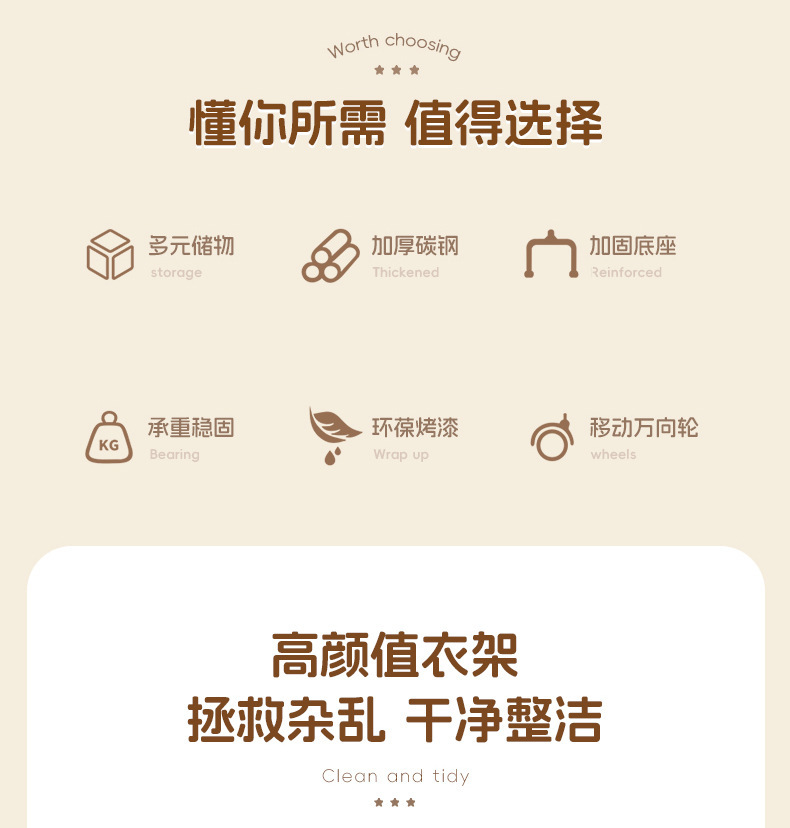 衣架落地卧室挂衣架家用室内移动轻奢晾衣架多功能收纳置物衣帽架