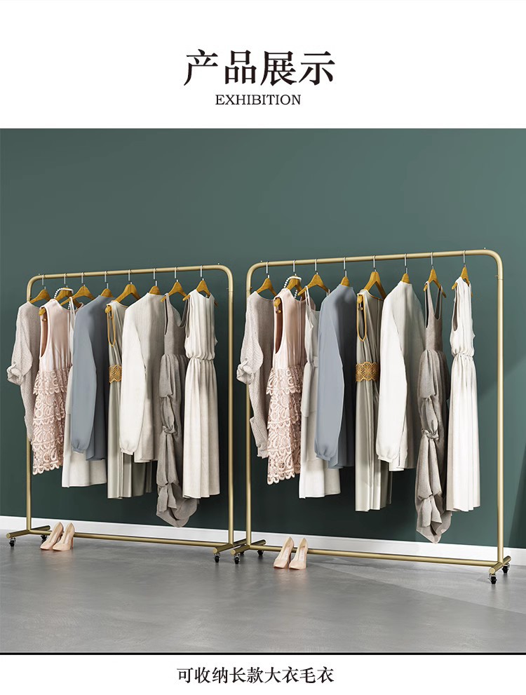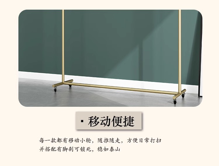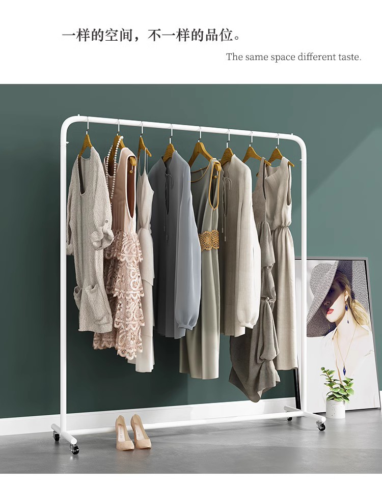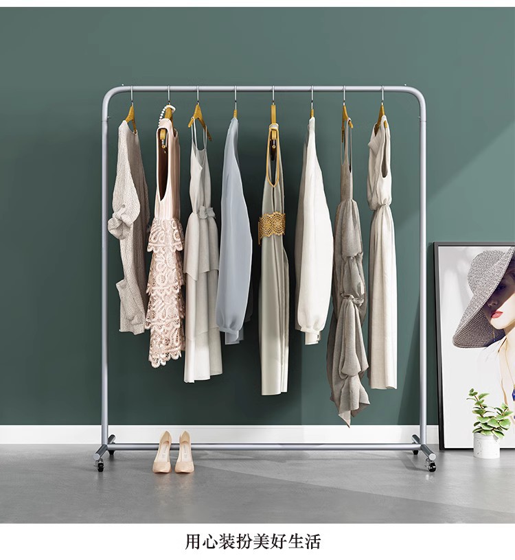 晾衣架单杠挂衣架卧室衣架杆移动衣服架子多功能室内衣帽架带轮子