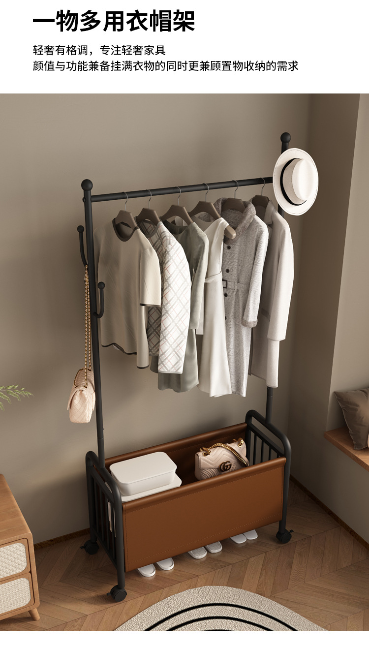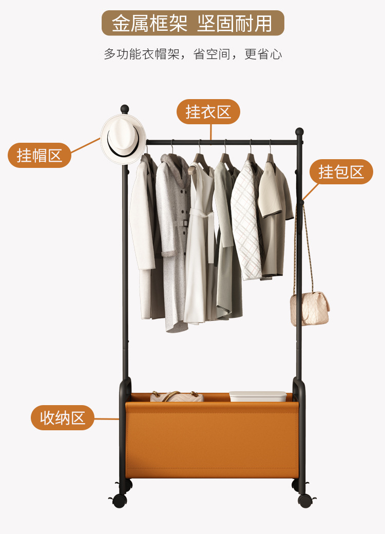 衣帽架卧室落地奶油风简易挂衣架可移动衣架网红轻奢衣服收纳架子