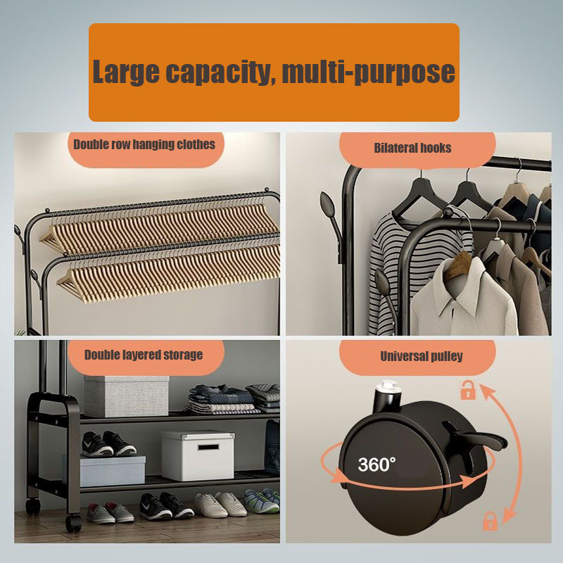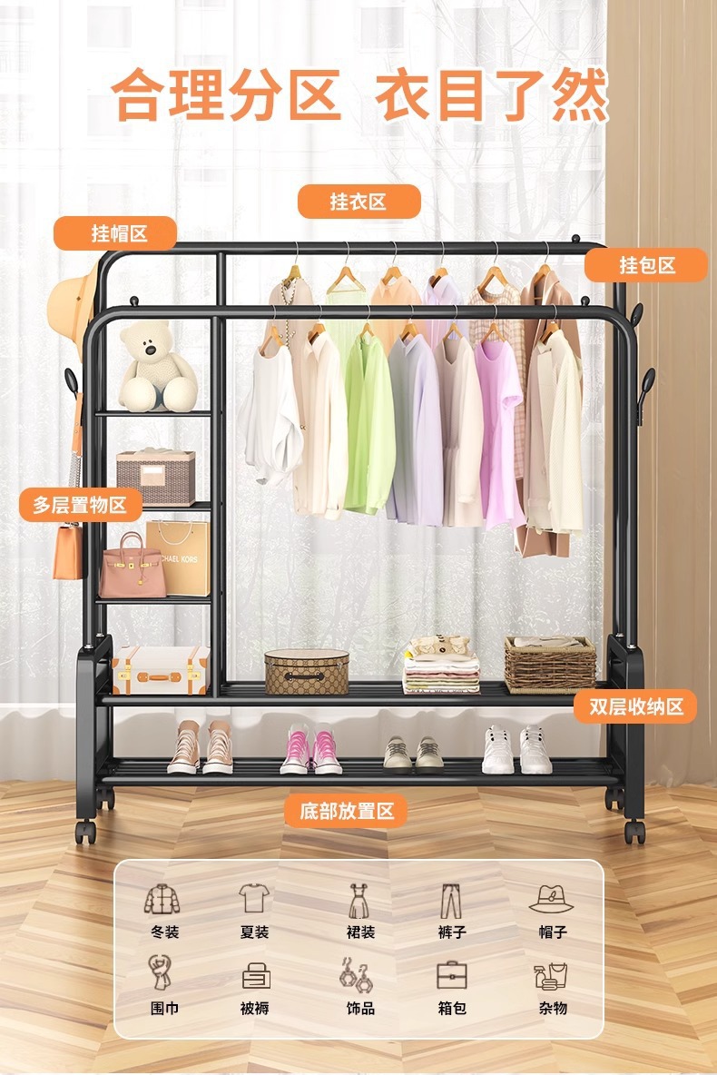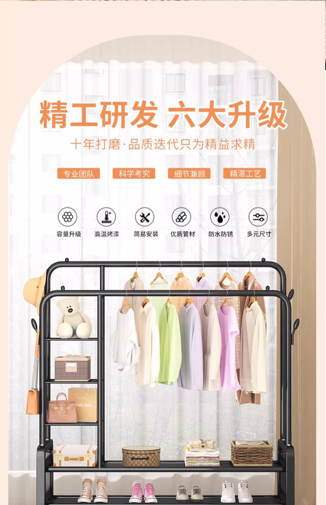 晾衣架落地衣帽架室内简约双杆衣架家用卧室挂衣架简易凉衣服架子