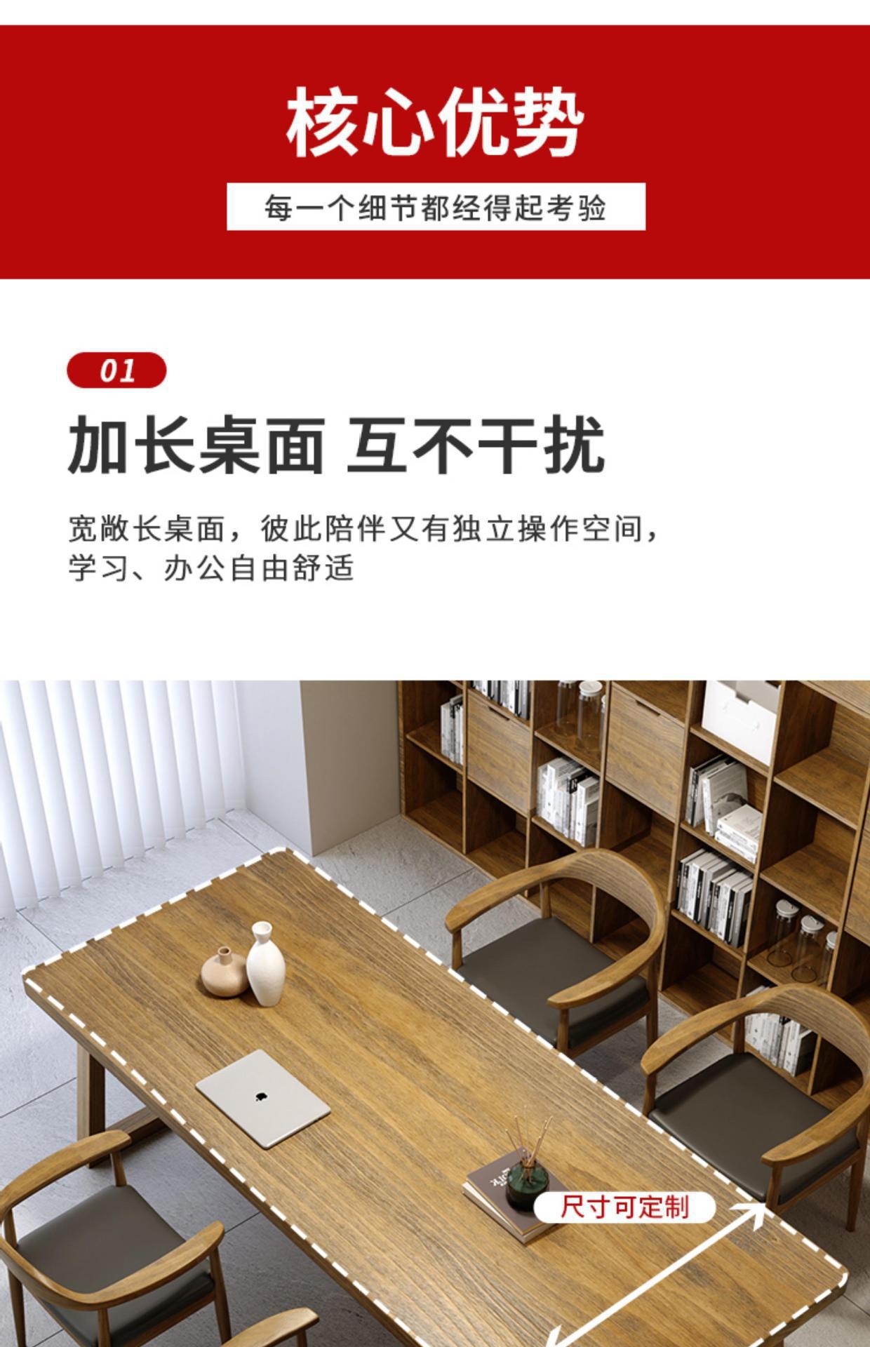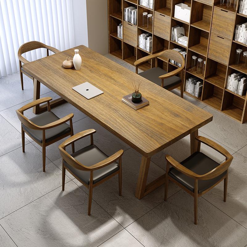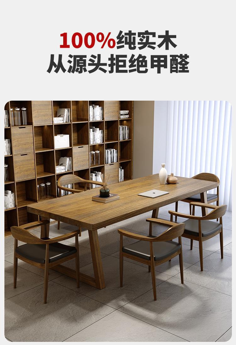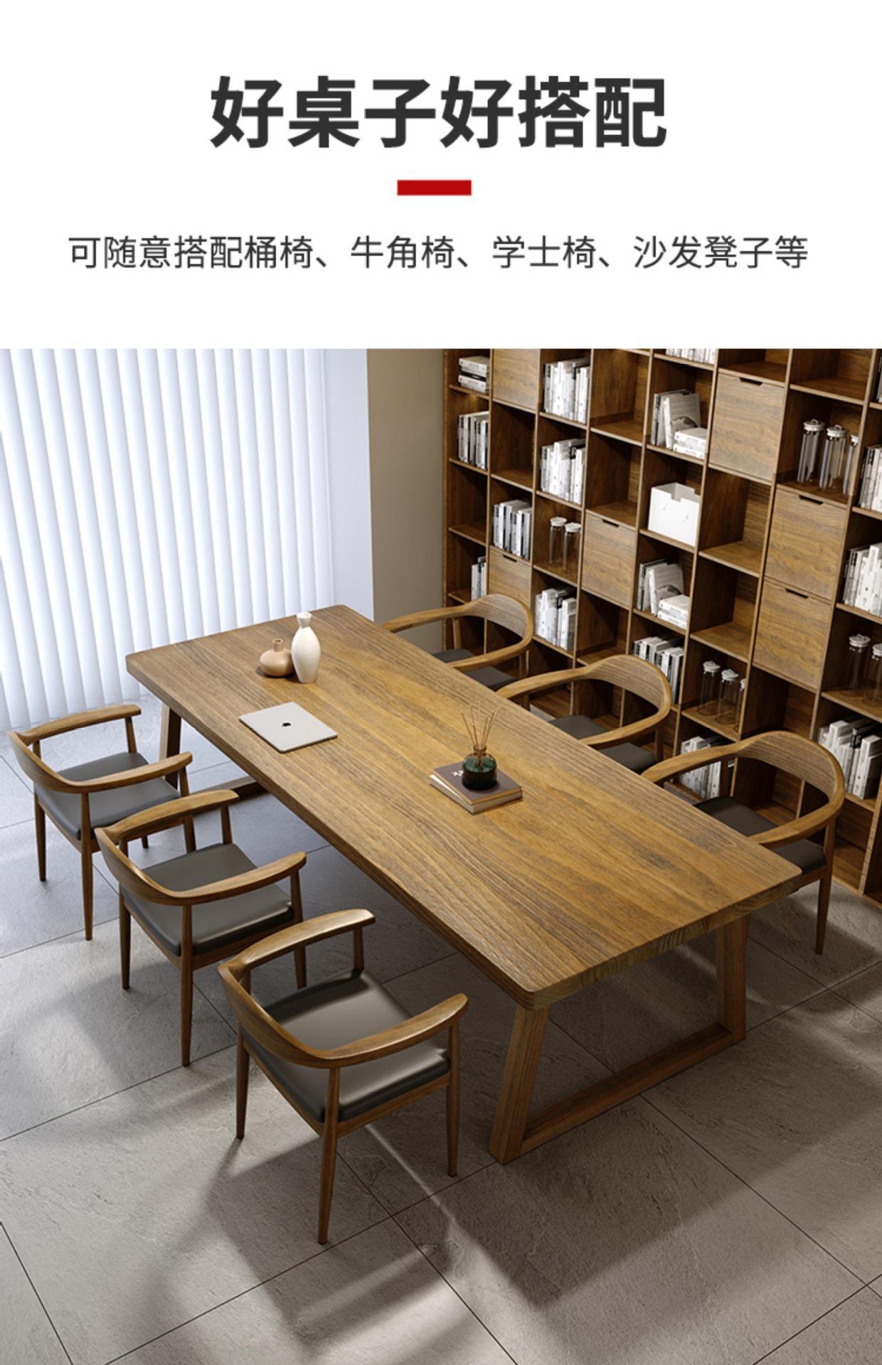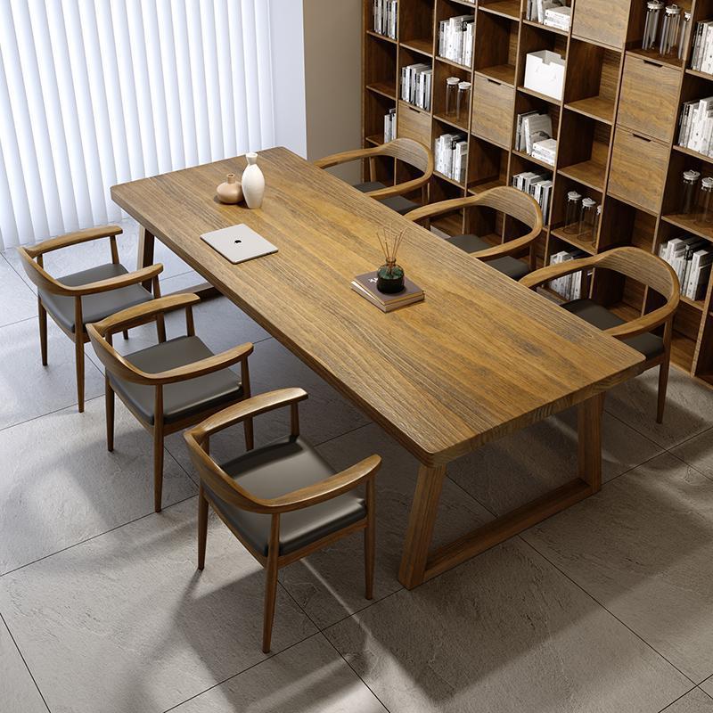 美式实木会议桌 工作室长方形商务洽谈桌椅 公司职员培训会议桌