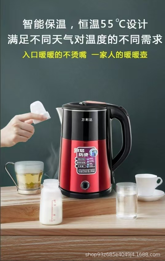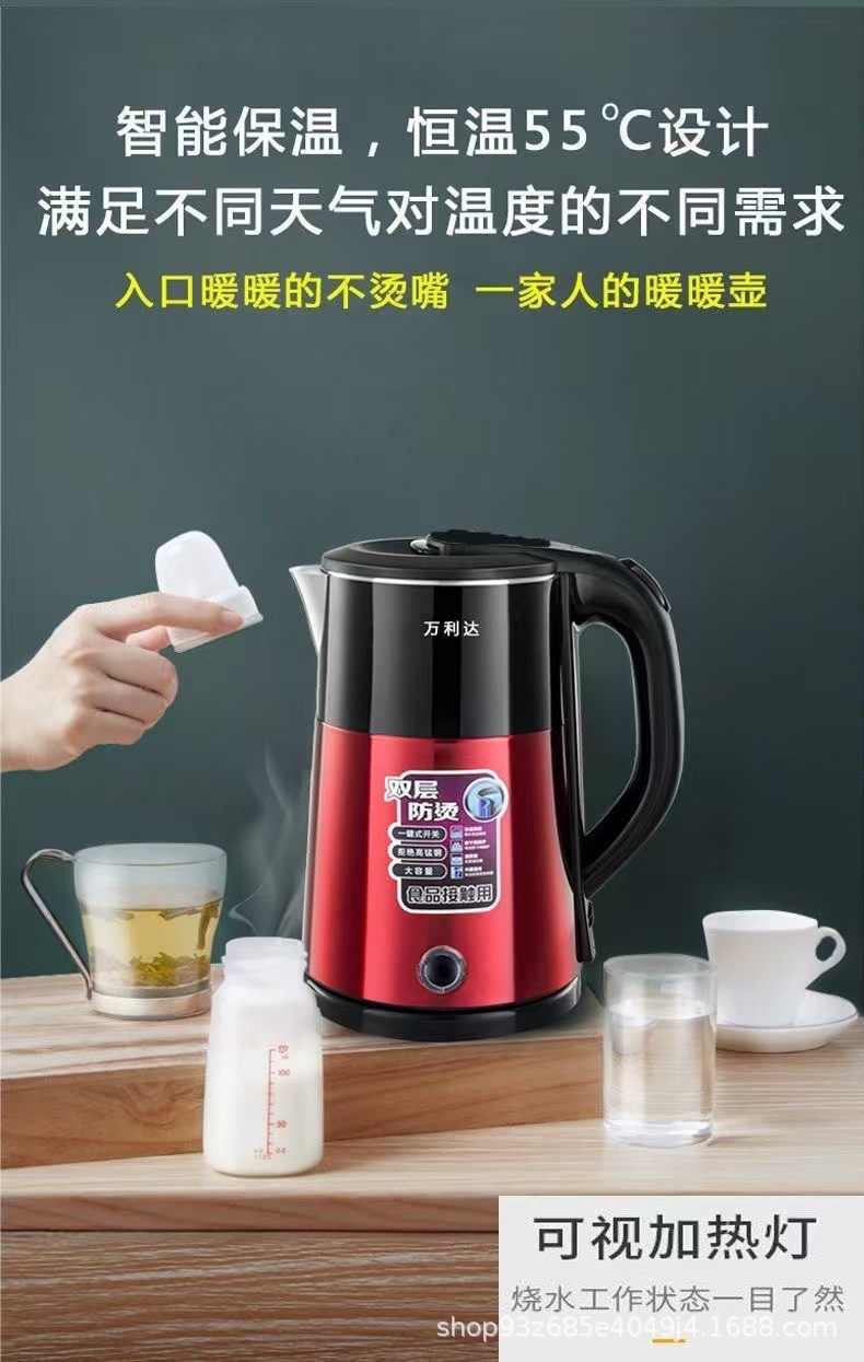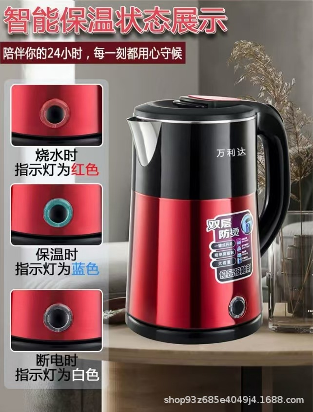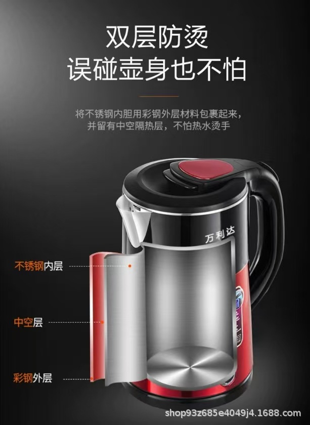 新款万利达彩钢电热水壶办公家用不锈钢大容量水壶自动断电烧水壶