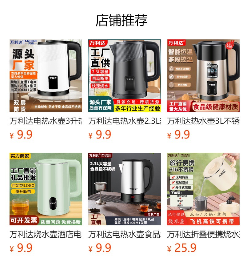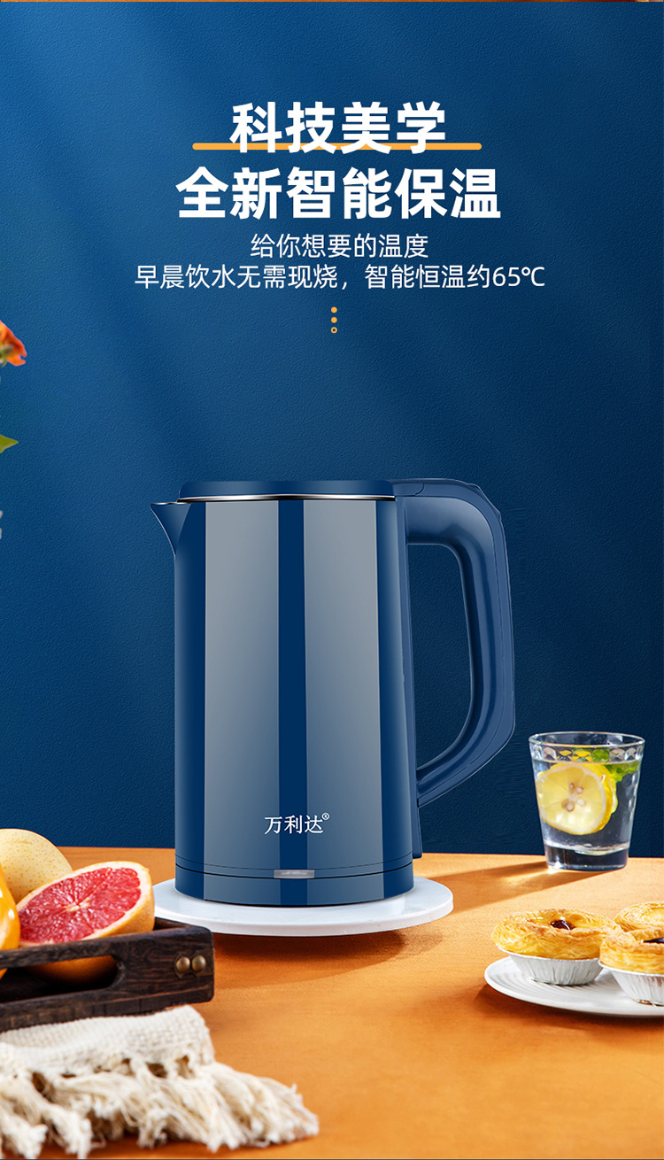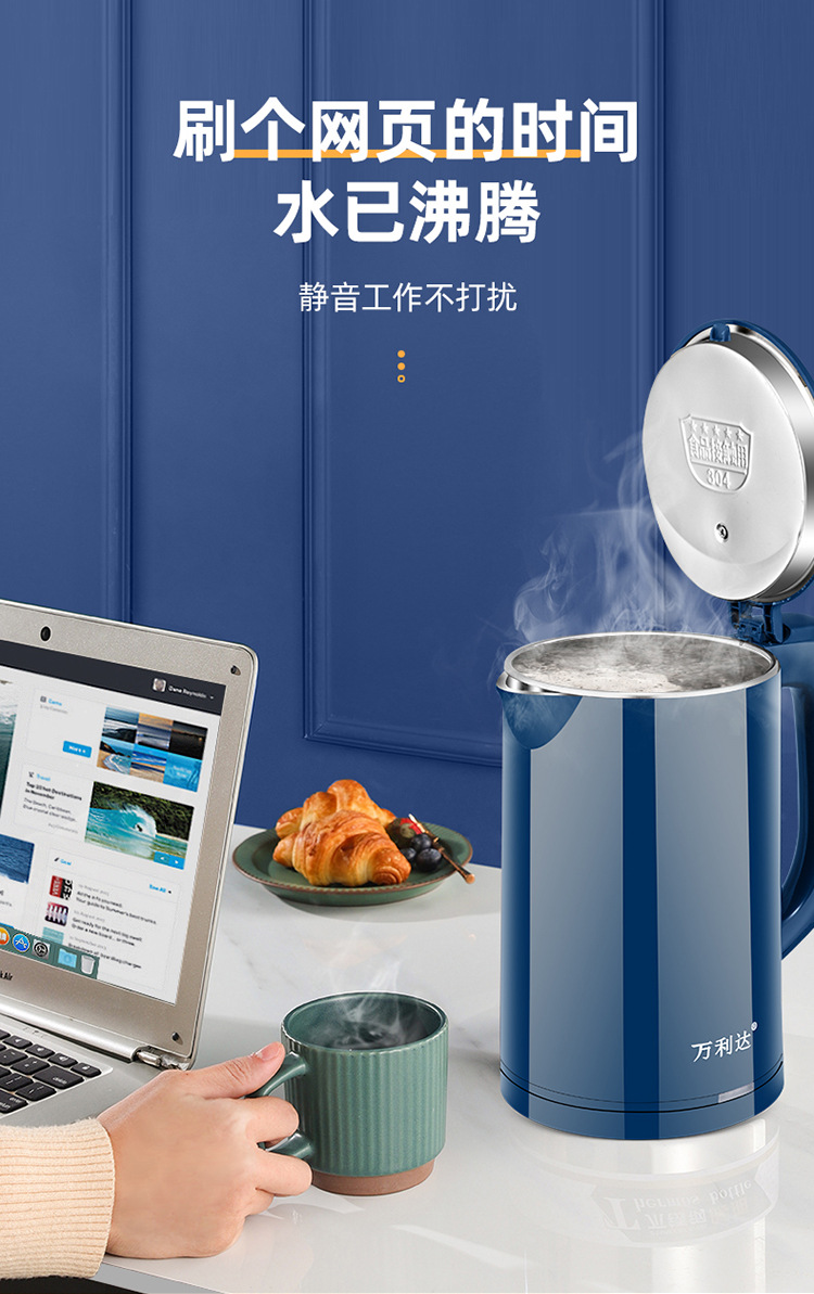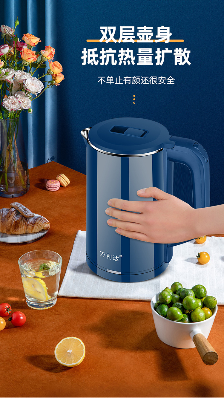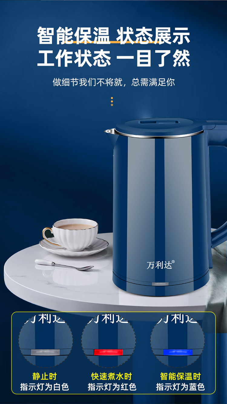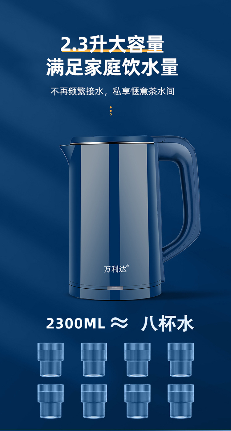 万利达烧水壶酒店电水壶不锈钢热水壶家用电水壶礼品logo速卖通