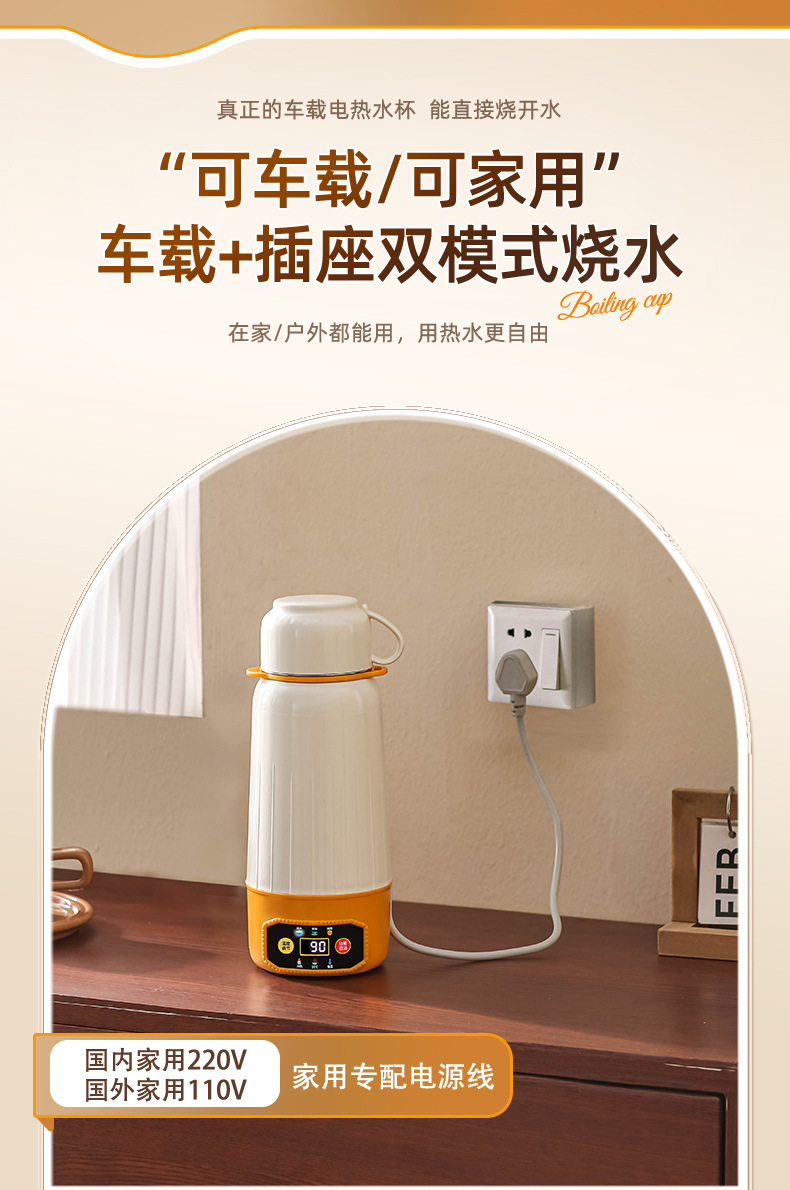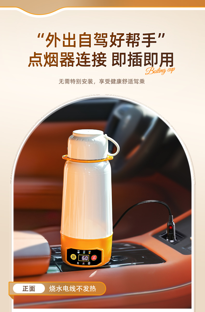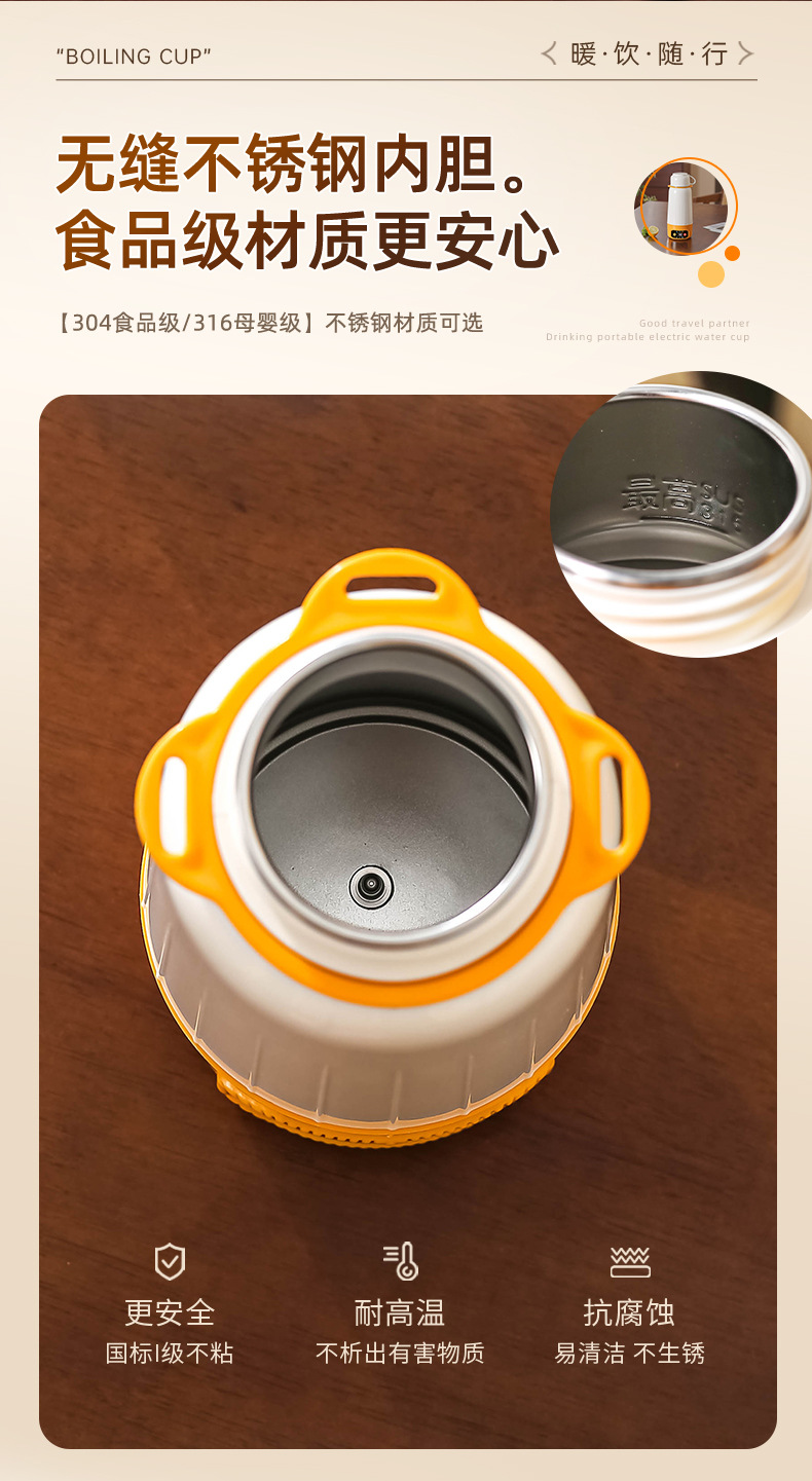 车载烧水杯便携式烧水壶旅行热水壶316不锈钢加热保温电热杯礼品