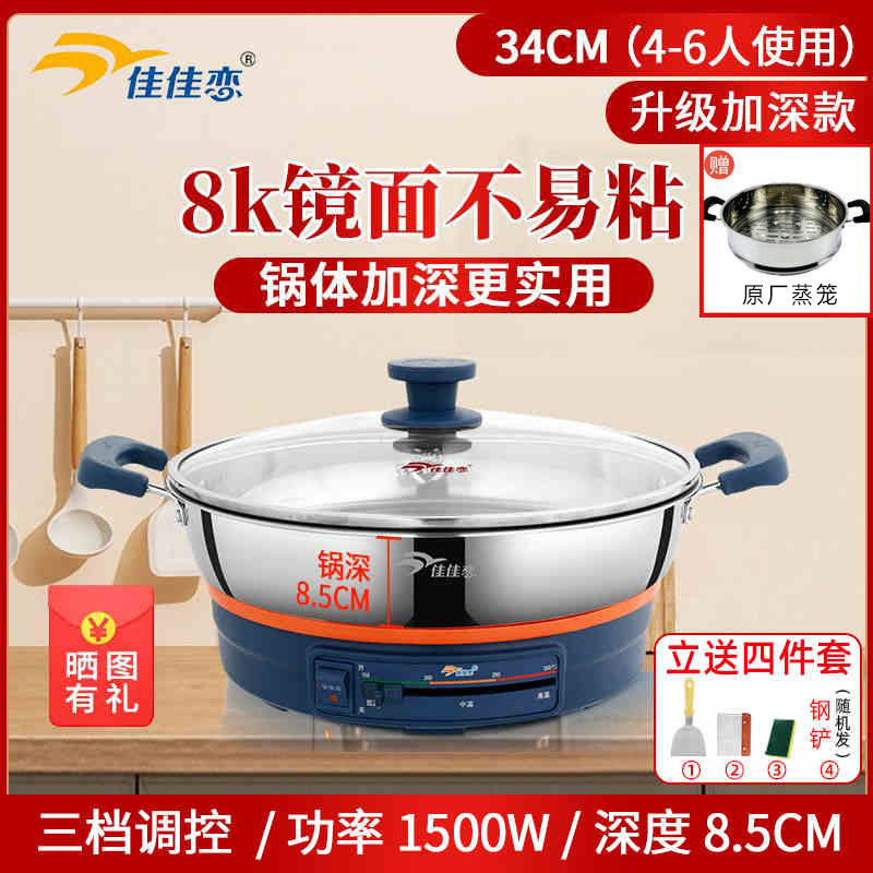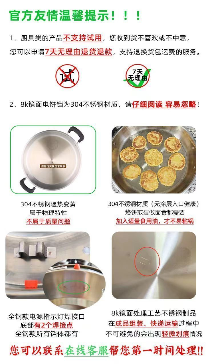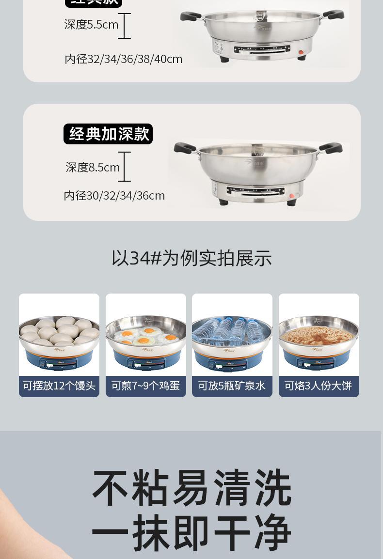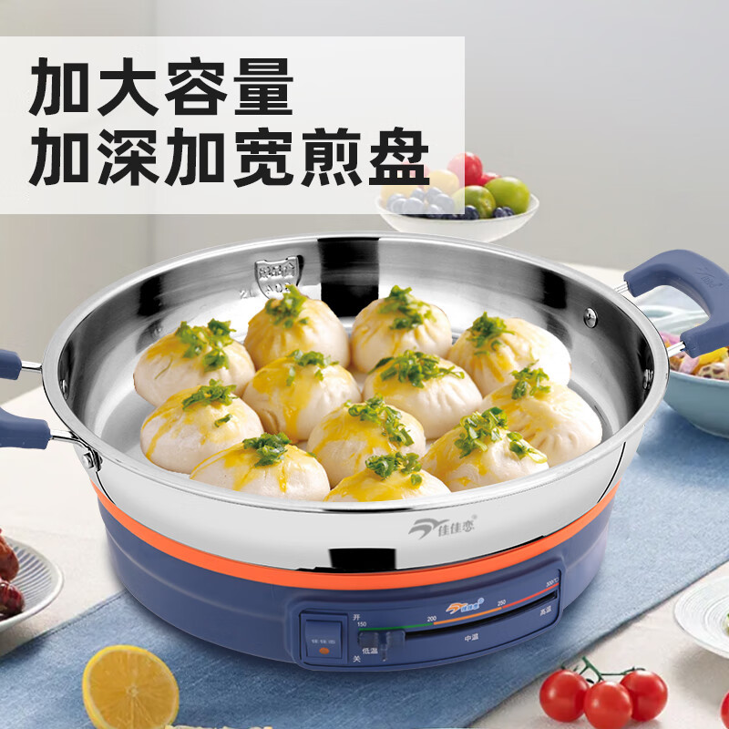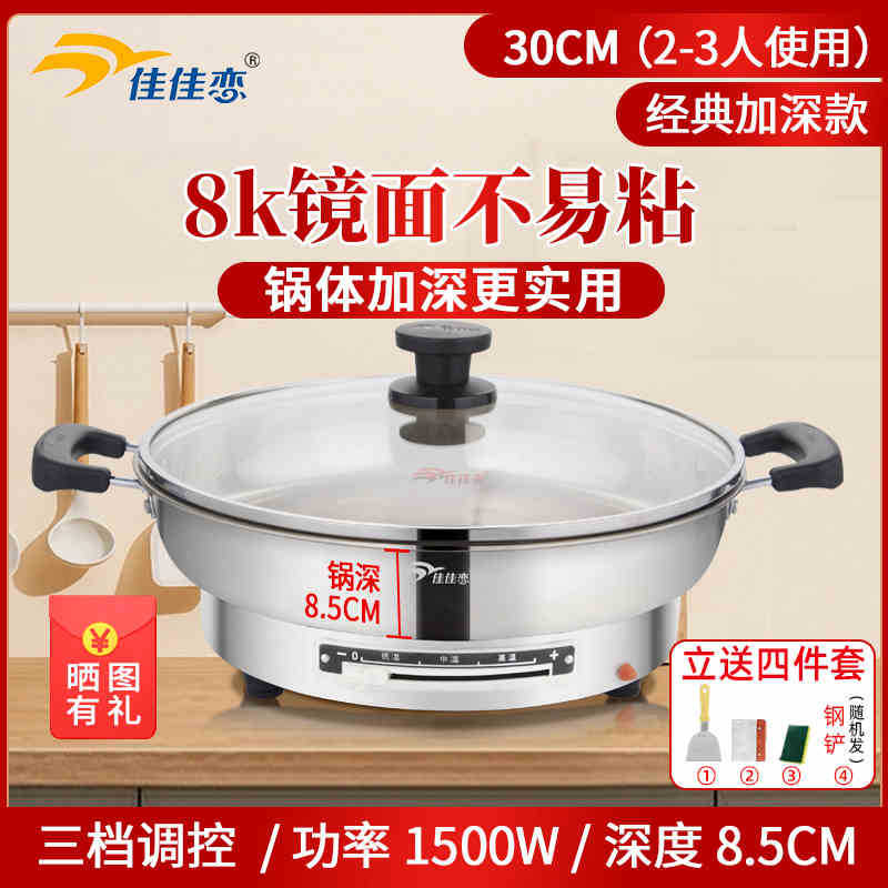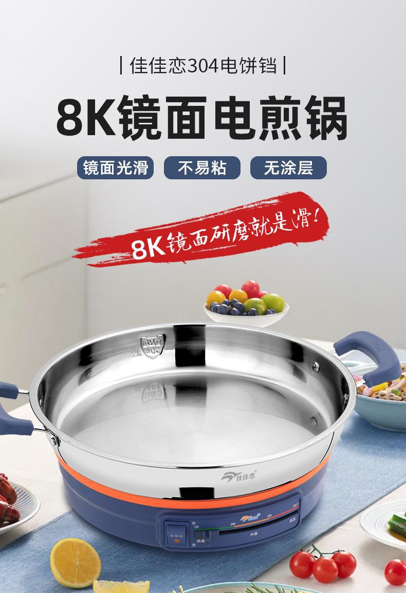 佳佳恋电饼铛304不锈钢电煎锅加大加深加厚8K镜面多功能电平底锅