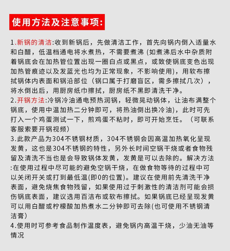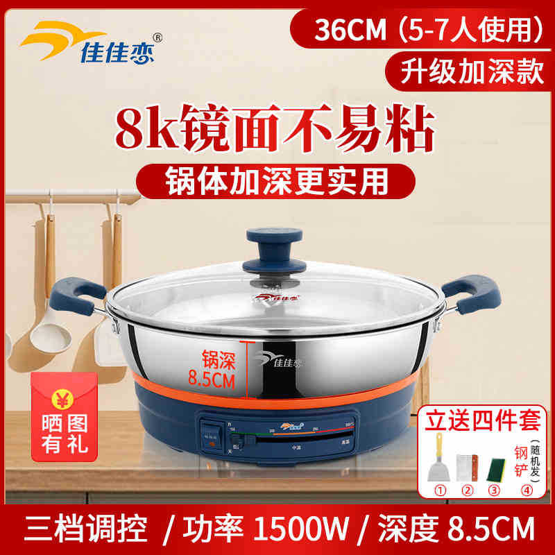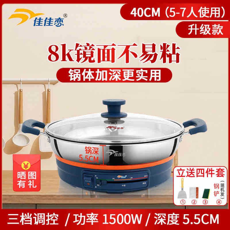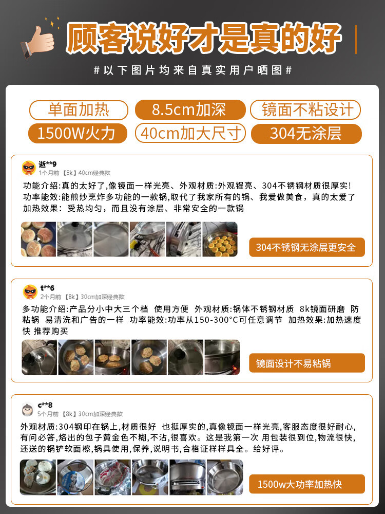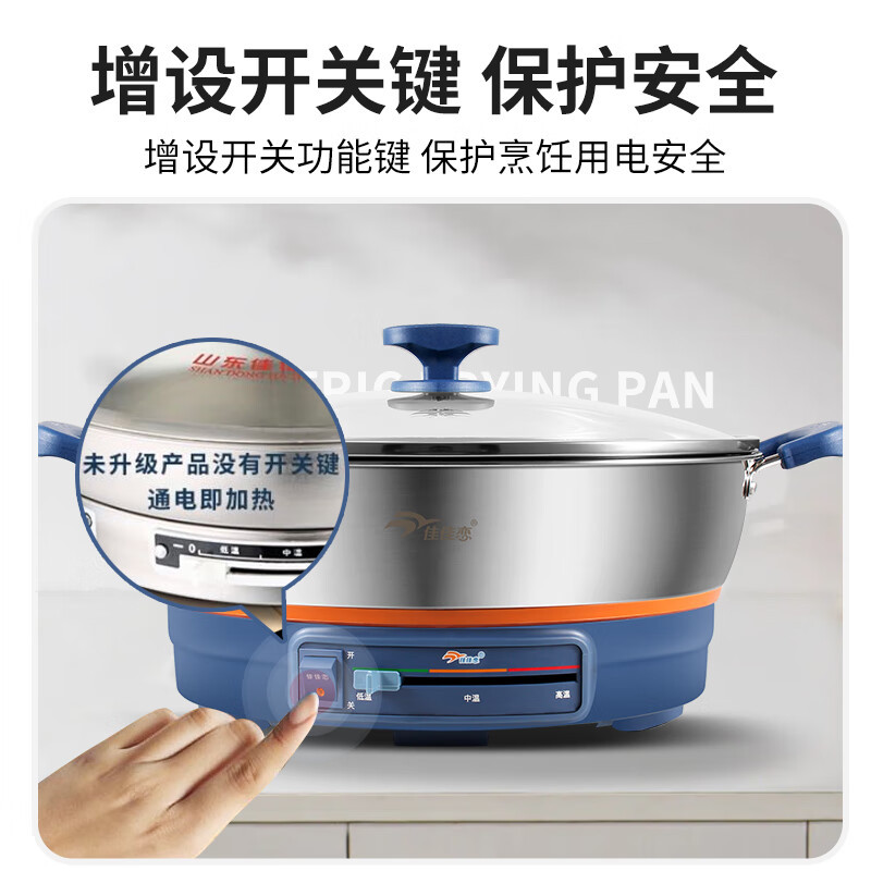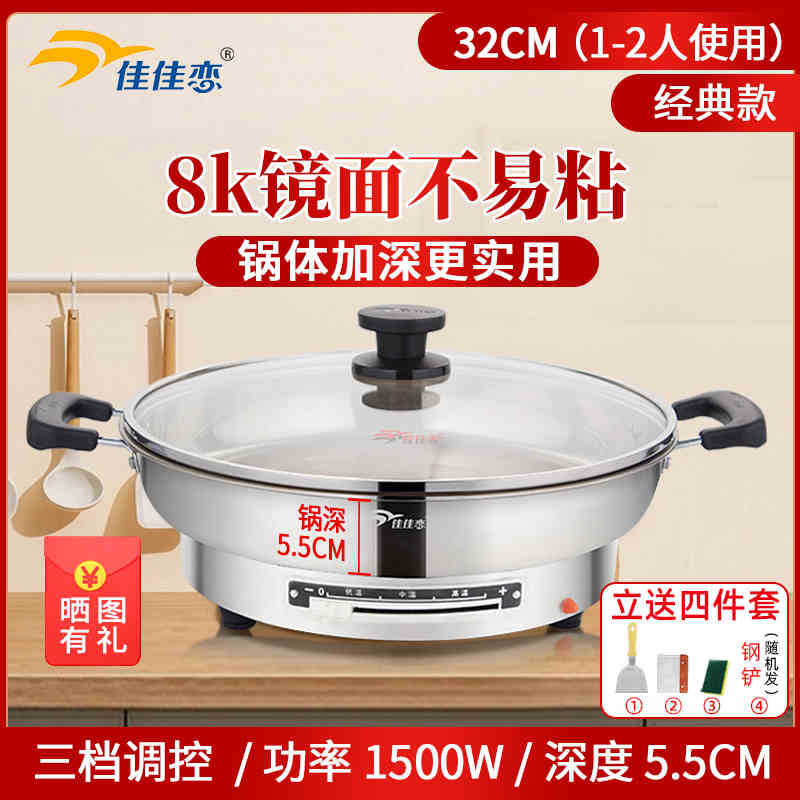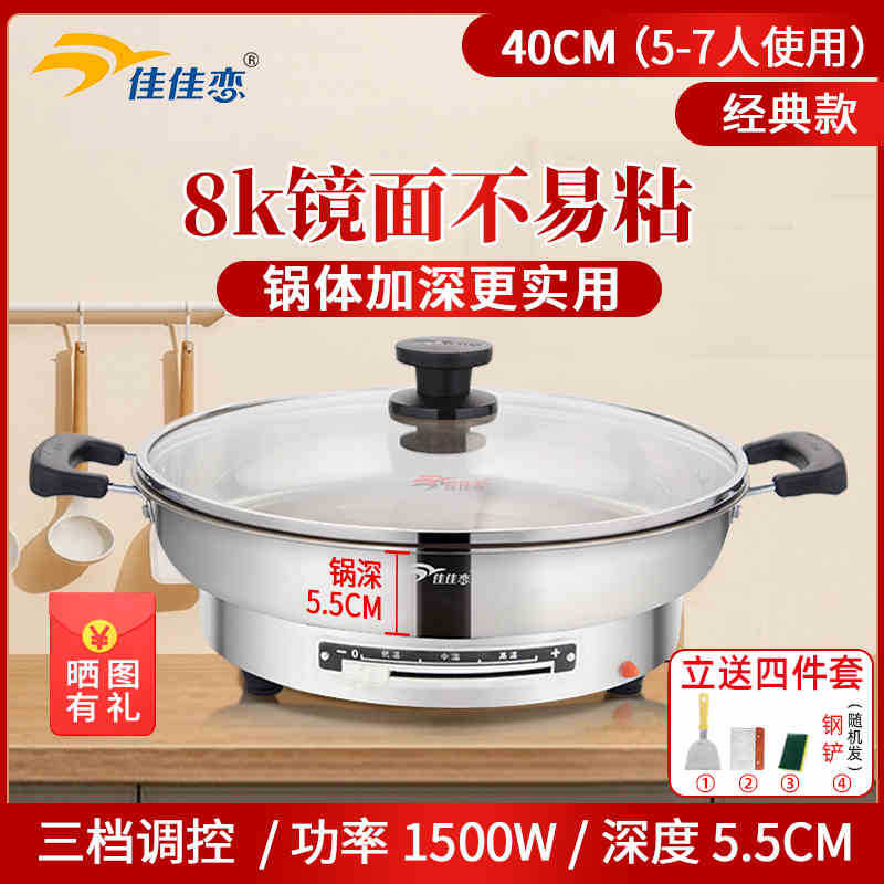 佳佳恋电饼铛304不锈钢电煎锅加大加深加厚8K镜面多功能电平底锅