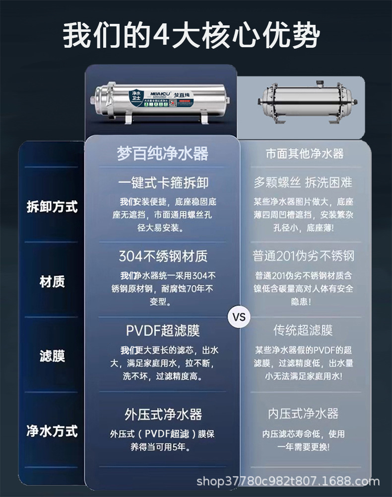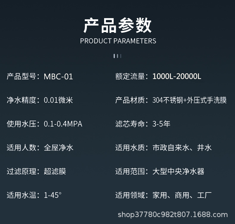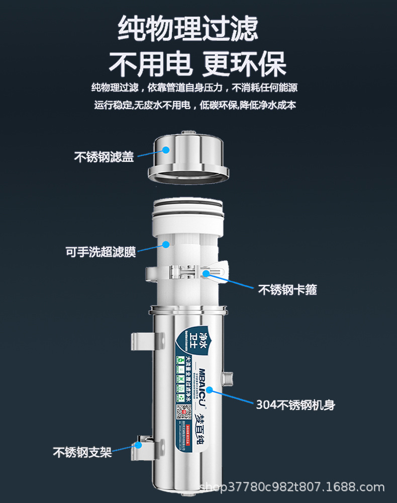 跨境可手洗不锈钢超滤净水器家用地下水过滤商用大流量全屋过滤器