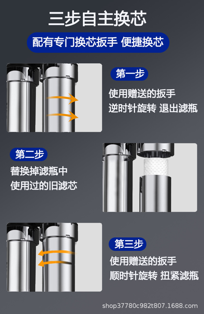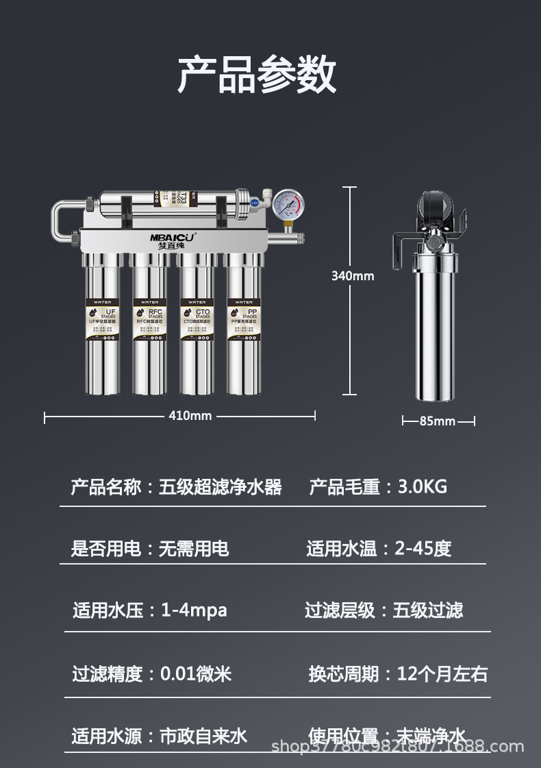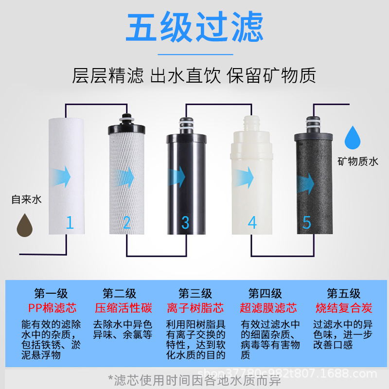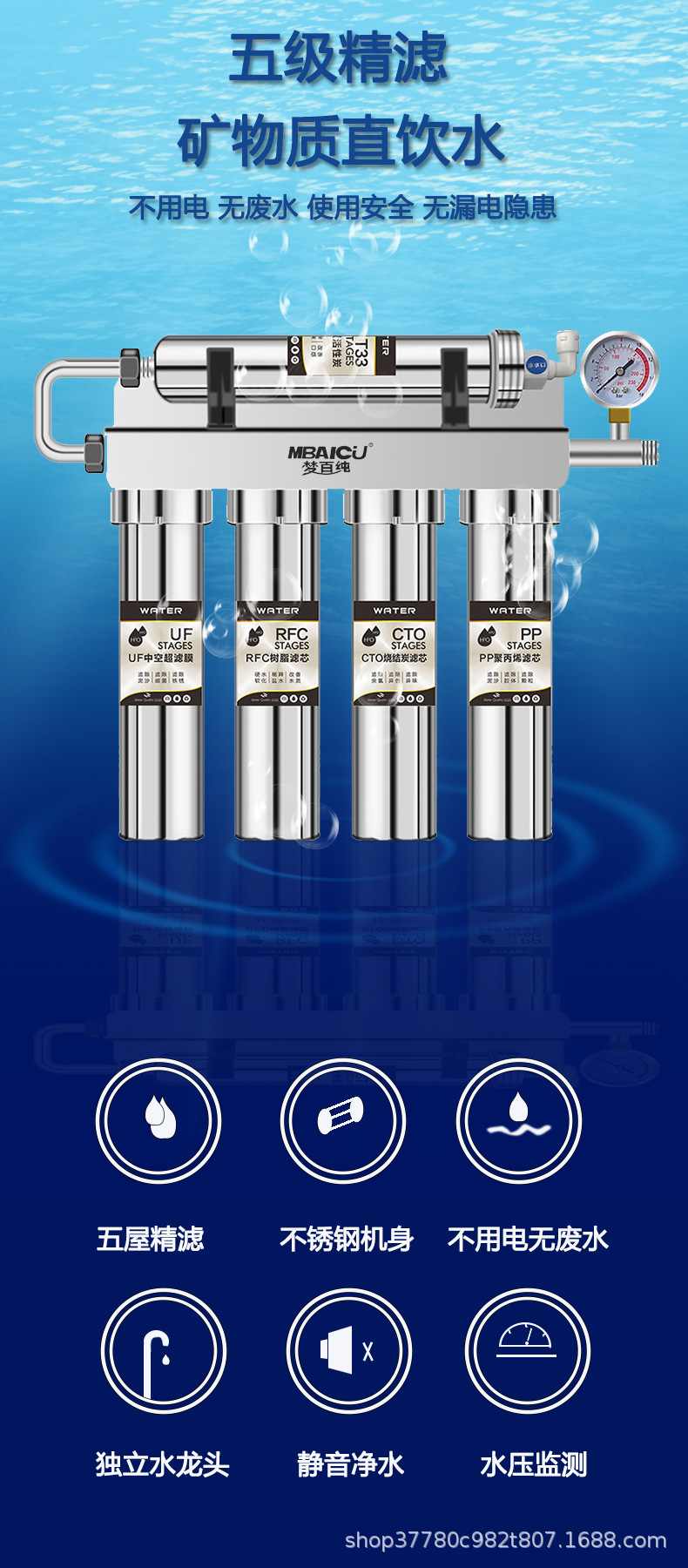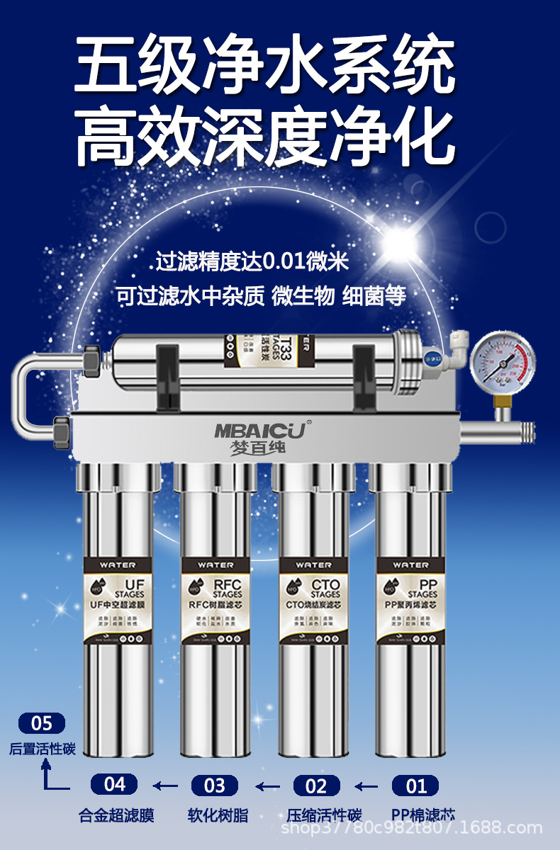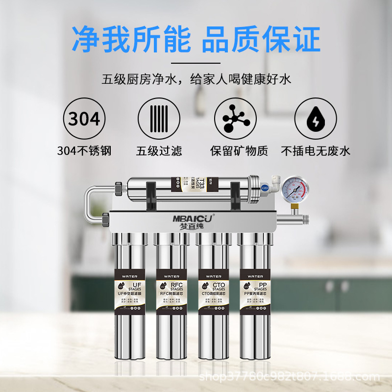 净水器家用直饮厨房过滤器除水垢余氯五级超滤不锈钢净水机批发