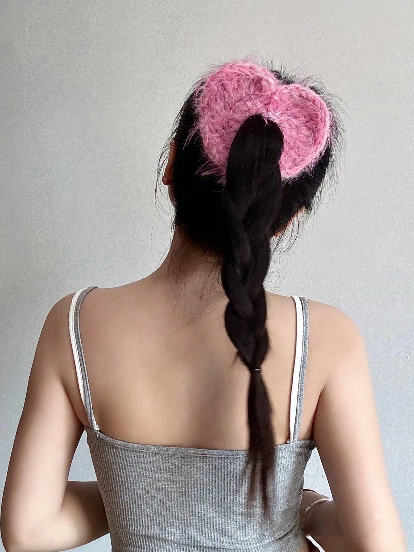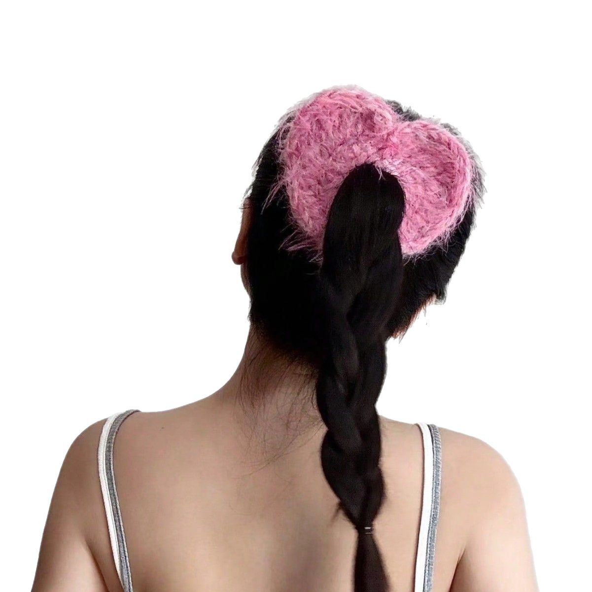 新款跨境粉色爱心手工制作毛绒大号盘发发饰头饰