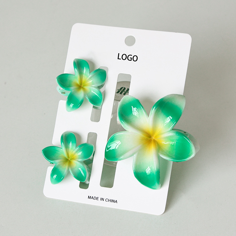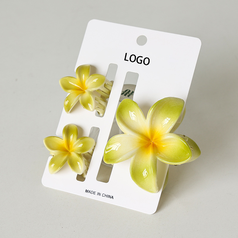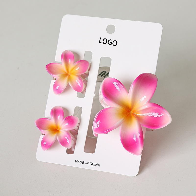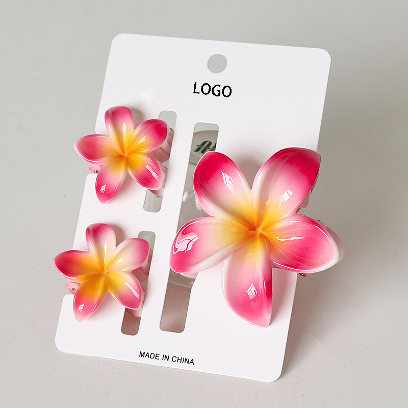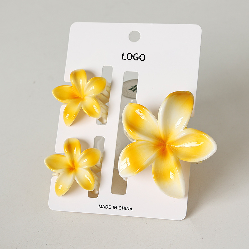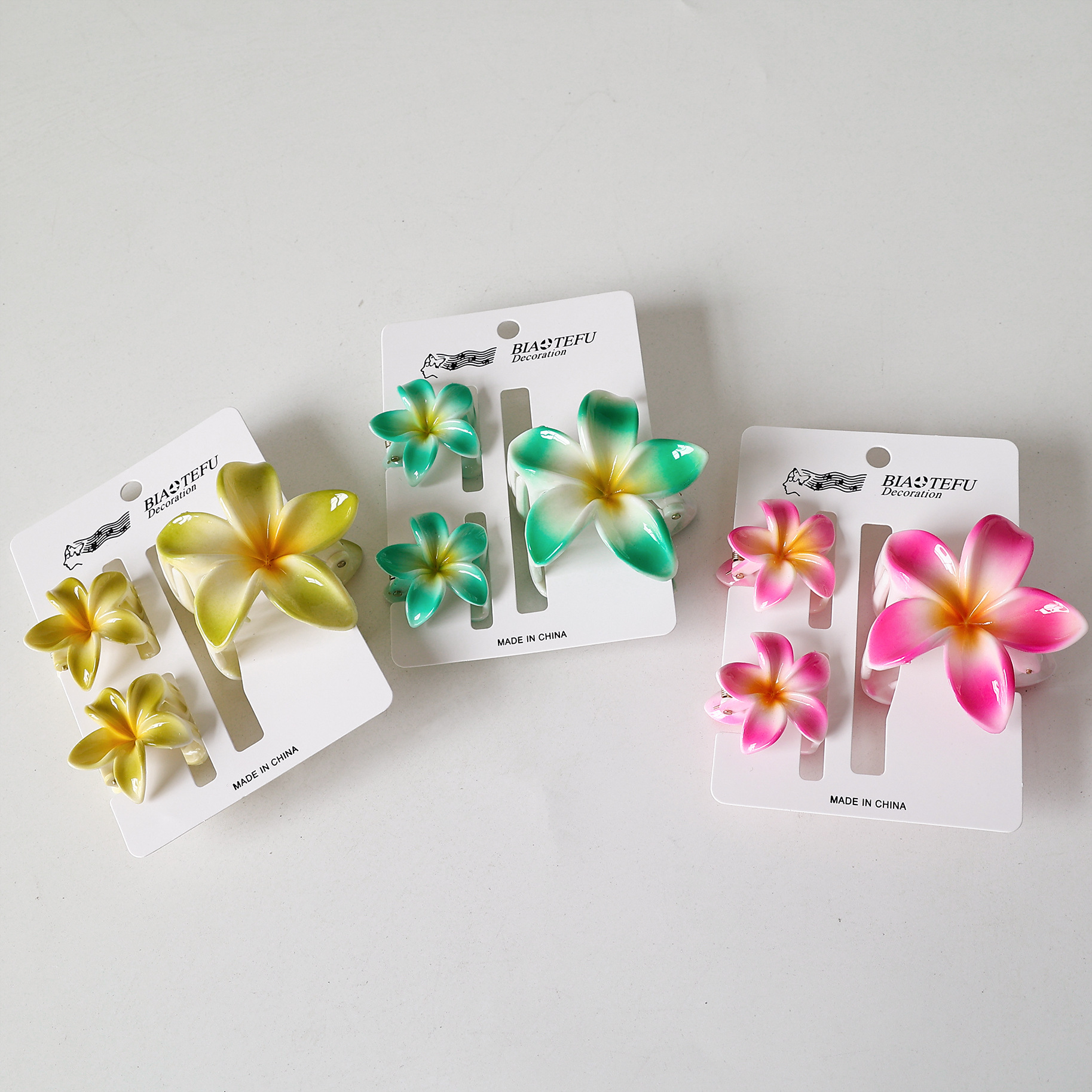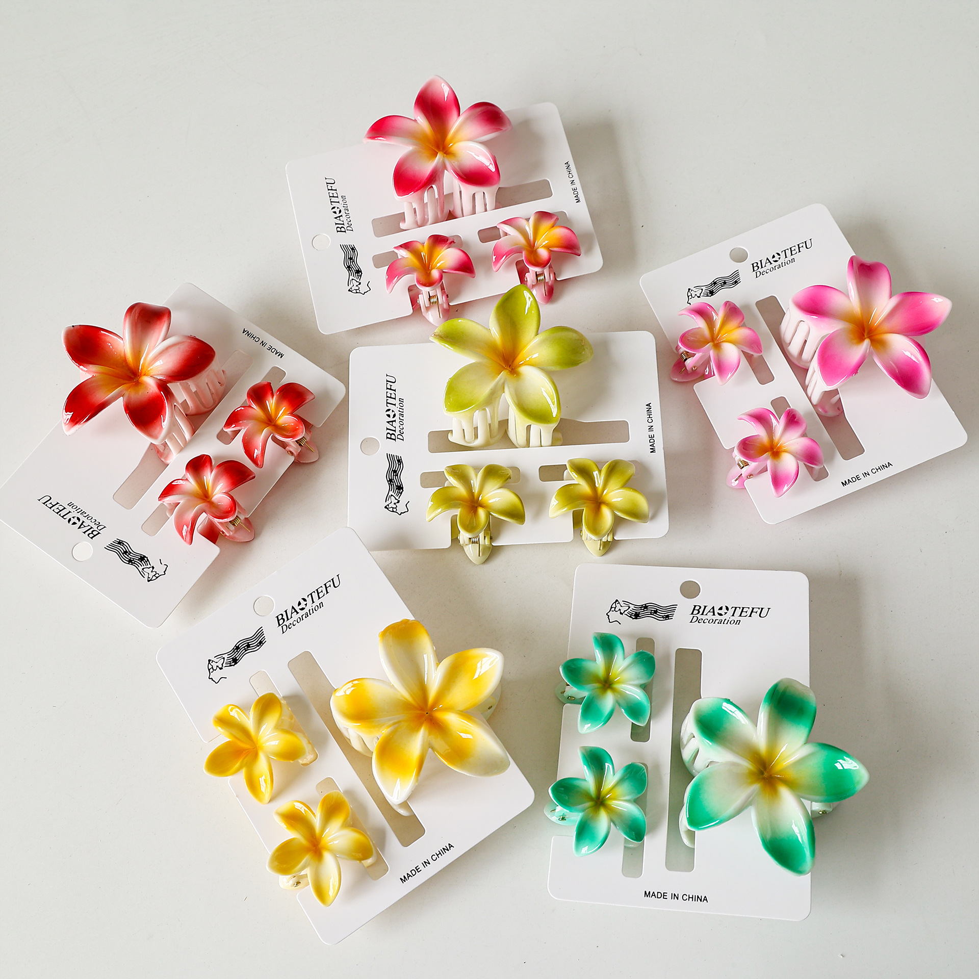 欧美热销鸡蛋花套装抓夹跨境花朵发夹女时尚度假鲨鱼夹发饰