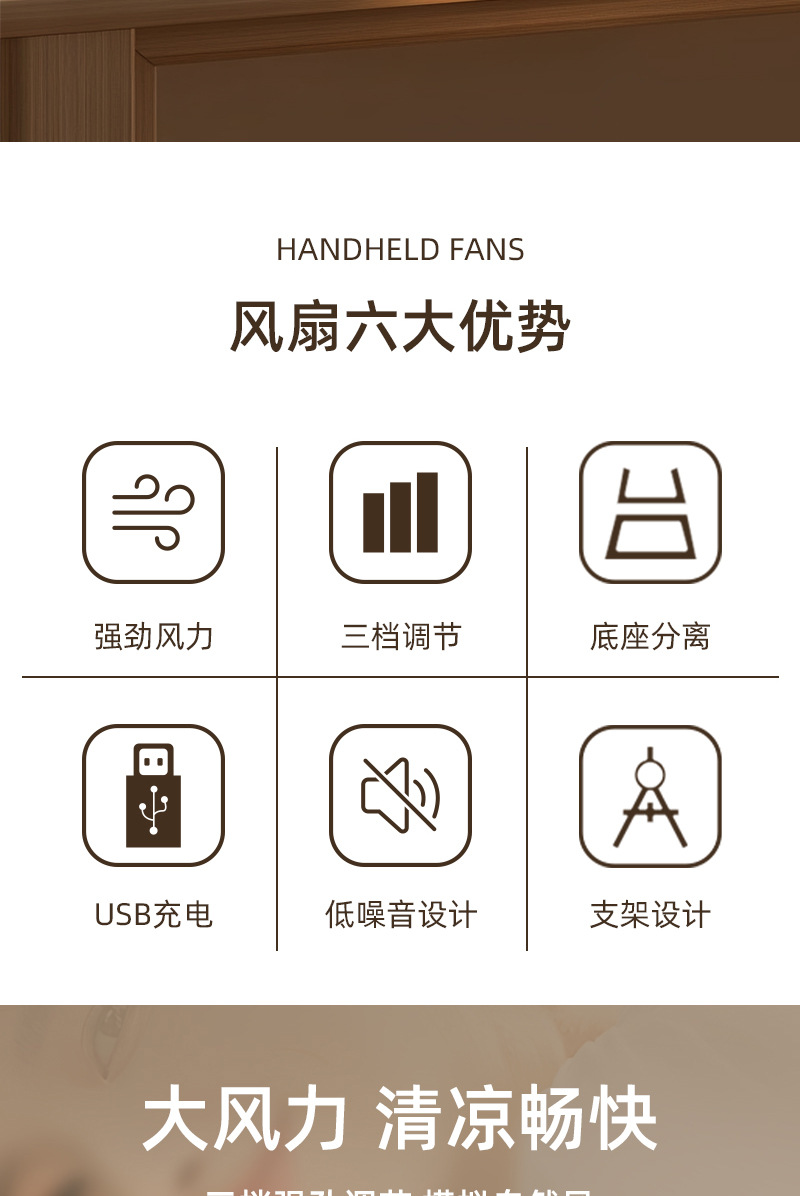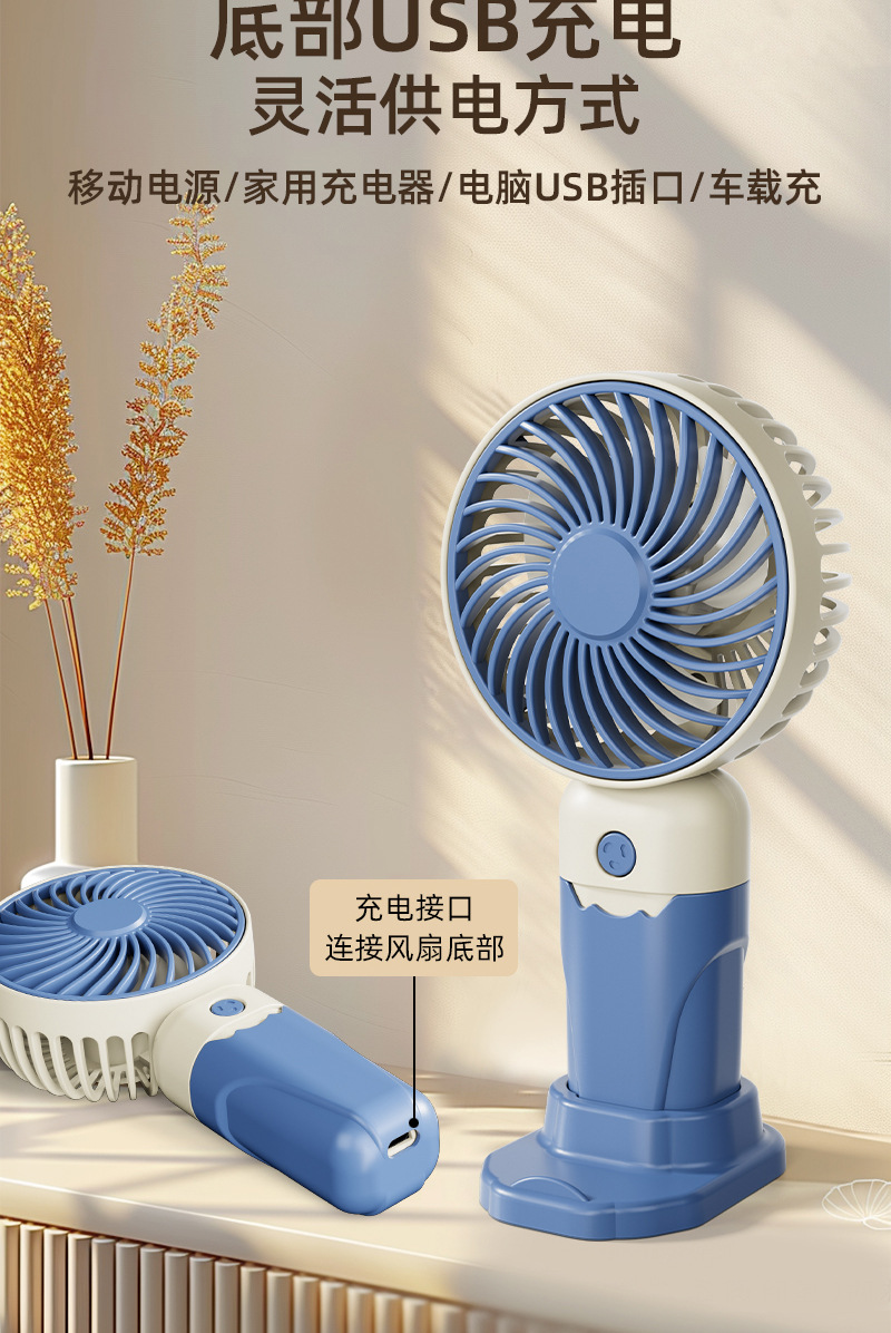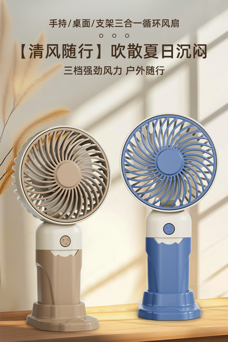 简约便携式手持风扇 USB充电款迷你小风扇三合一循环风扇
