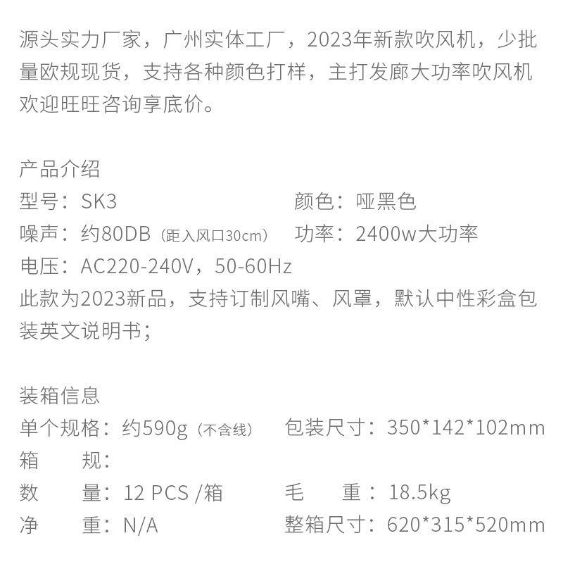 跨境亚马逊风筒厂家批发美发店专用大风力电吹风发廊大功率吹风机