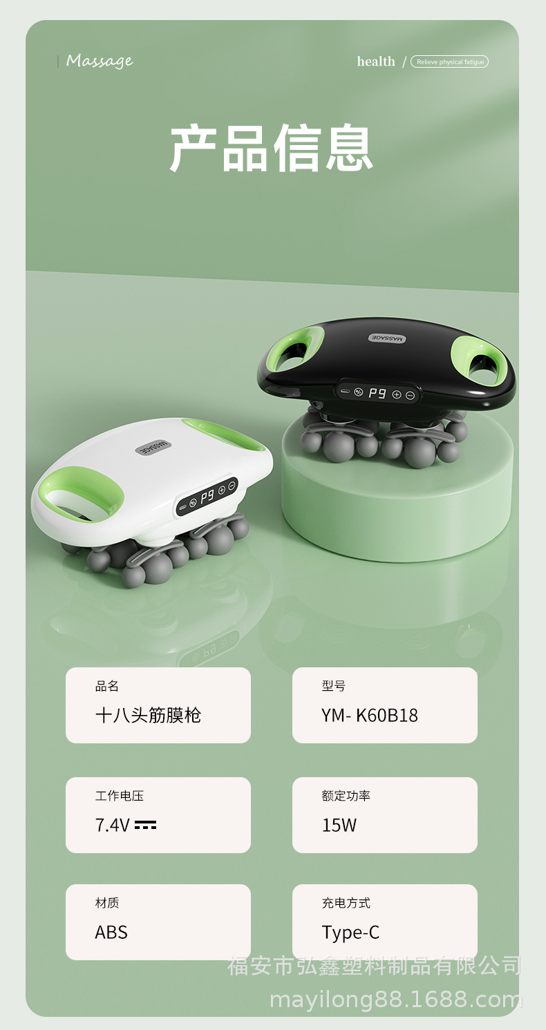 跨境多头筋膜枪腰背腿深层高频震动肌肉放松按摩器18头家用按摩仪