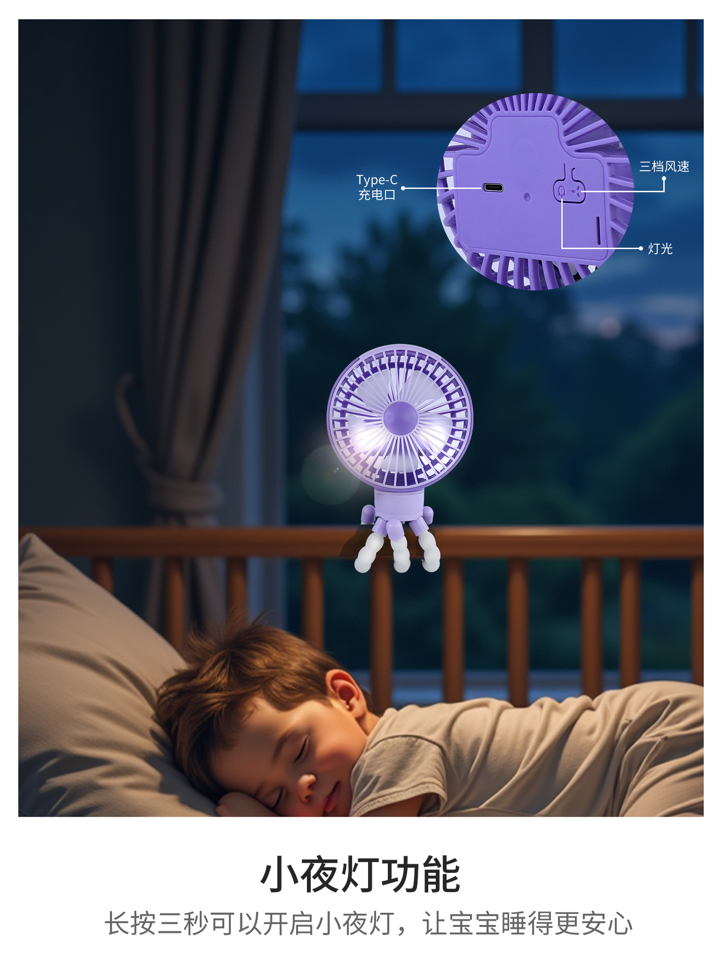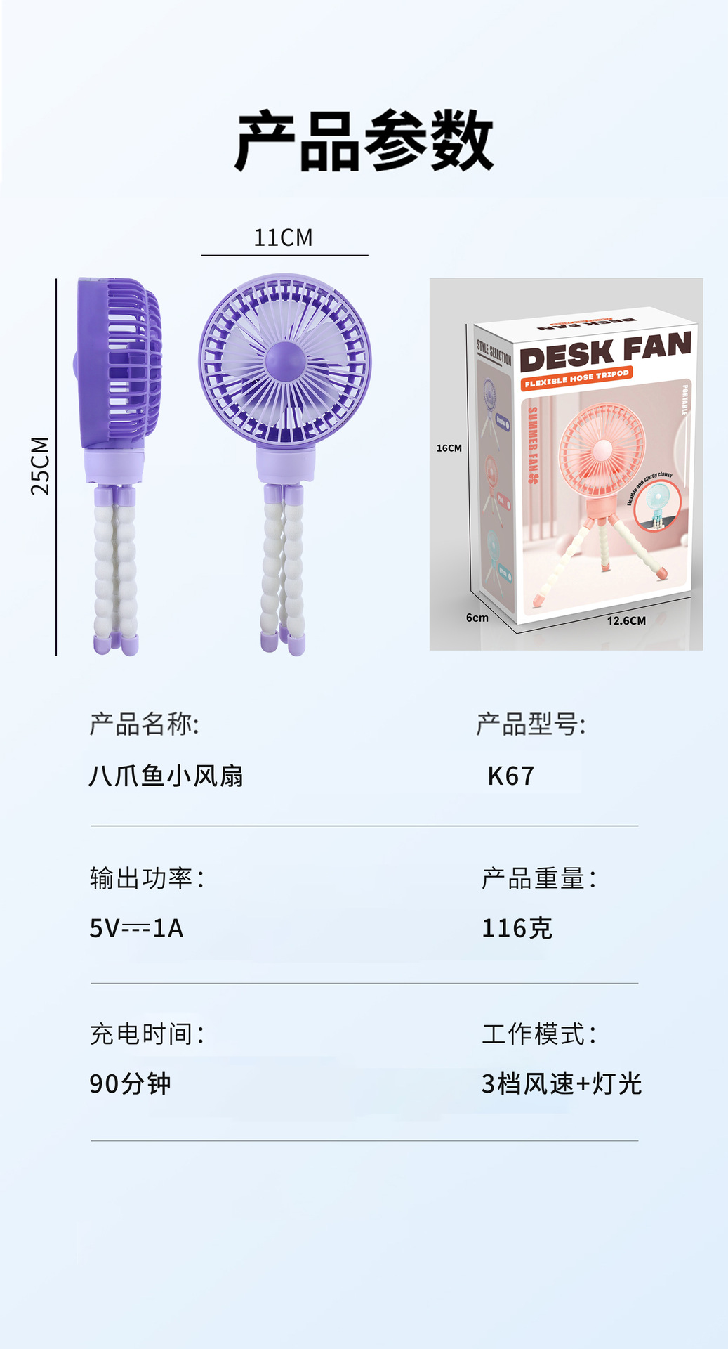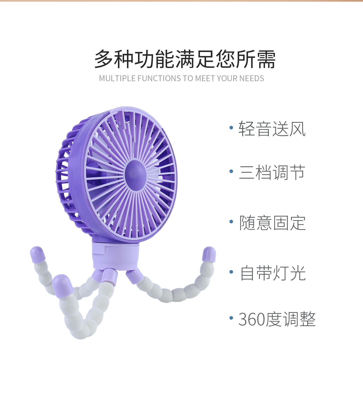 八爪鱼婴儿便携式风扇手持风扇三脚架电风扇折叠挂脖风扇桌面折叠