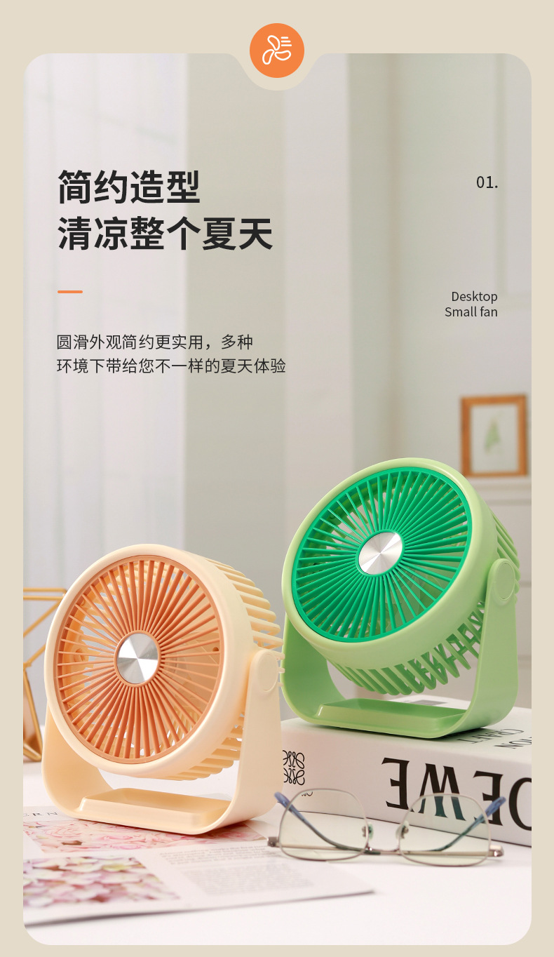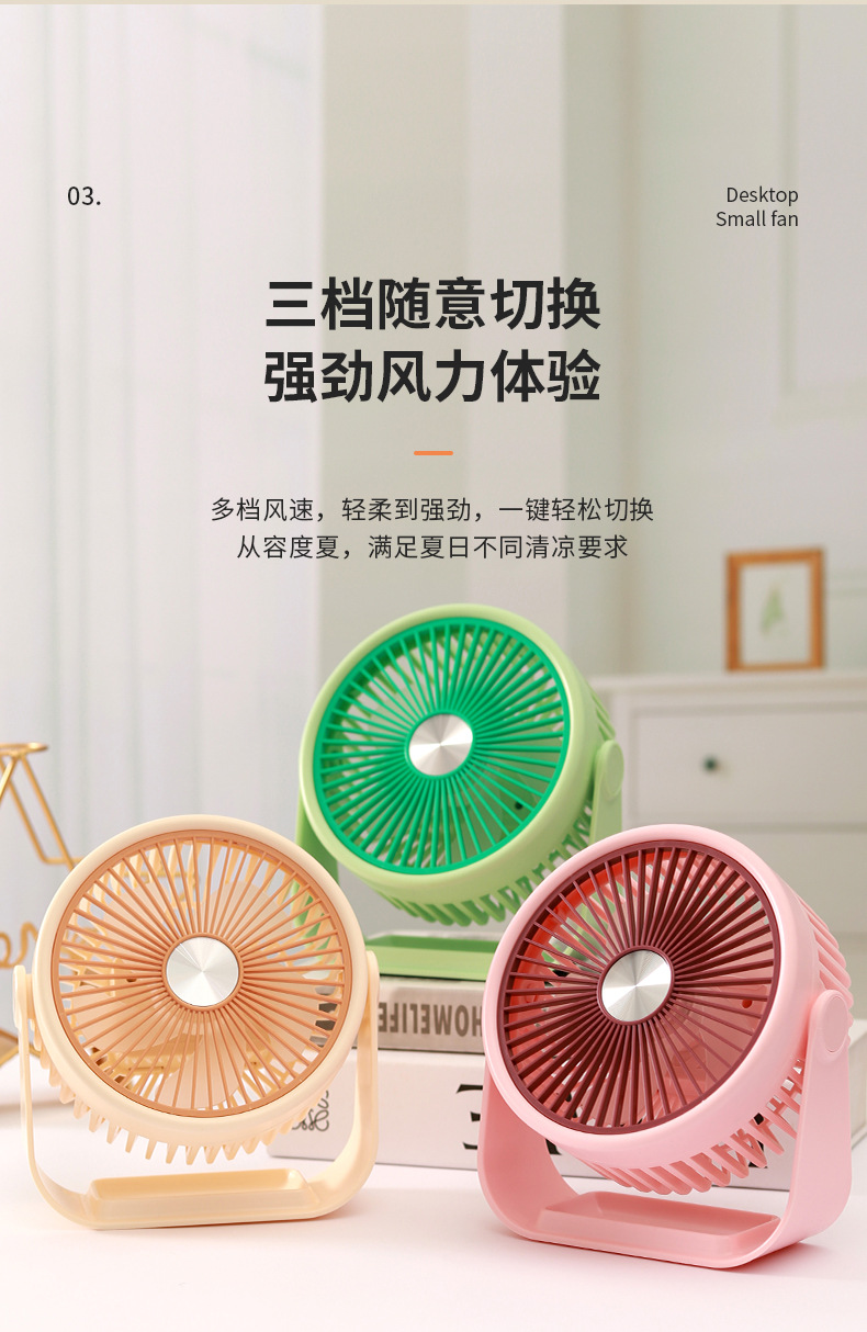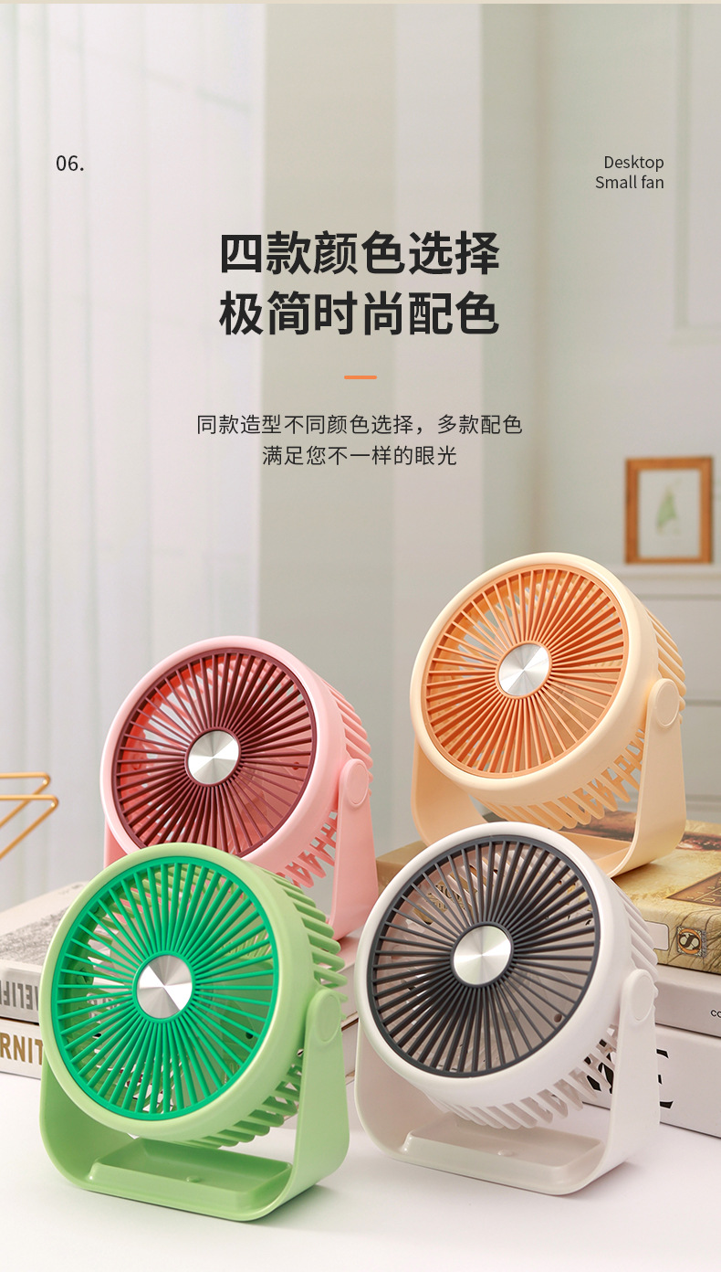 简约桌面小台扇USB充电式小风扇四色三档极简台式小风扇
