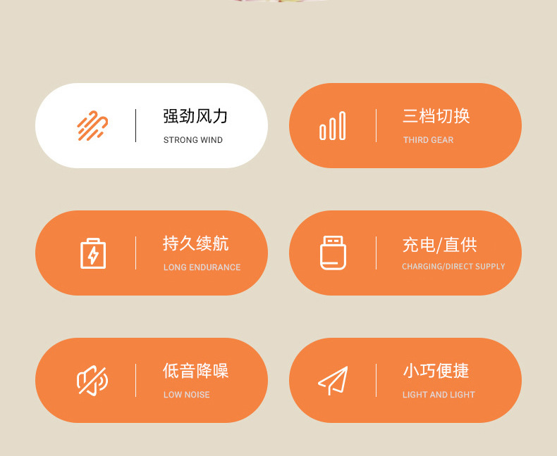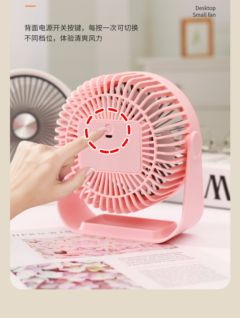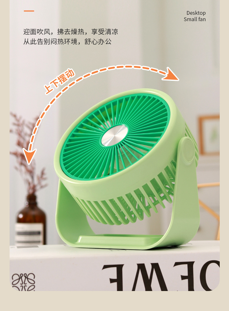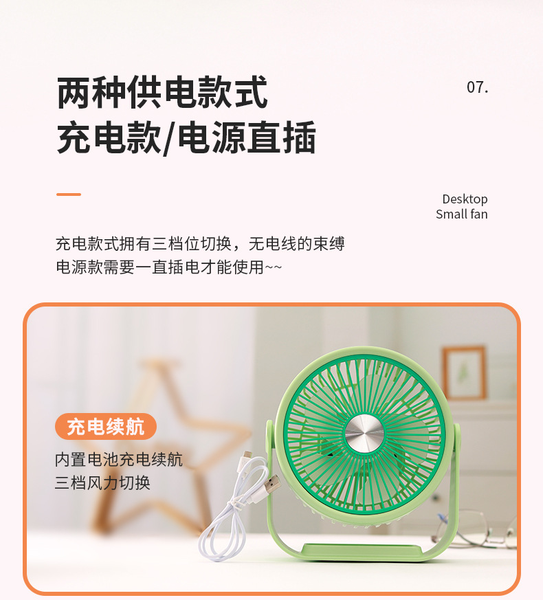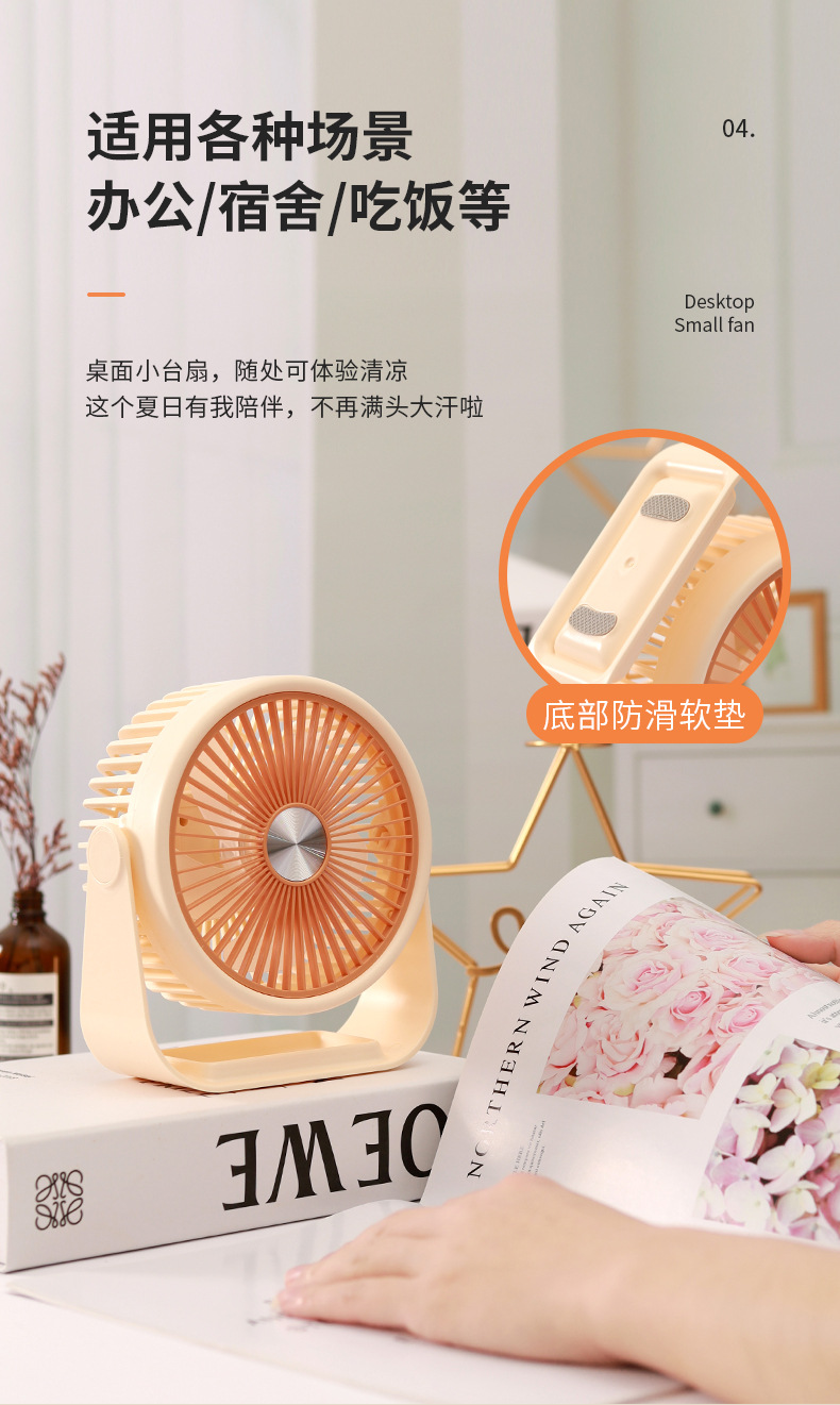 简约桌面小台扇USB充电式小风扇四色三档极简台式小风扇