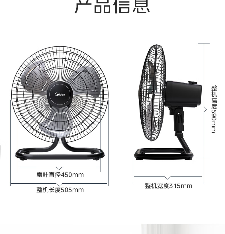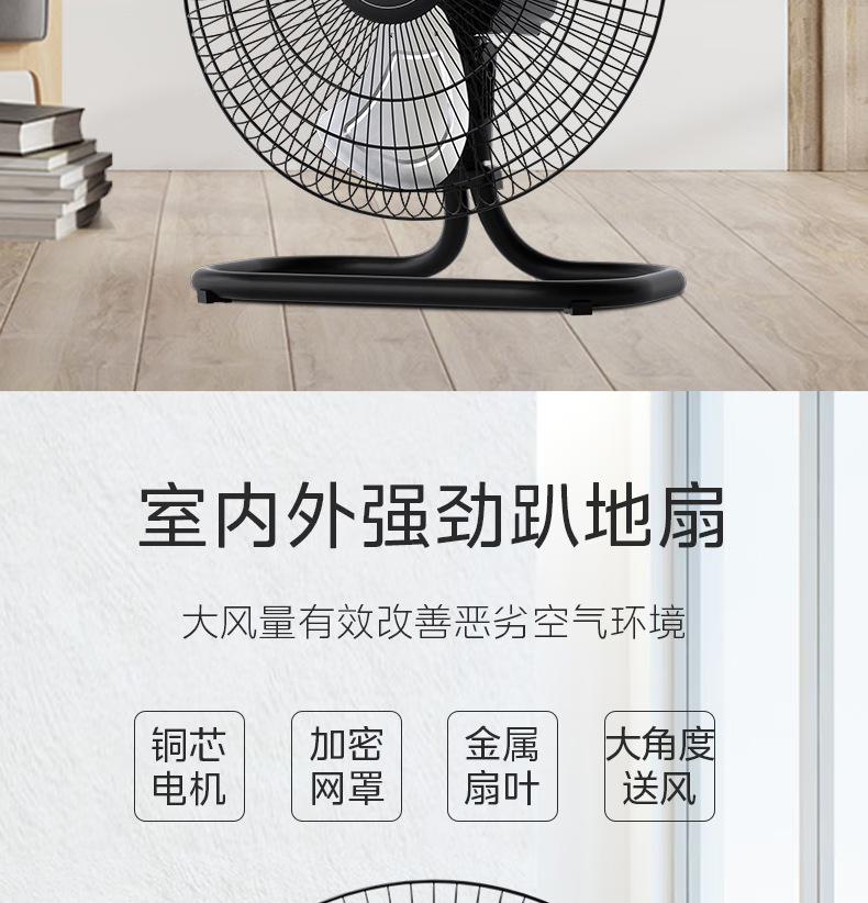 美的趴地扇FS45-23B工业台式坐爬地扇风扇强力电风扇大功率落地扇