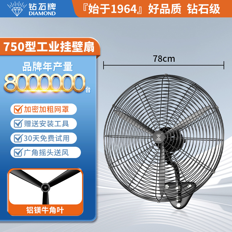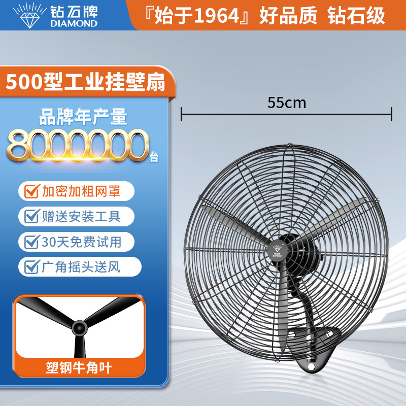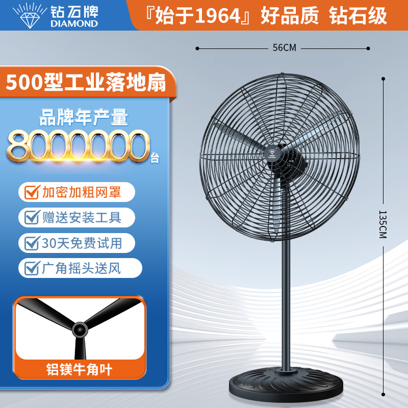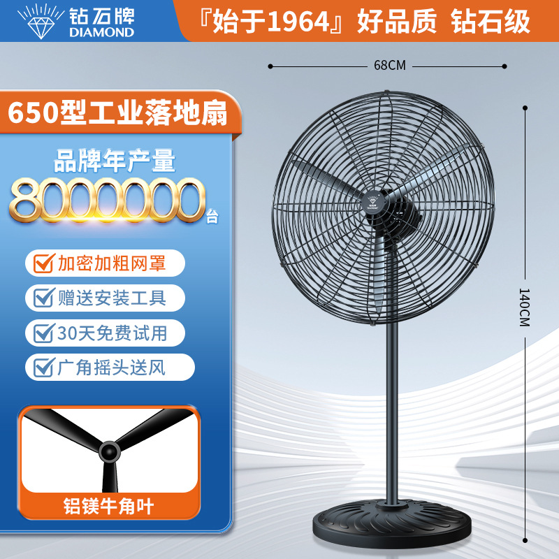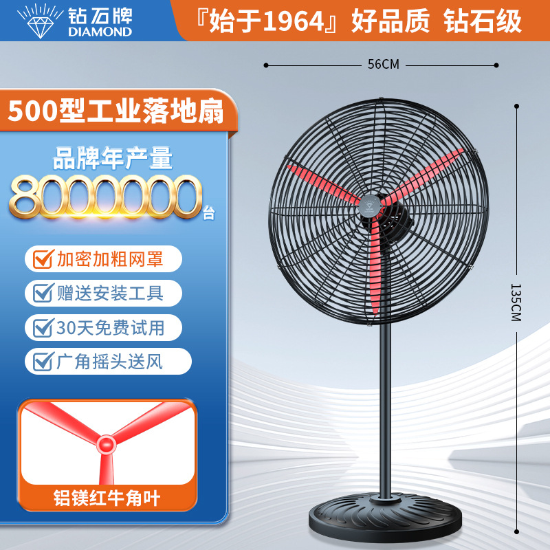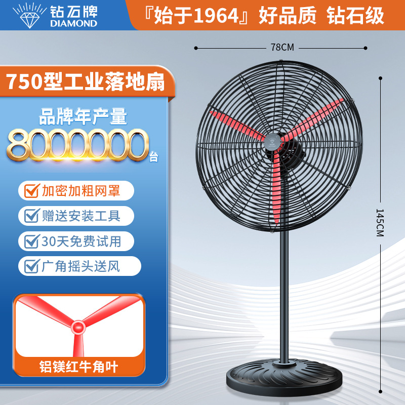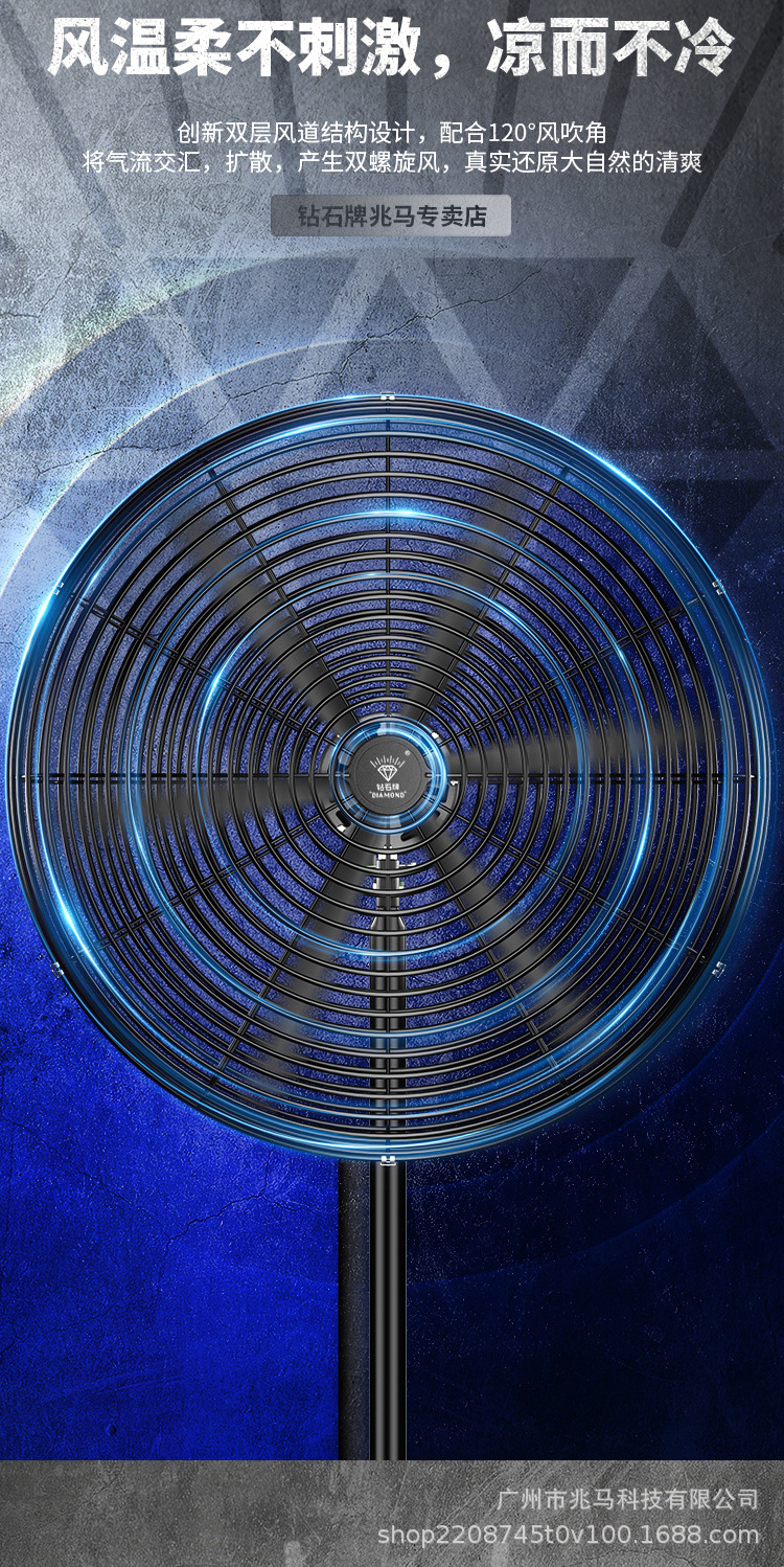 钻石牌工业大风扇牛角扇强力落地扇商用大功率电风扇工厂风扇挂壁