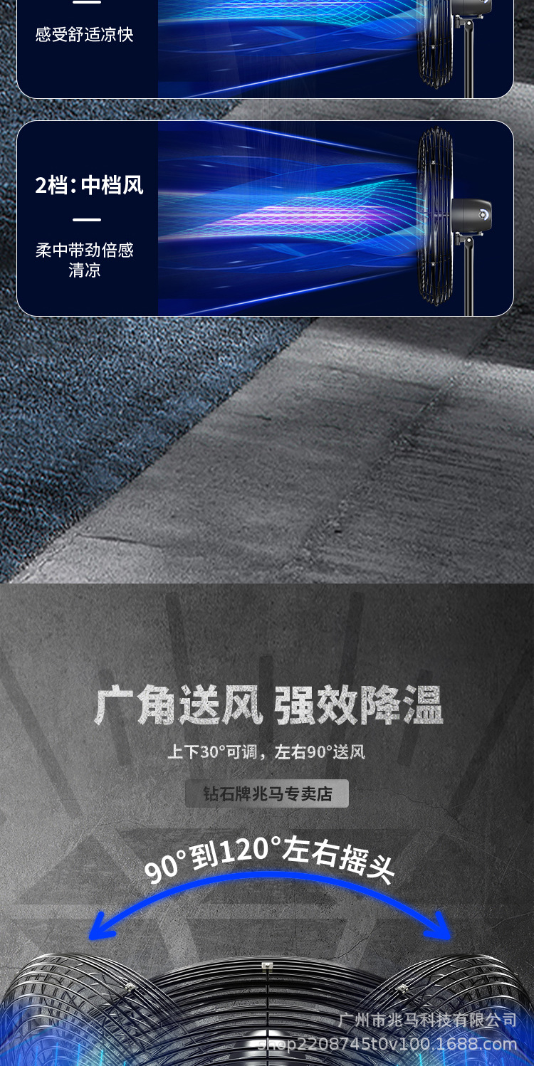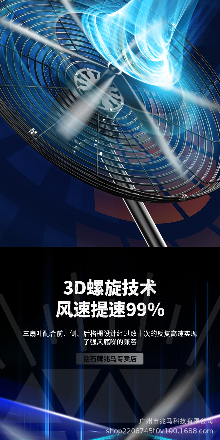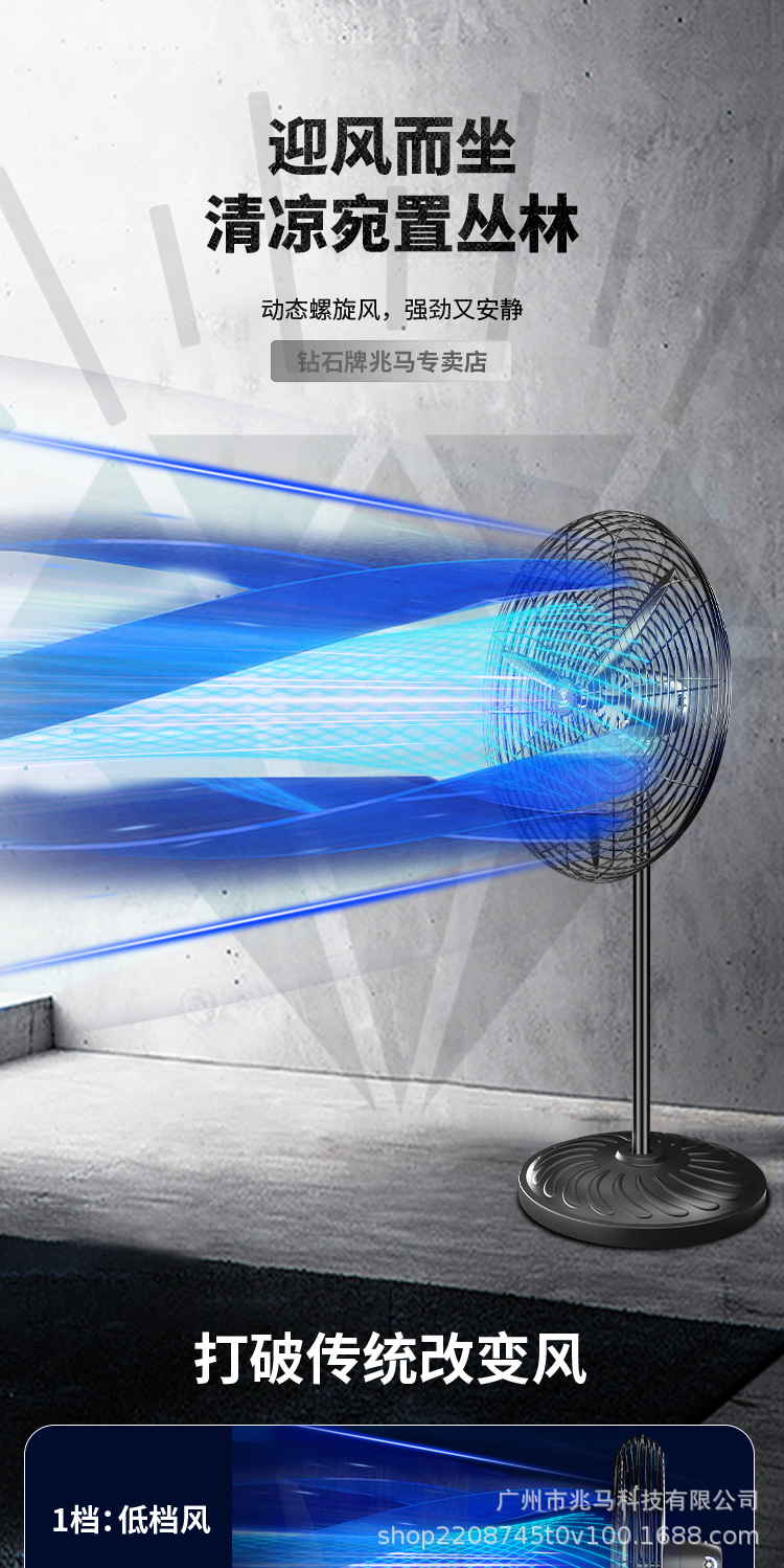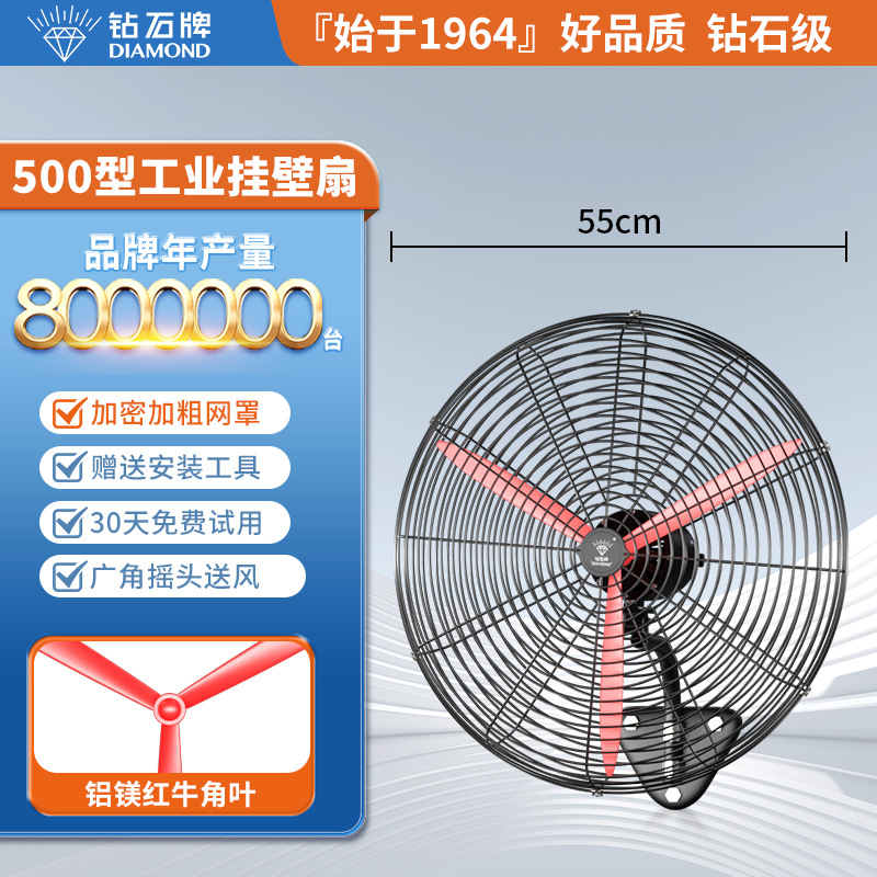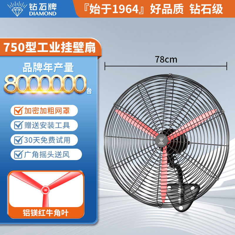 钻石牌工业大风扇牛角扇强力落地扇商用大功率电风扇工厂风扇挂壁
