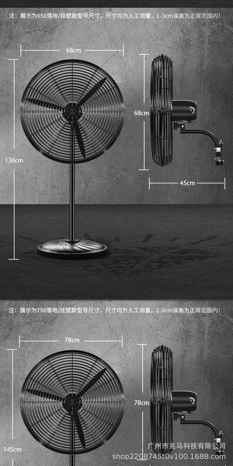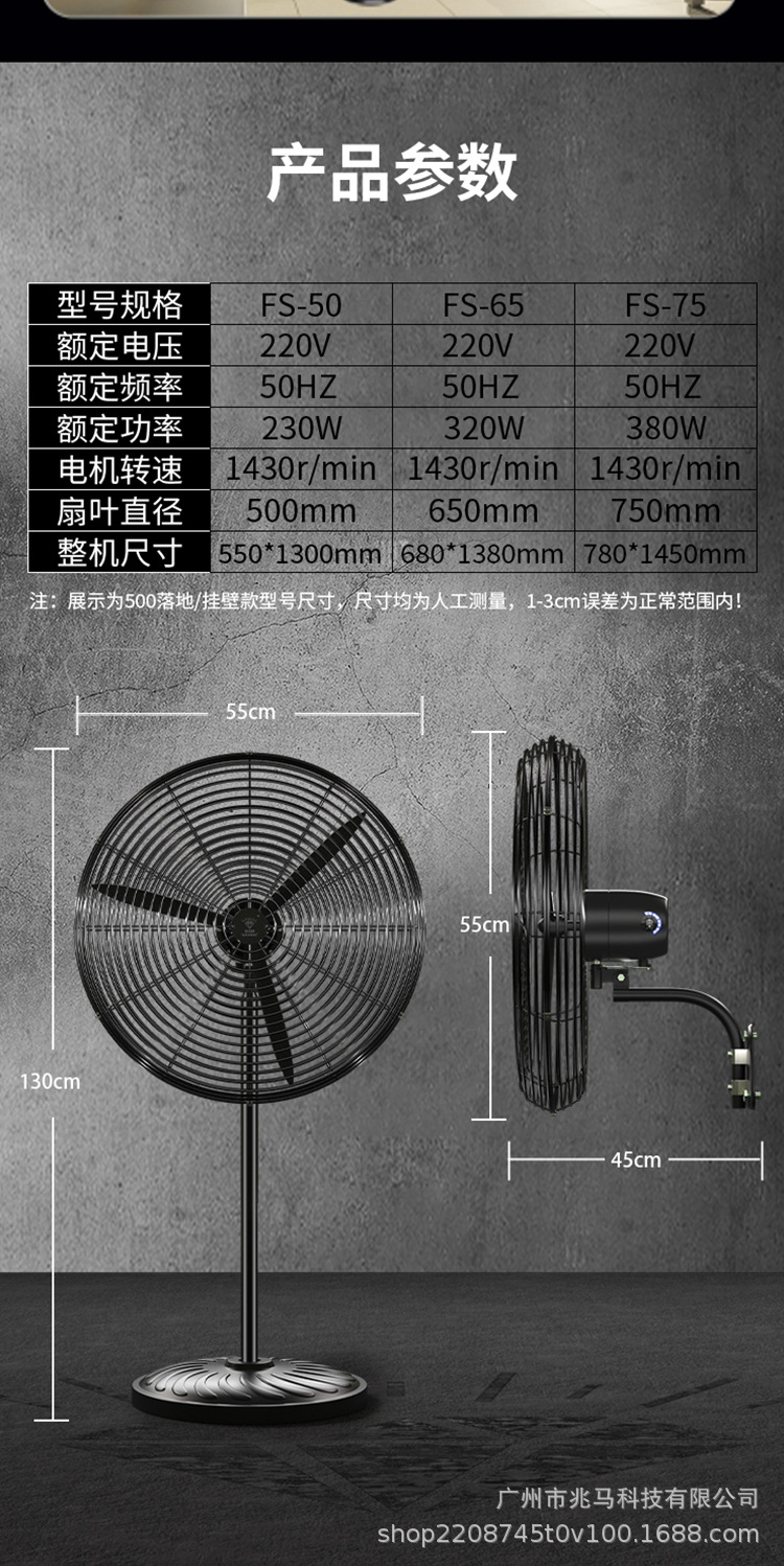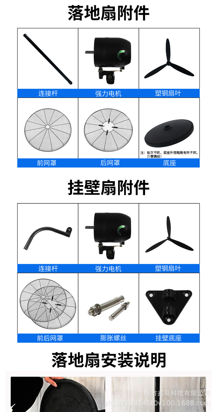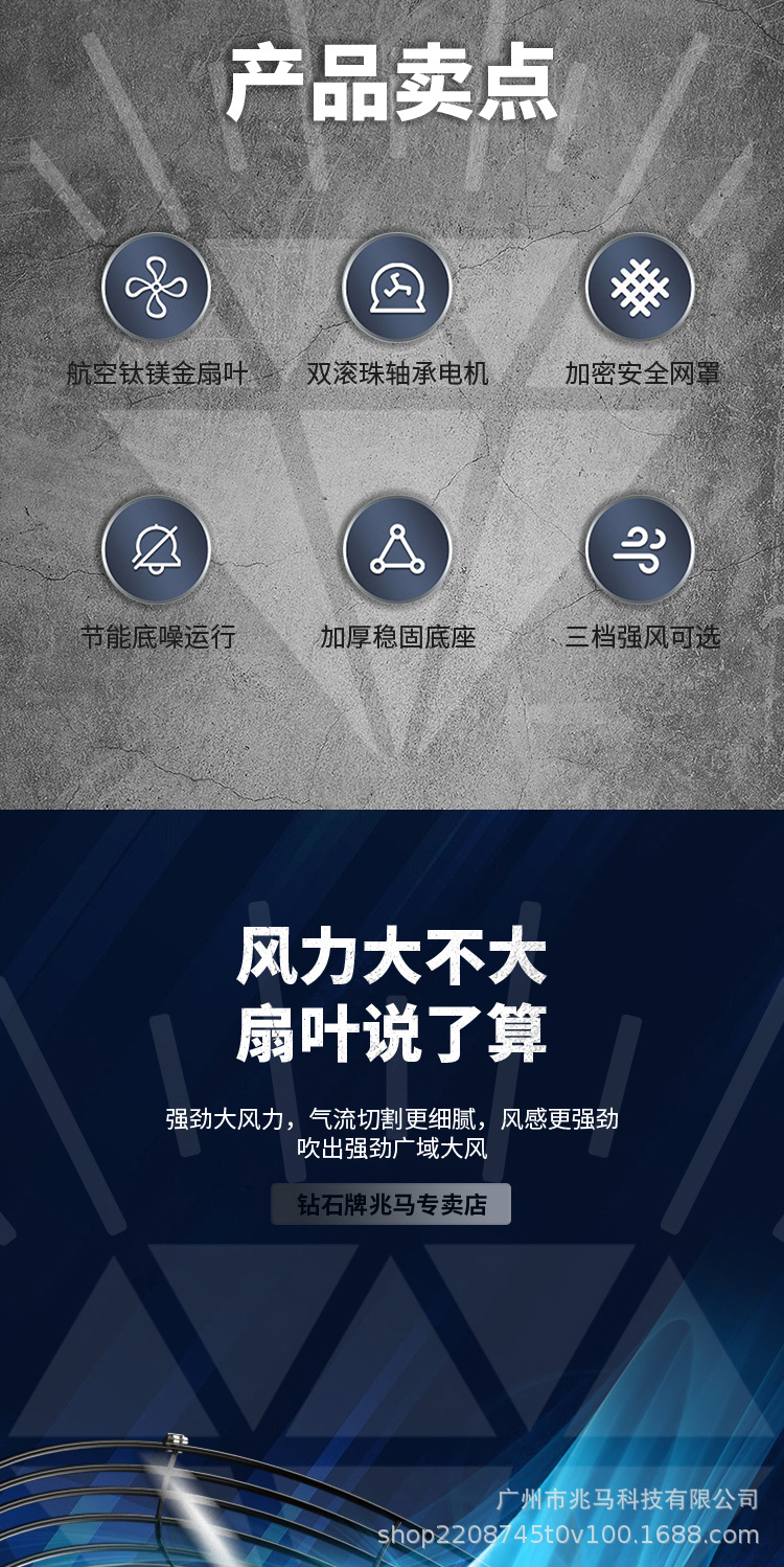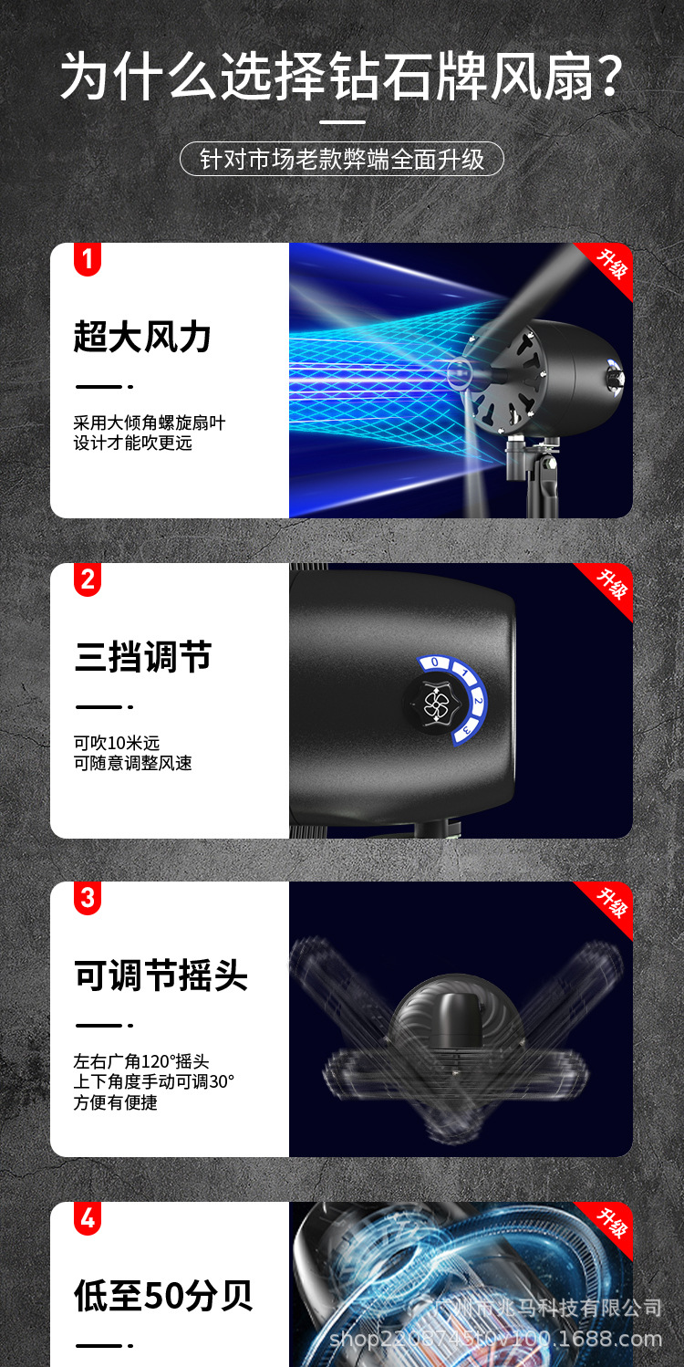 钻石牌工业大风扇牛角扇强力落地扇商用大功率电风扇工厂风扇挂壁