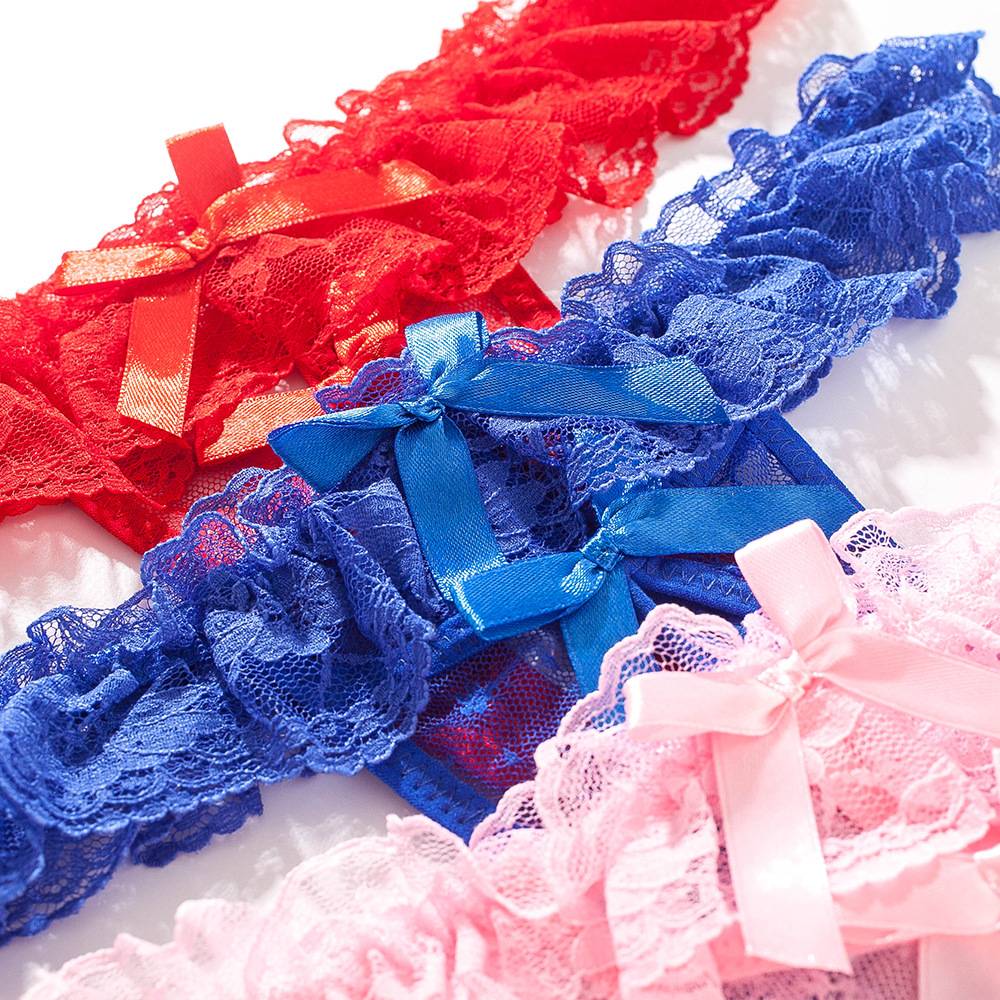 蕾丝开裆丁字裤按摩珍珠情趣内裤女性感透明火辣免脱T裤