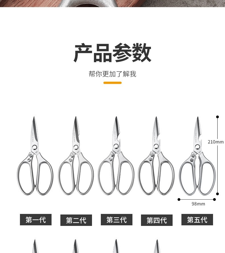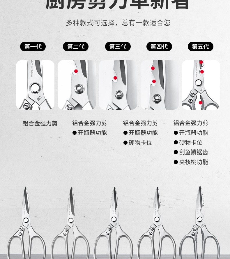 批发不锈钢SK5一代四代厨房家用剪刀 多功能强力杀鱼鸡骨剪厨用剪