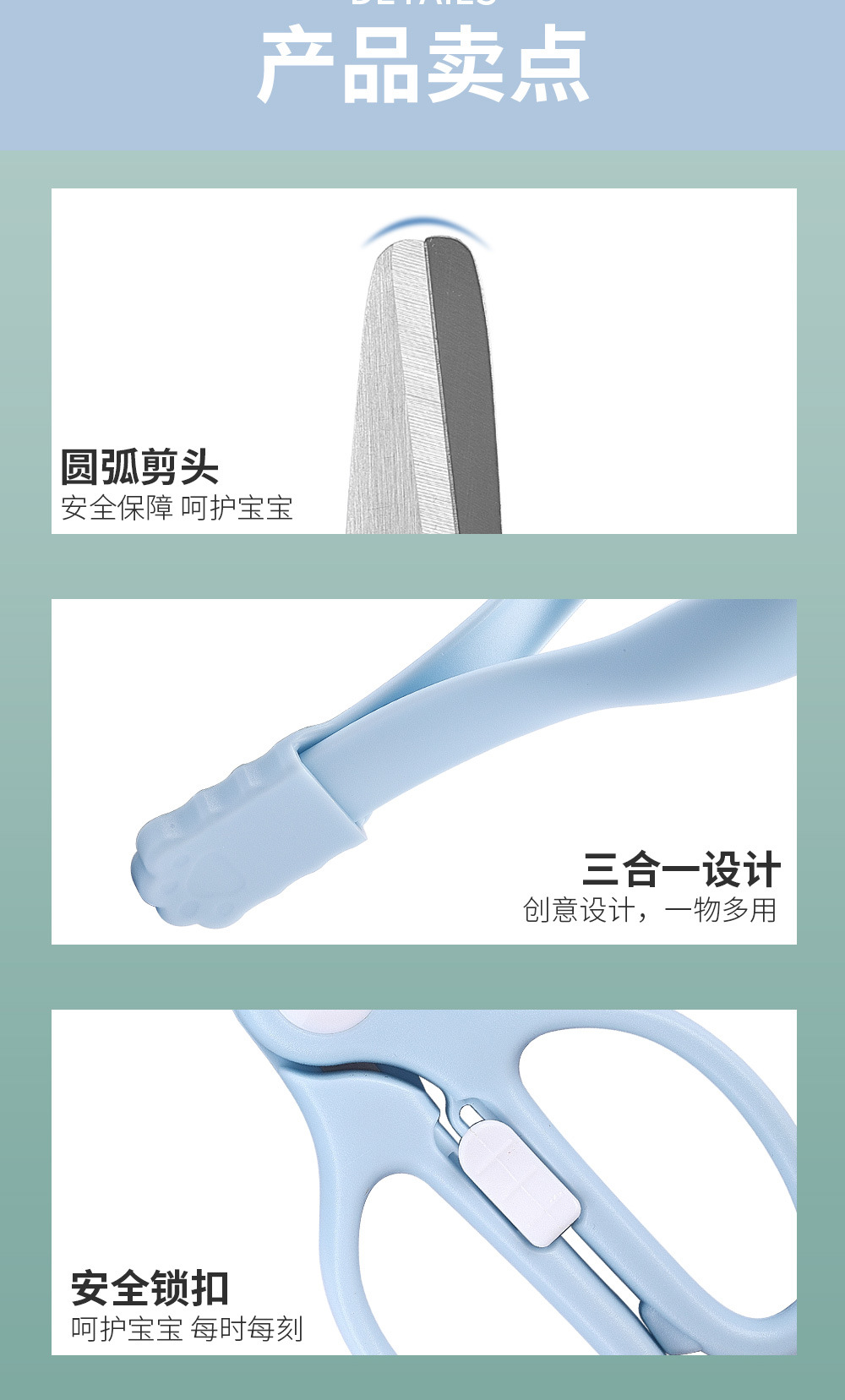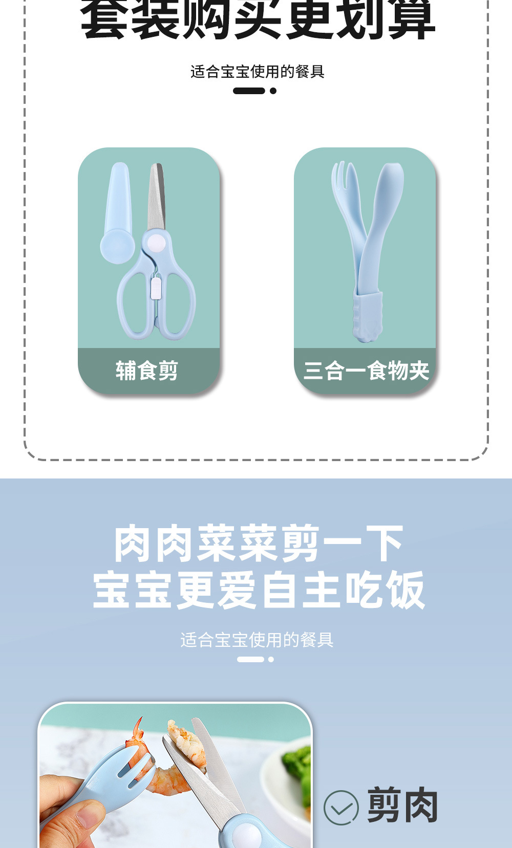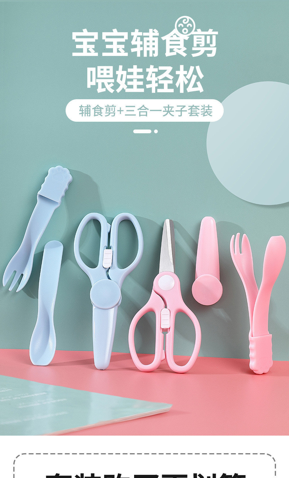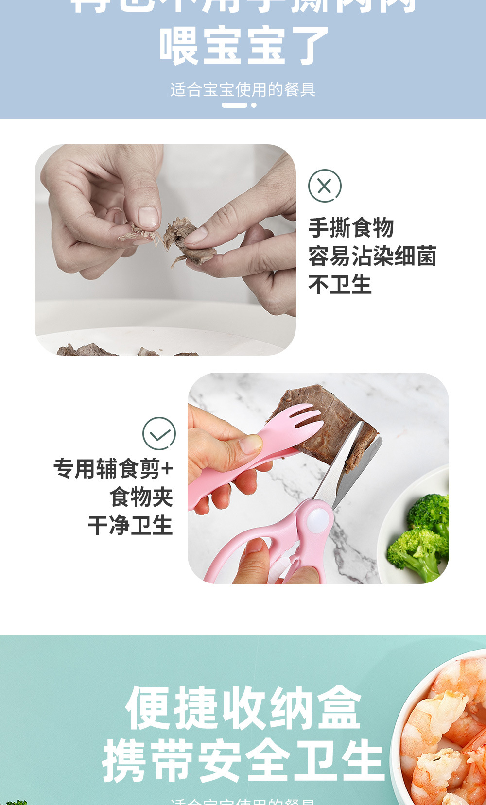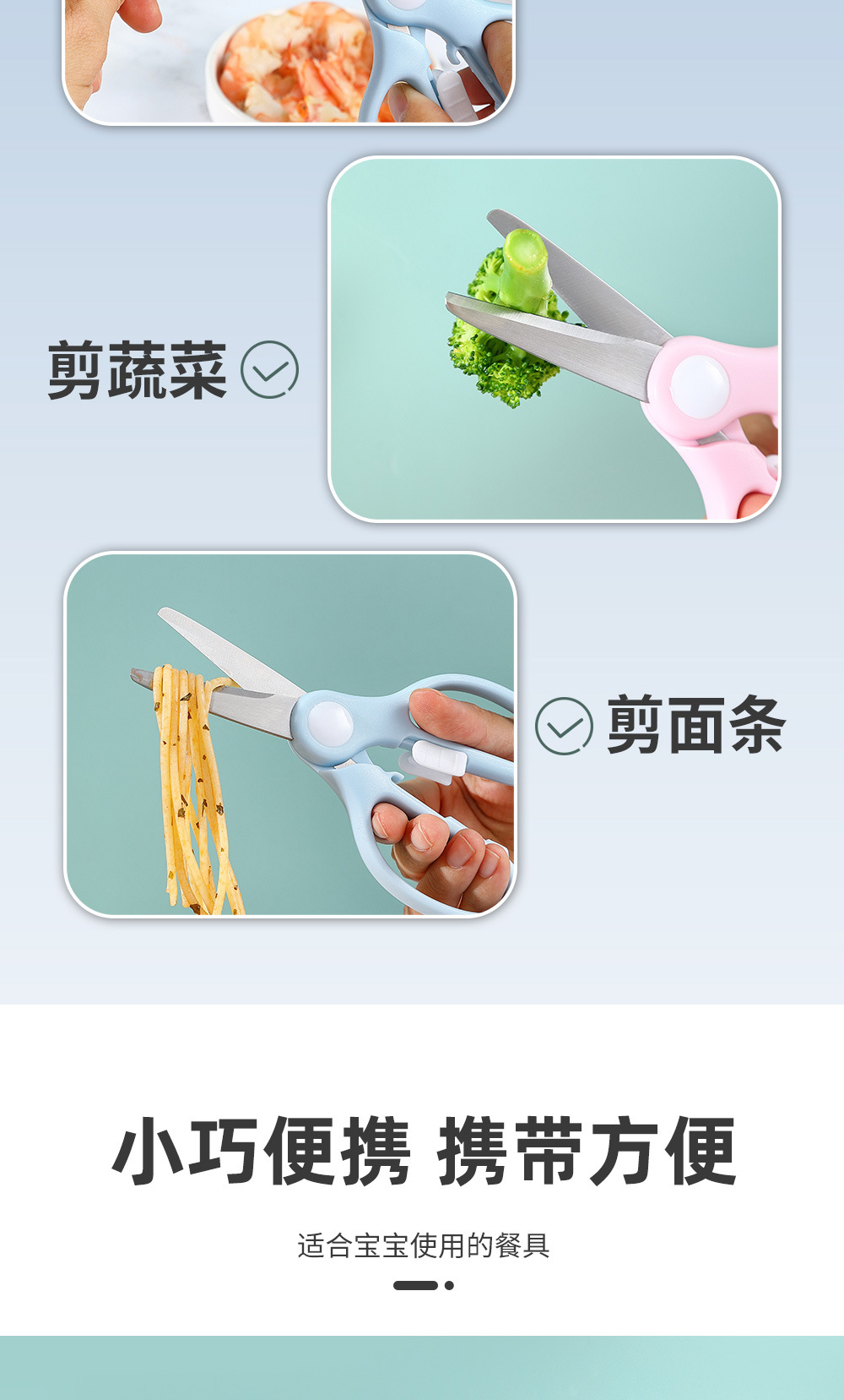 辅食剪宝宝不锈钢外带食物剪婴幼儿便携式剪菜剪肉面条厨房剪刀