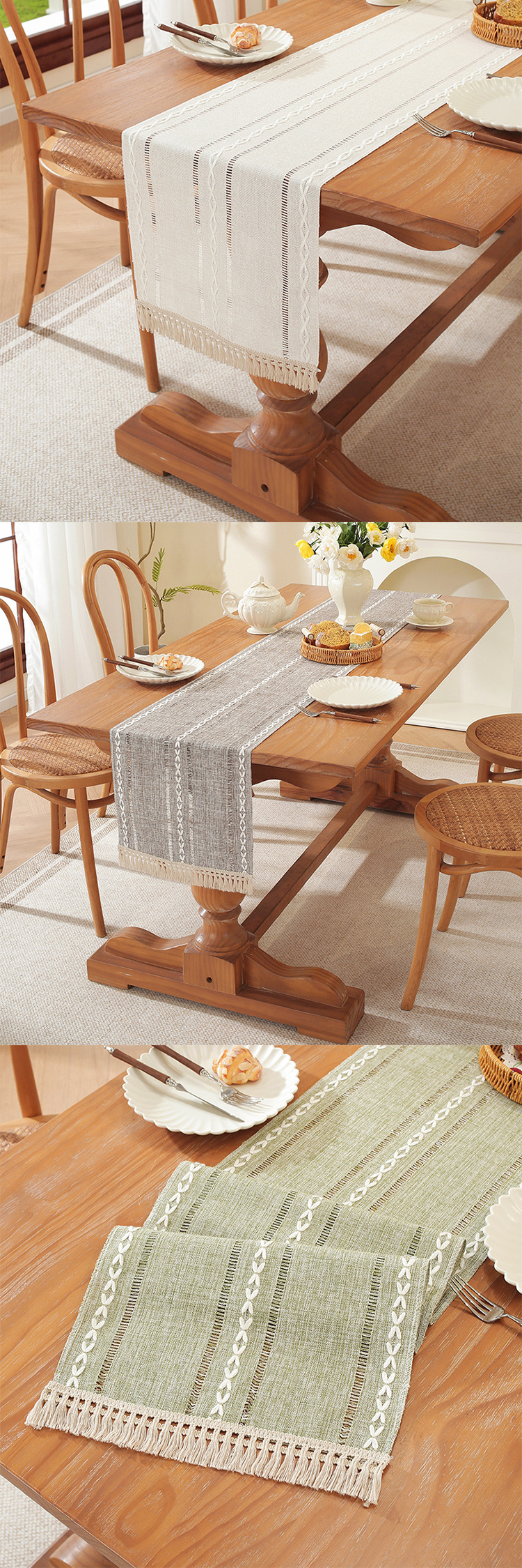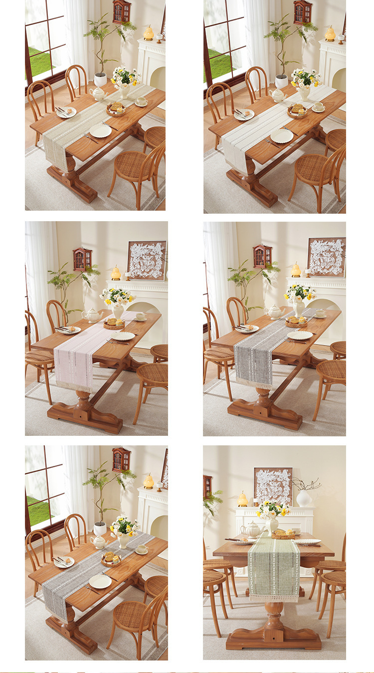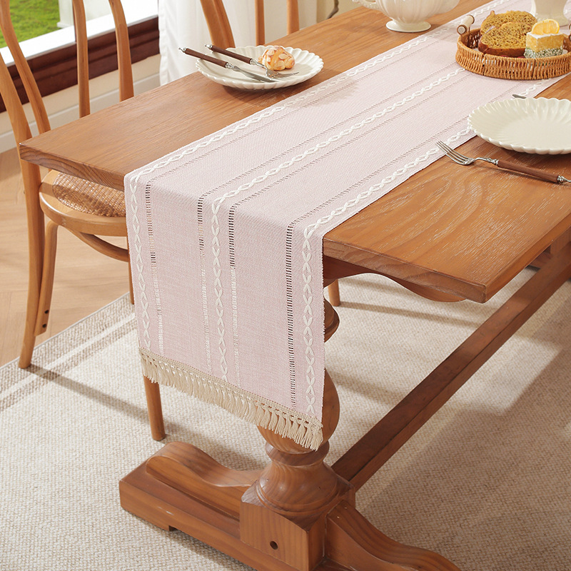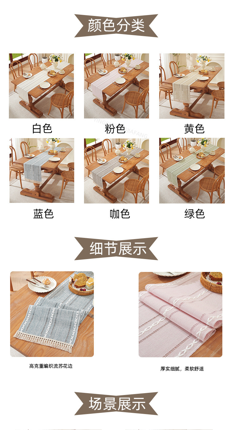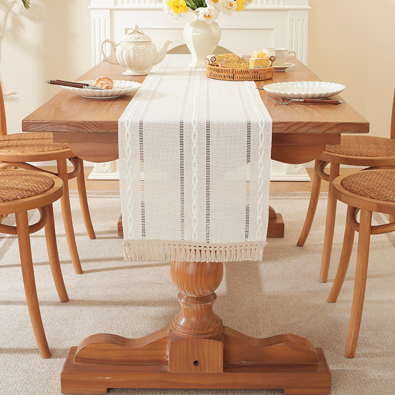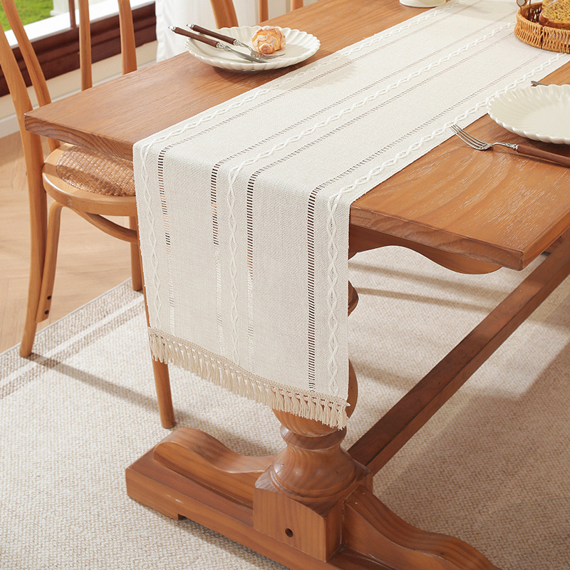 聚家新款编制流苏北欧高级感镂空条纹简约风盖布餐边布亚马逊跨境