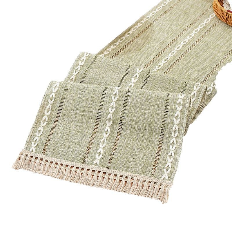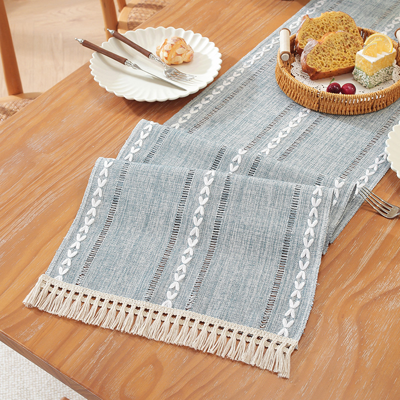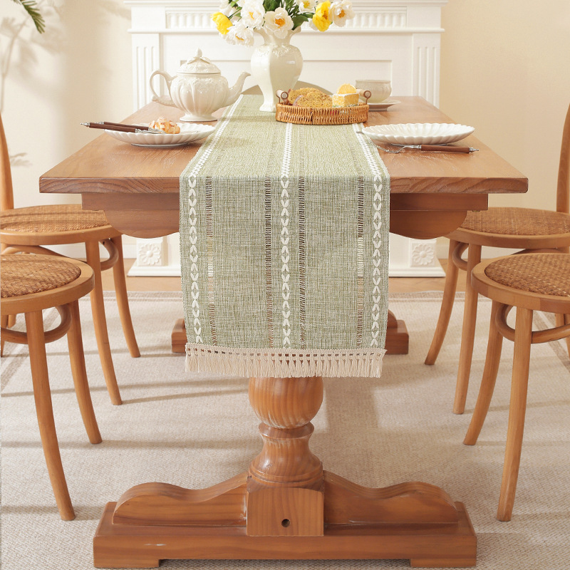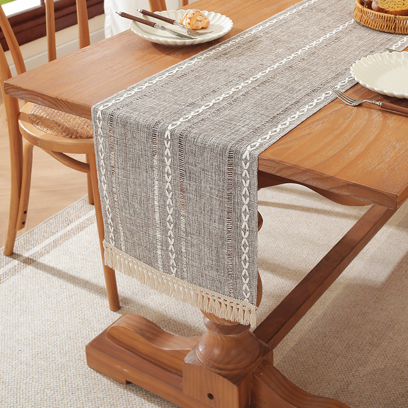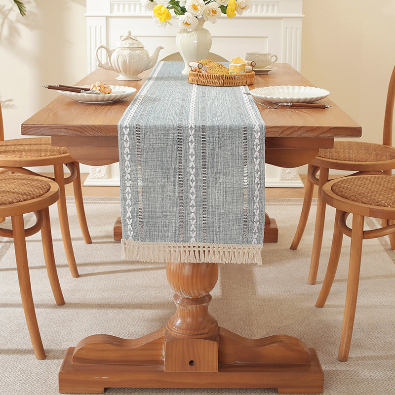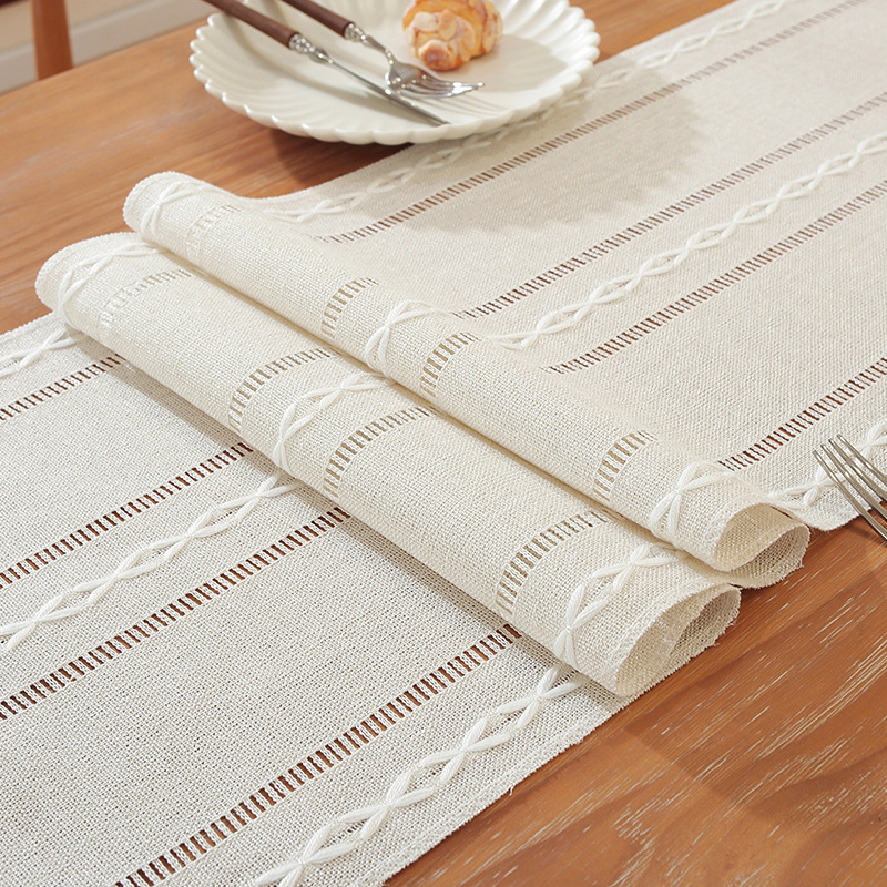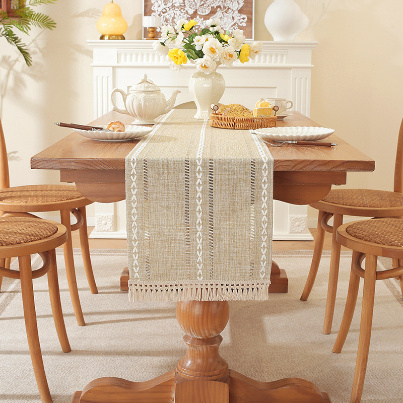 聚家新款编制流苏北欧高级感镂空条纹简约风盖布餐边布亚马逊跨境