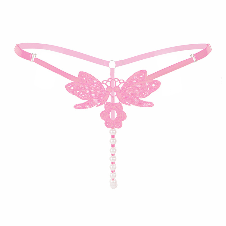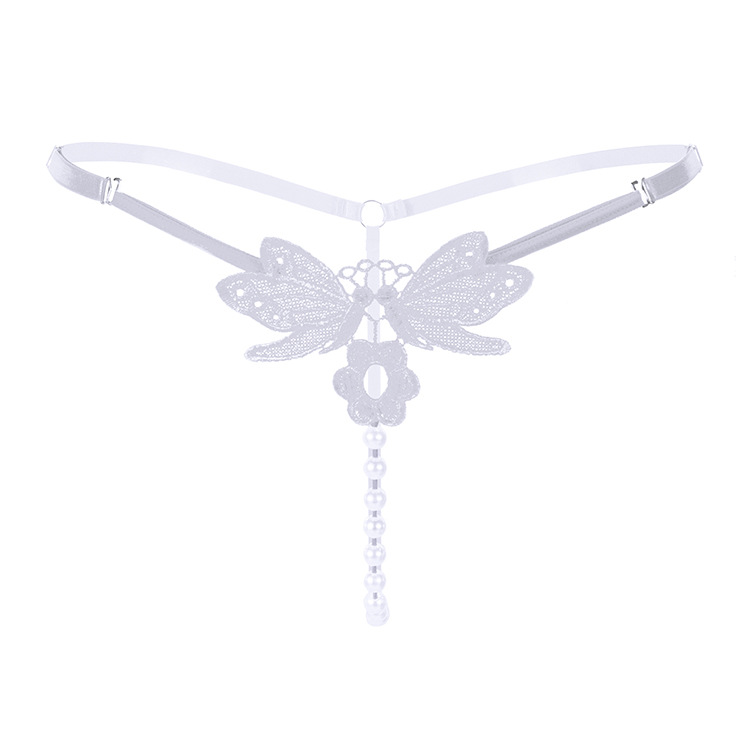 奢华刺绣珍珠性感内裤女士透明诱惑丁字裤低腰可调大小T裤头 2146