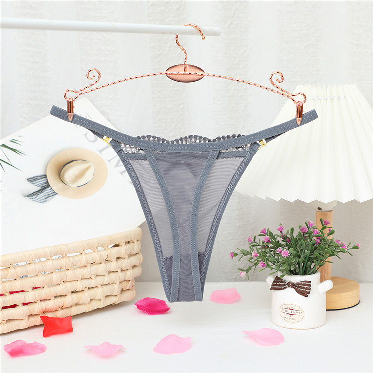 欧美钻饰 全透明网纱蕾丝 性感女式内裤诱惑T裤女士丁字裤女 5017