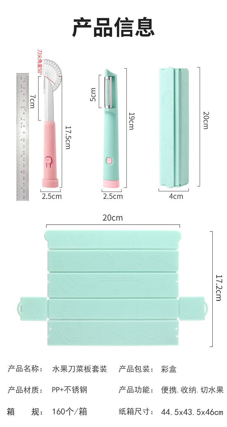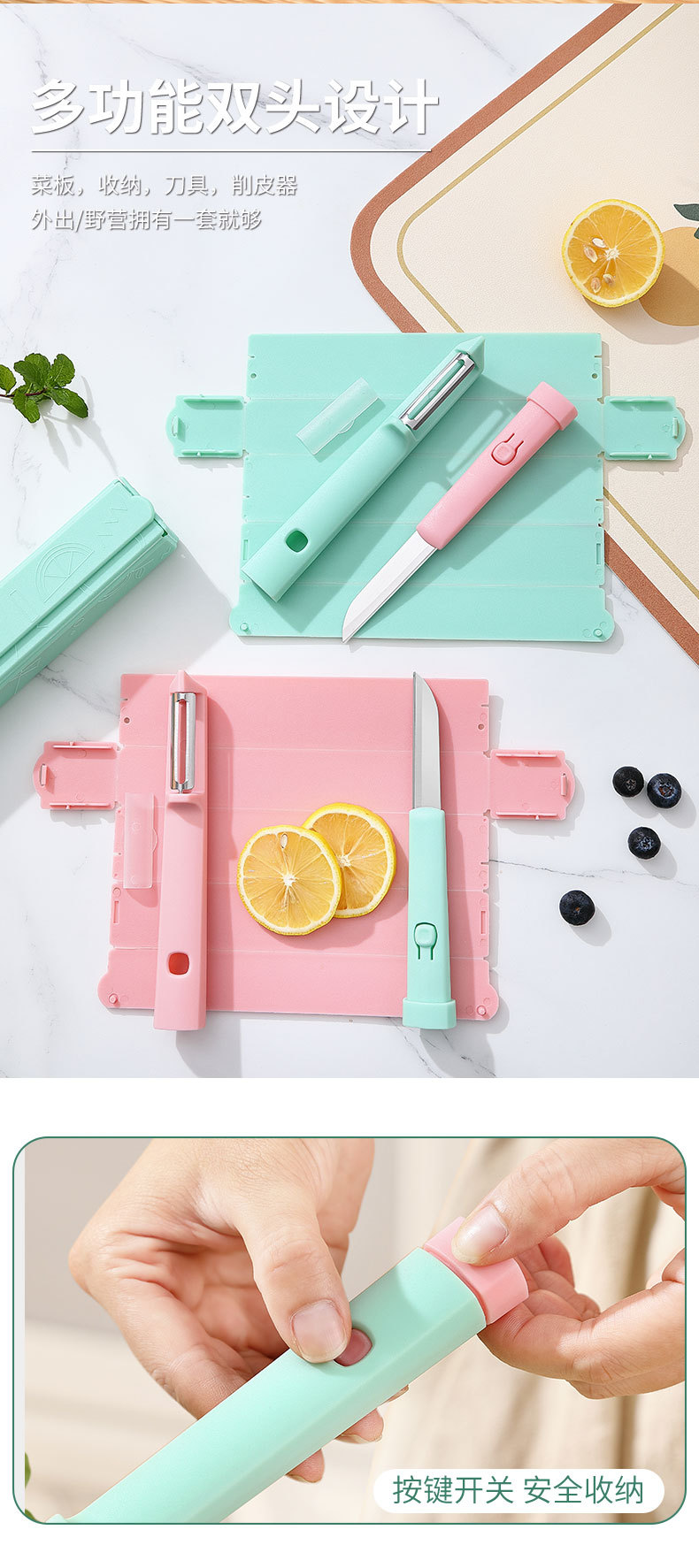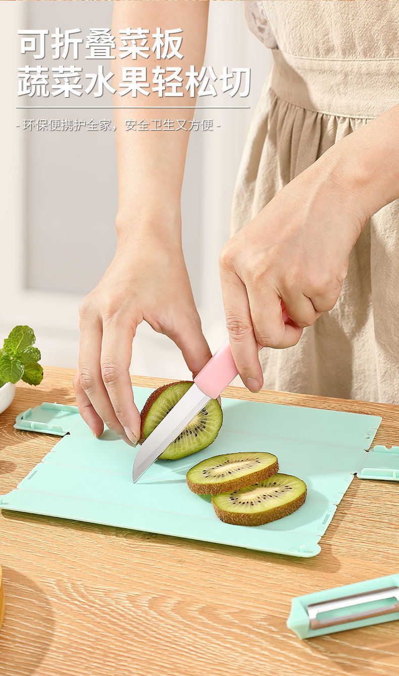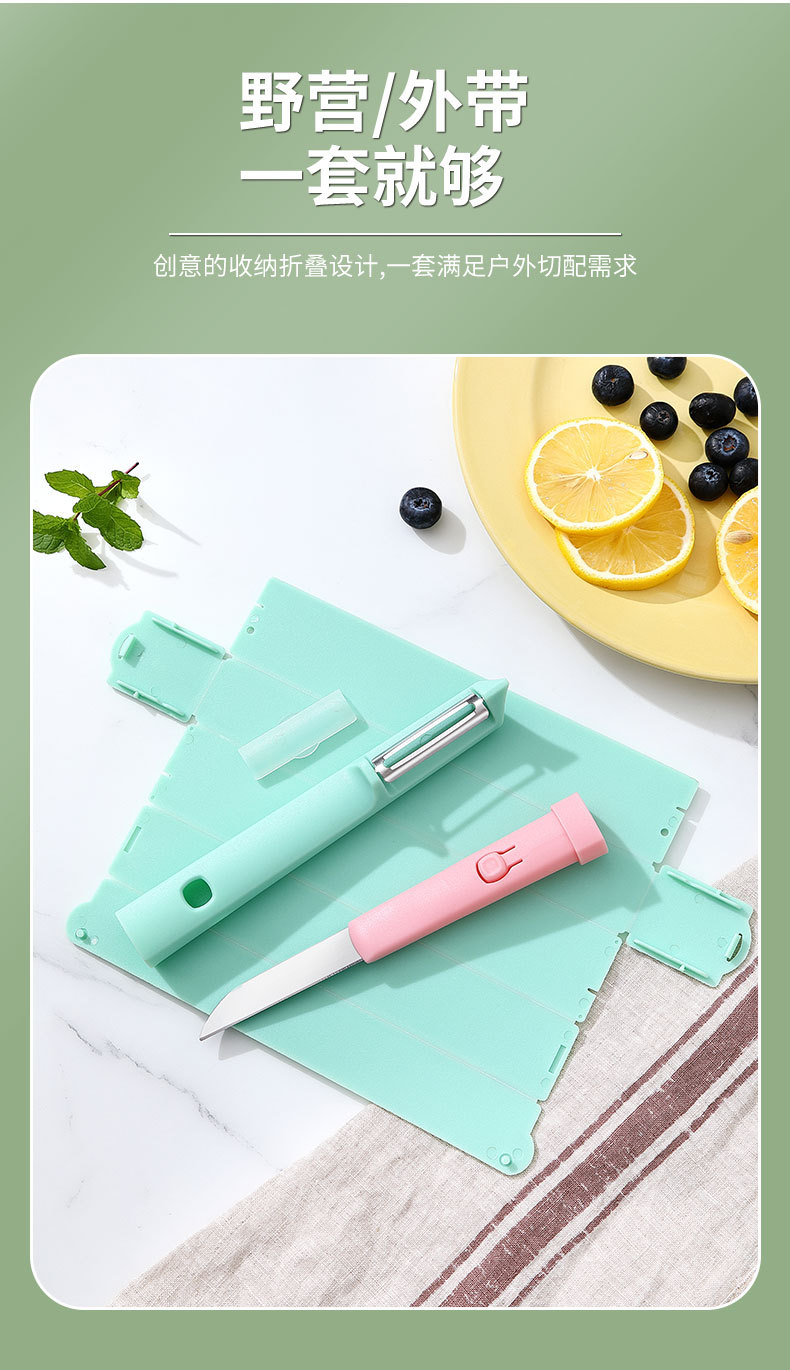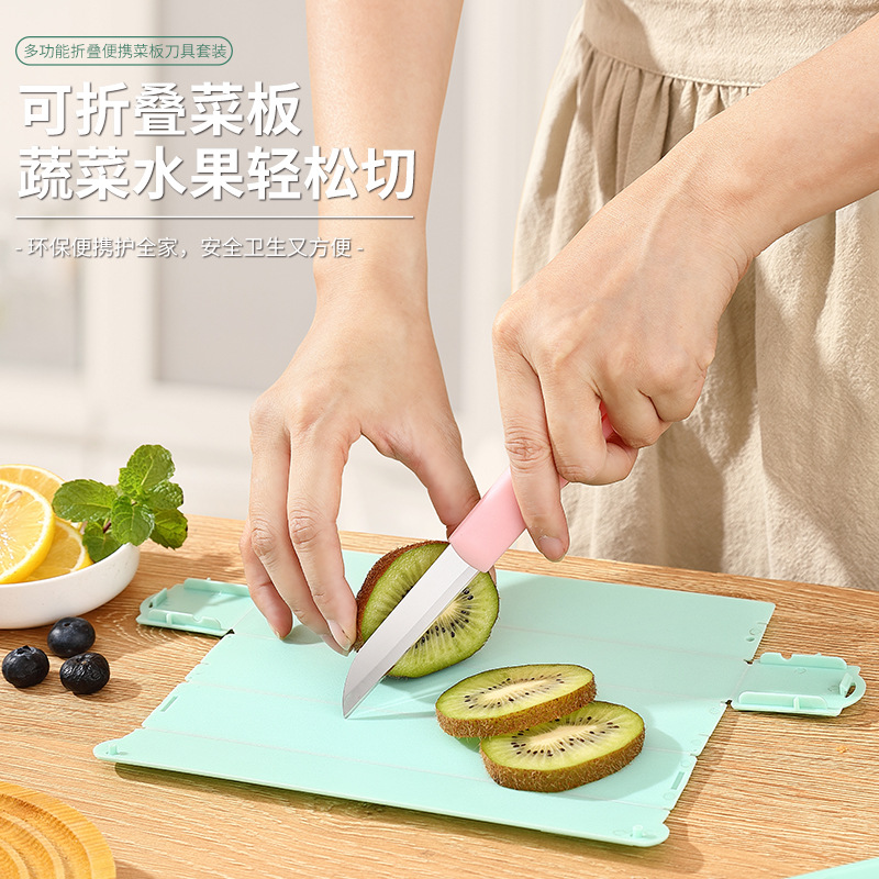 菜板套装带收纳多功能水果刀砧板折叠案板刀具套装便携塑料小菜板