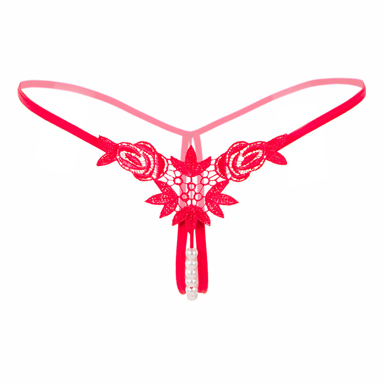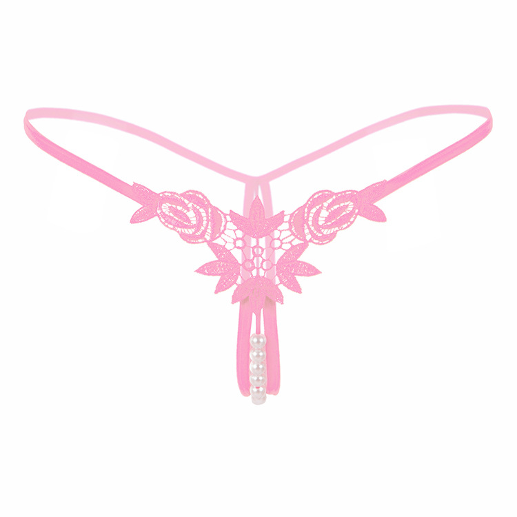 大牌刺绣立体情趣内裤珍珠女士水溶花丁字裤低腰性感透视T裤 2145
