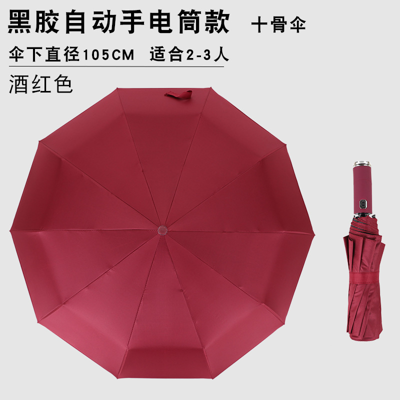 雨伞全自动折叠伞黑胶防晒晴雨两用手电筒伞男女商务礼品广告雨伞