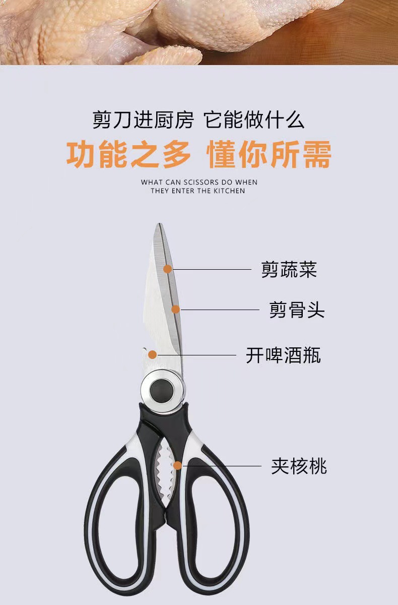 熊猫剪厨房剪刀鸡骨剪多功能不锈钢家用强力剪刀食物剪厨房工具