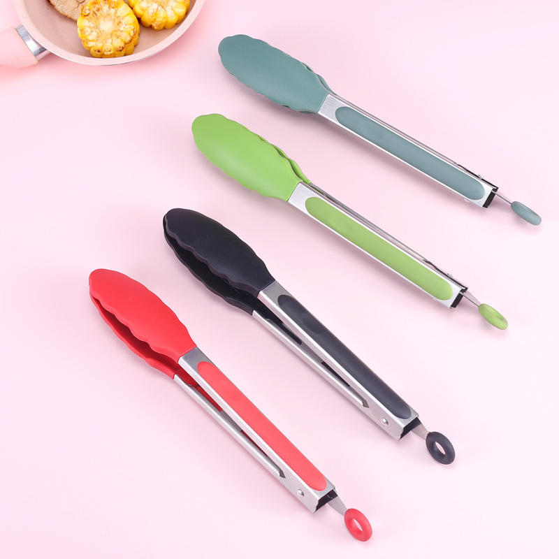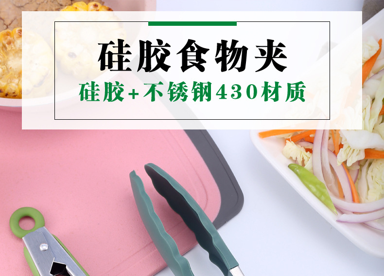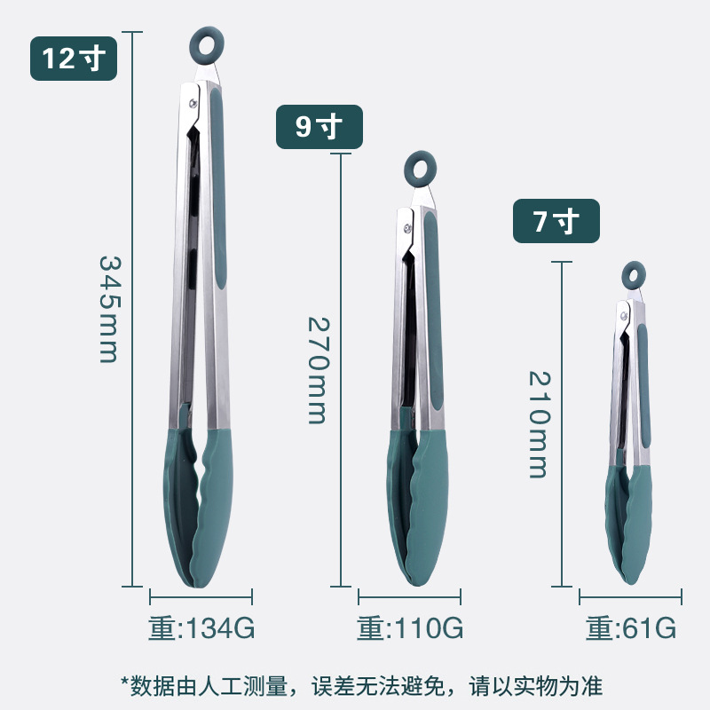 硅胶食物夹9寸BBQ烧烤夹耐高温不锈钢厨房防烫工具烘焙食品面包夹