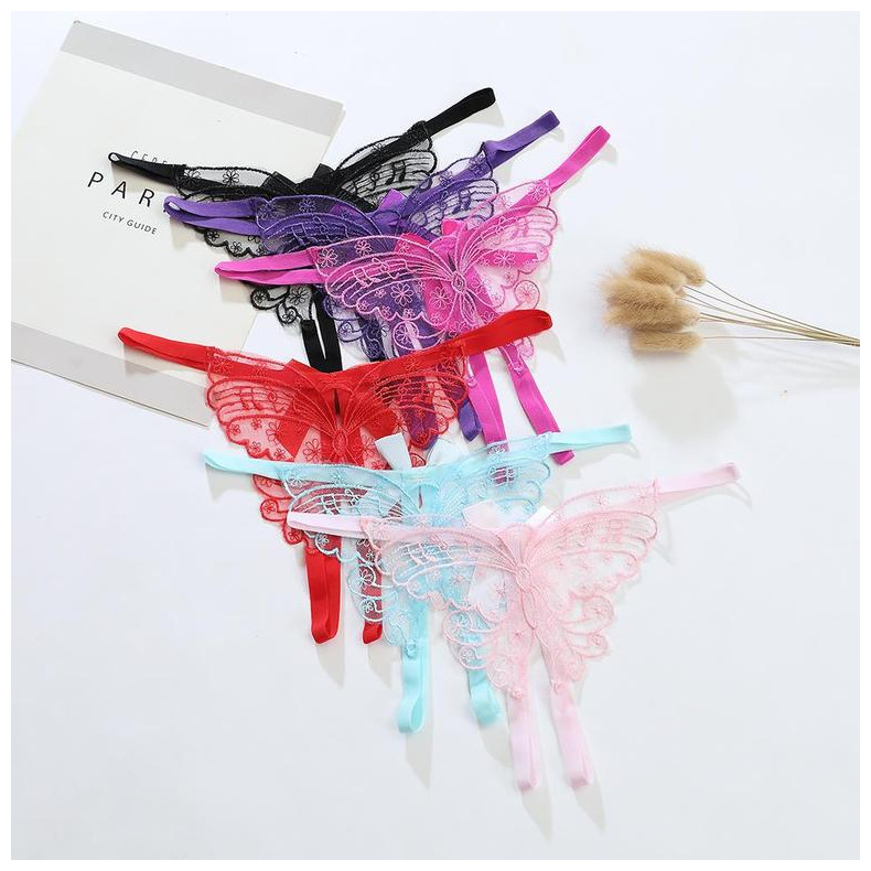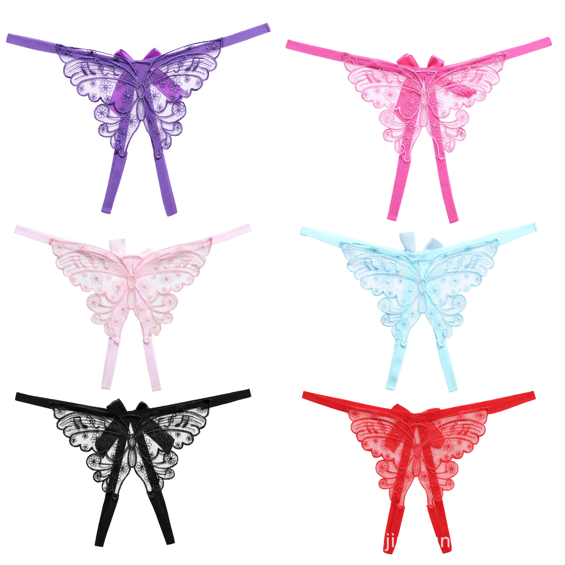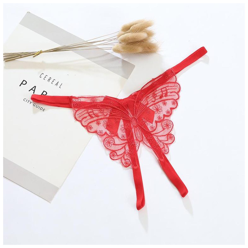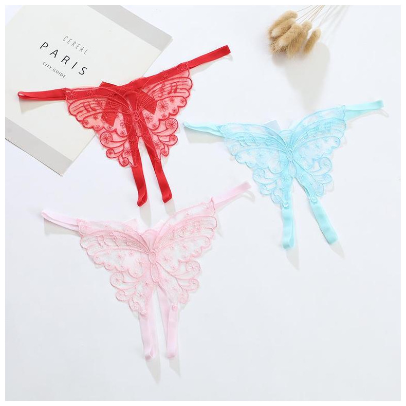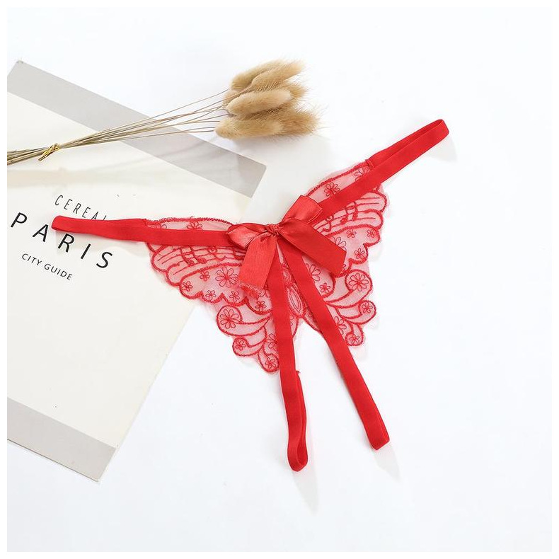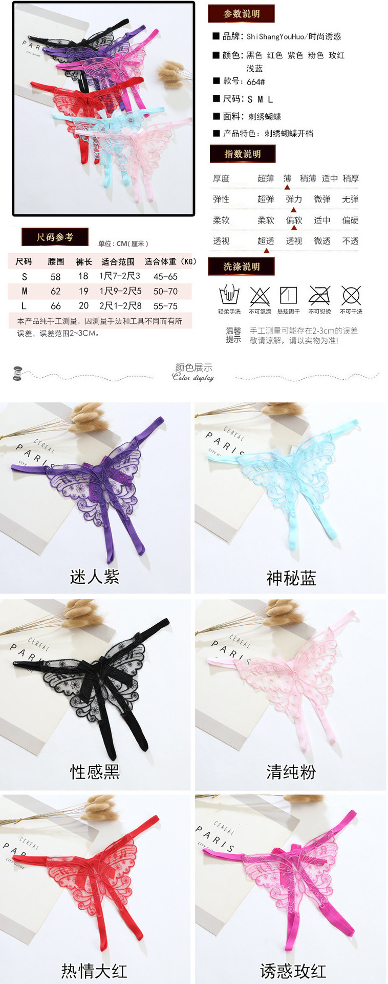 性感细带开档丁字裤T裤女内裤透明 低腰分码情趣蝴蝶绣花内裤 664