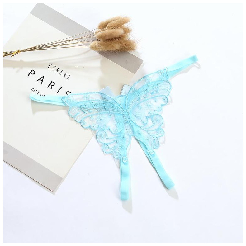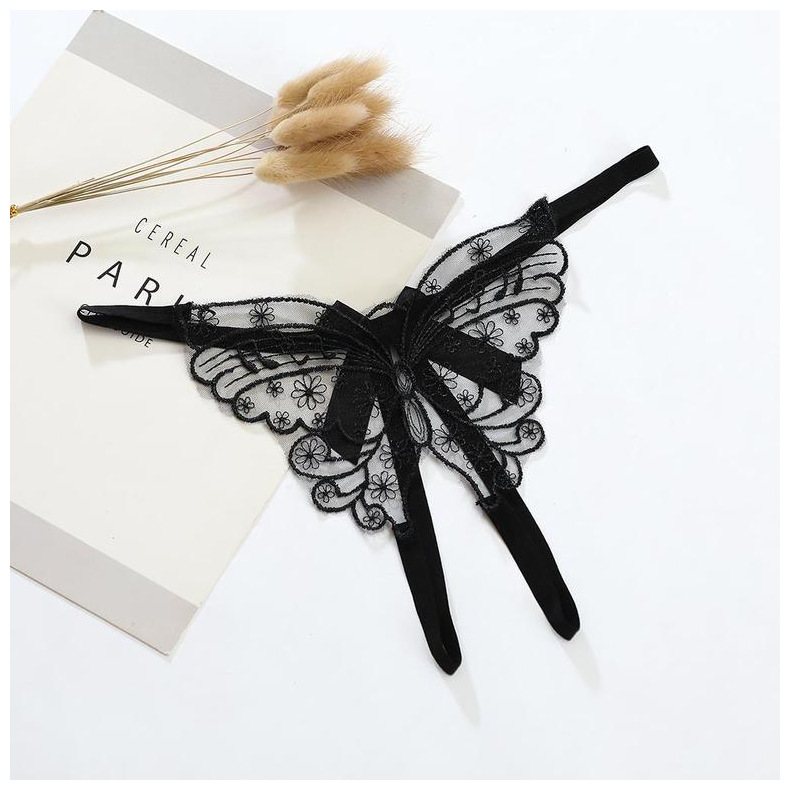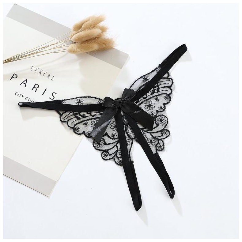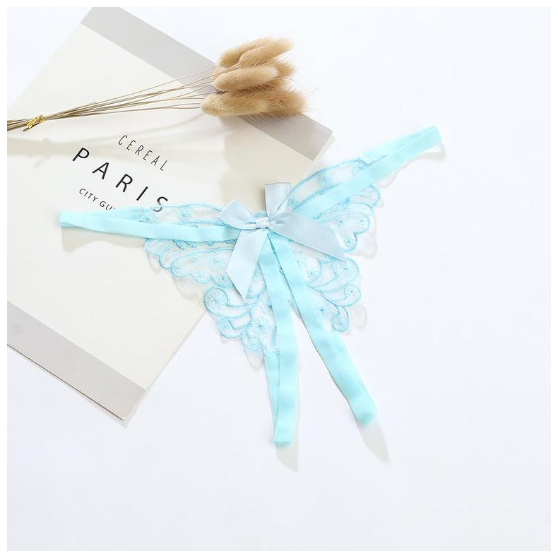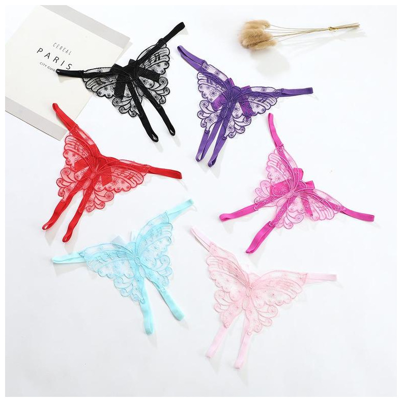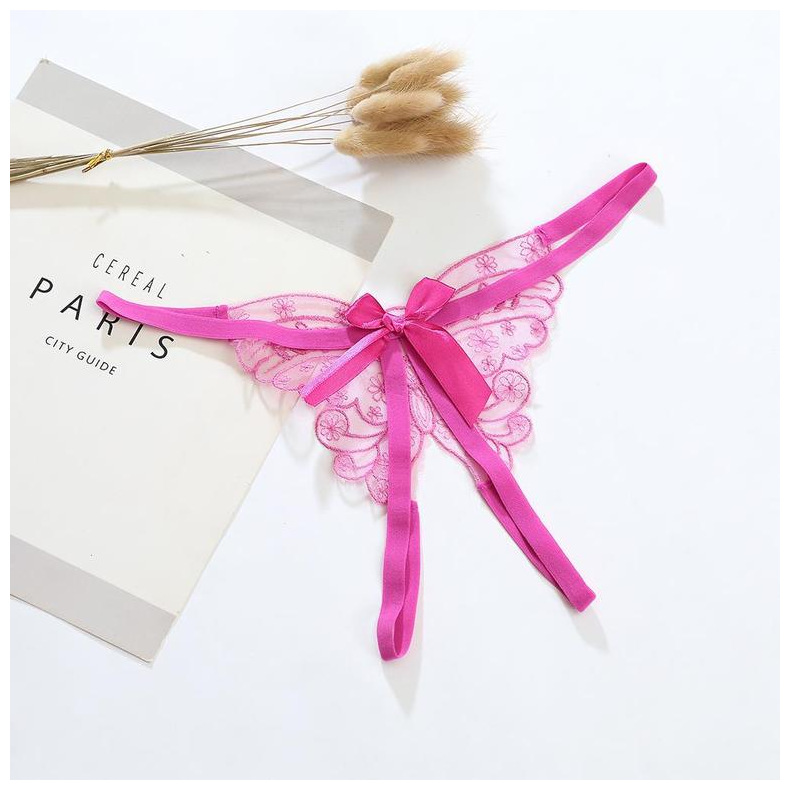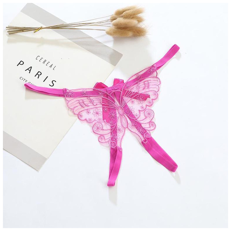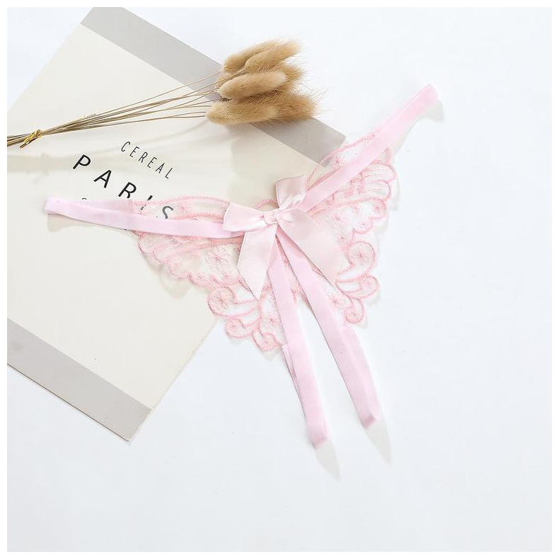 性感细带开档丁字裤T裤女内裤透明 低腰分码情趣蝴蝶绣花内裤 664