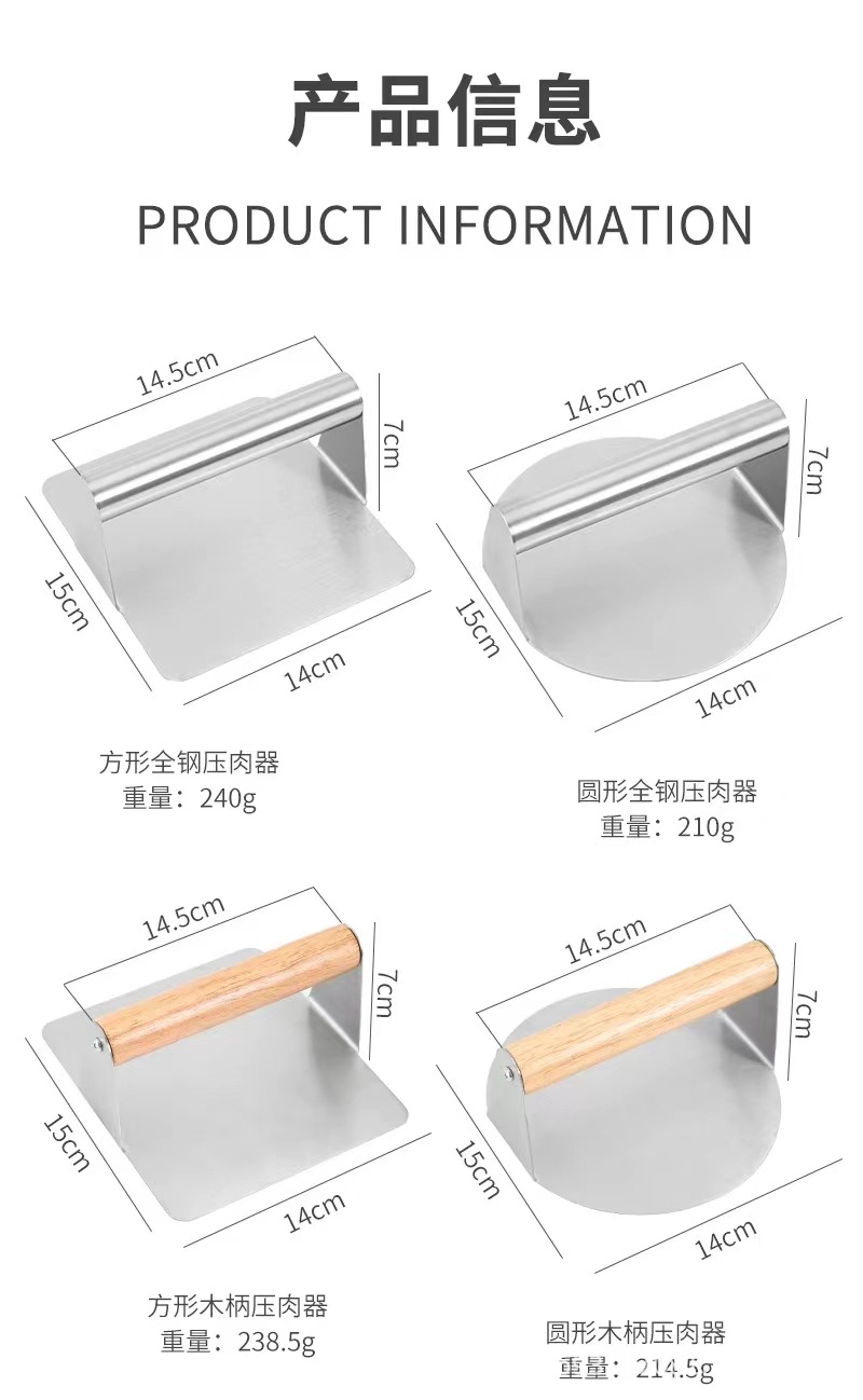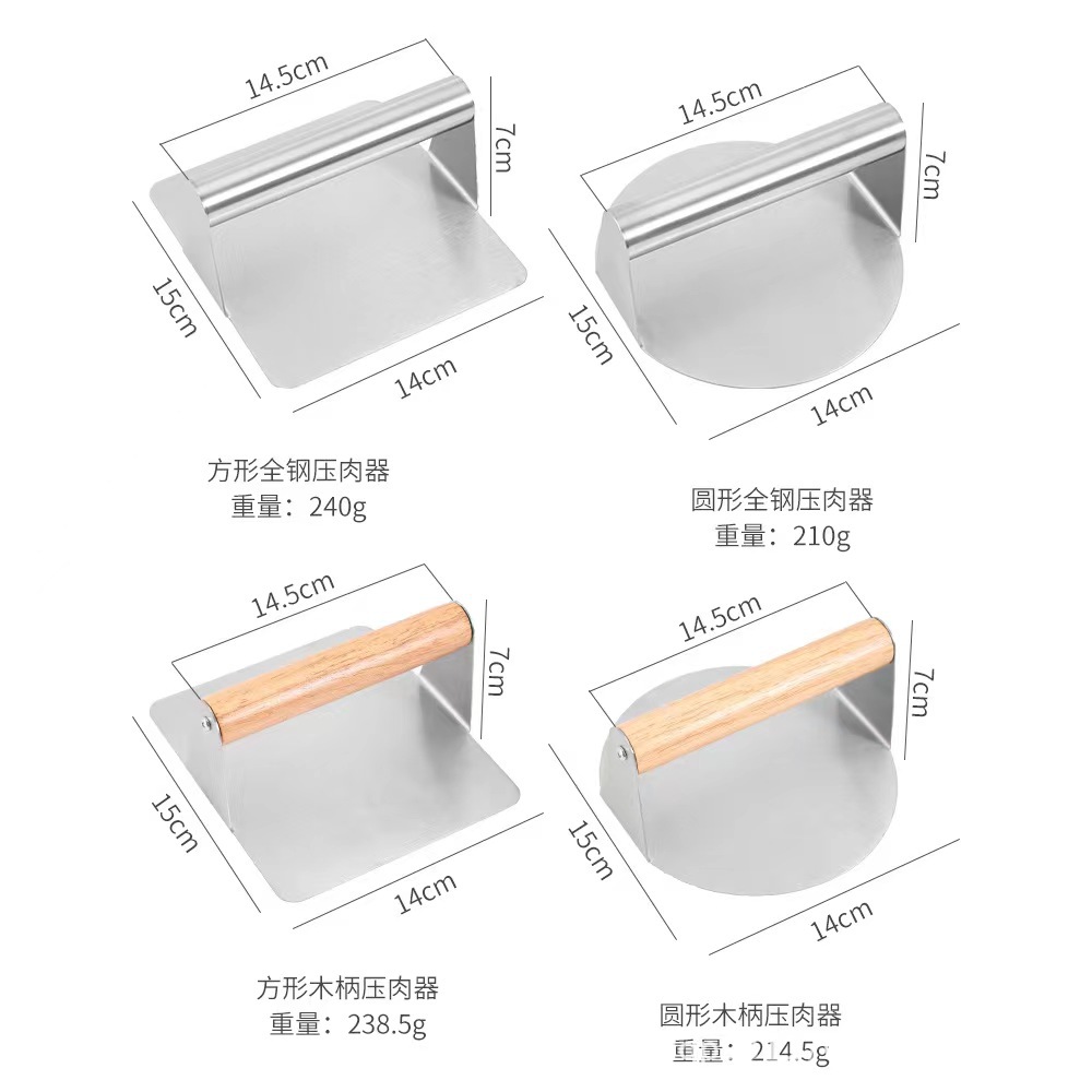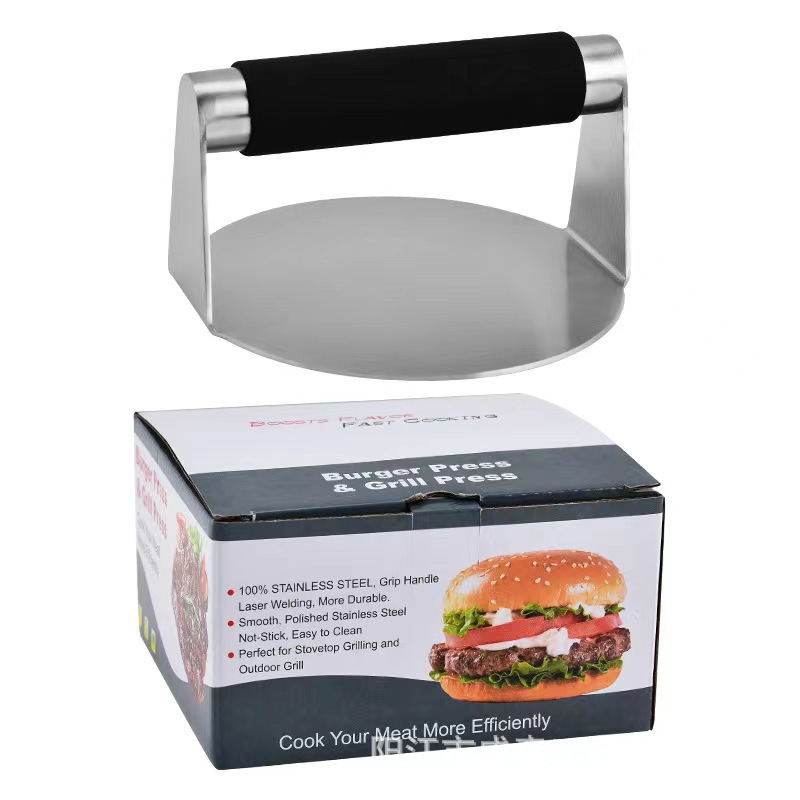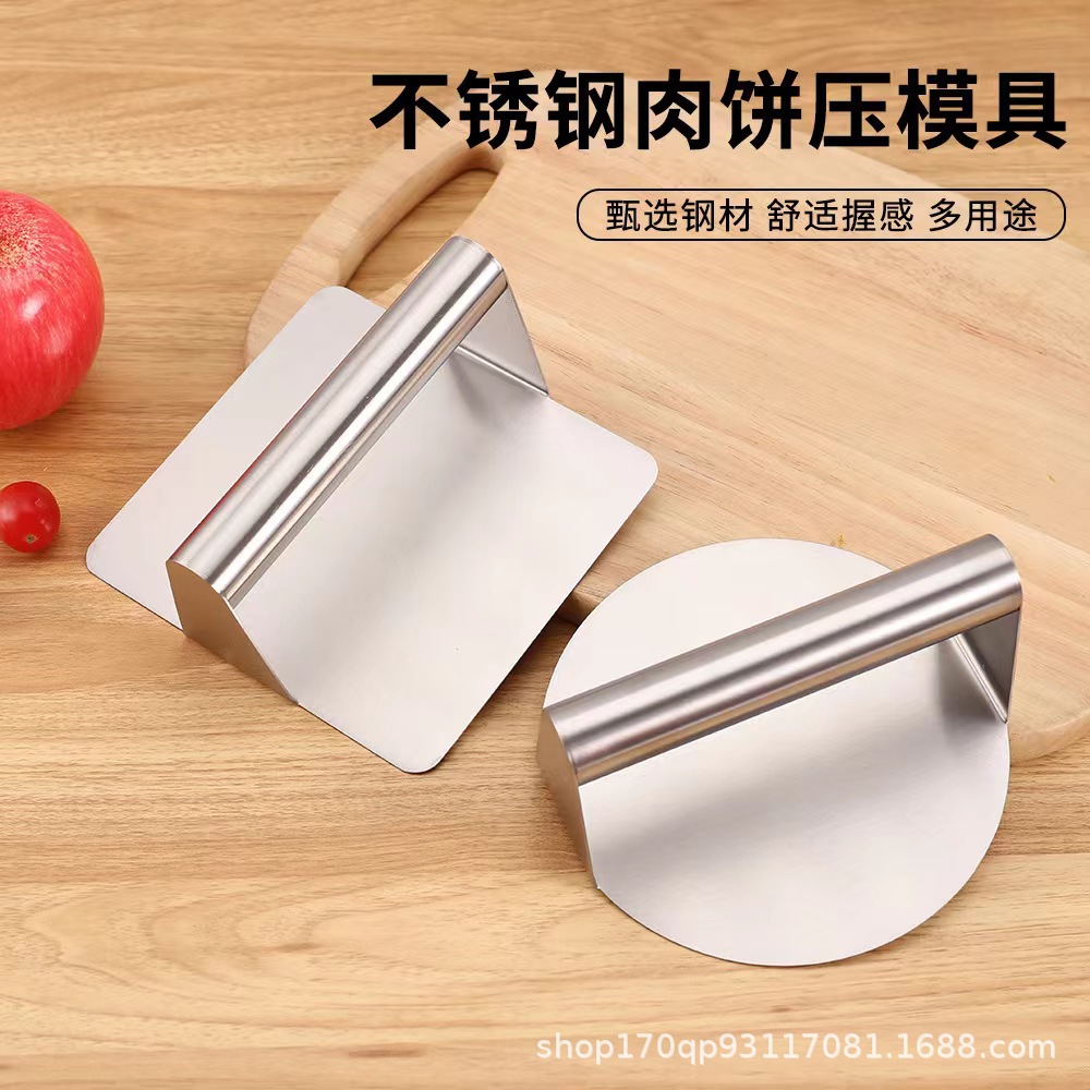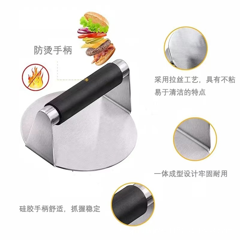 跨境厨房工具430不锈钢汉堡压肉器家用牛排肉饼压手压汉堡制作器