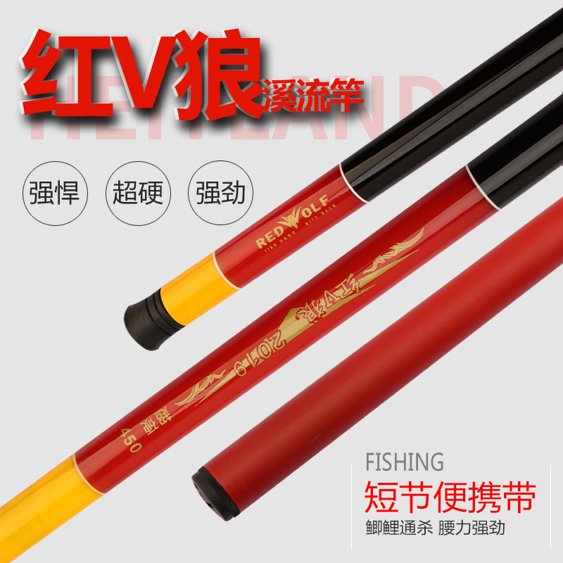 厂家批发鱼竿玻璃钢手竿超硬调溪流竿钓鱼竿短节手竿4.5米