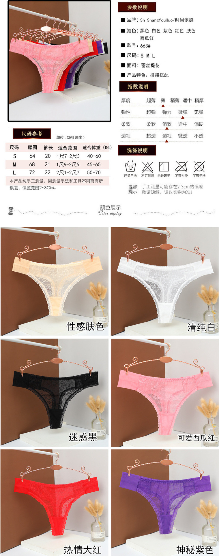 欧美性感蕾丝内裤女透气镂空丁字裤 女士内裤低腰少女诱惑裤头663