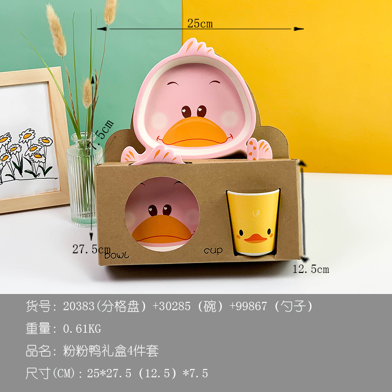 高颜值儿童餐具可爱小黄鸭餐盘宝宝辅食盘小孩吃饭辅食盘分格盘子