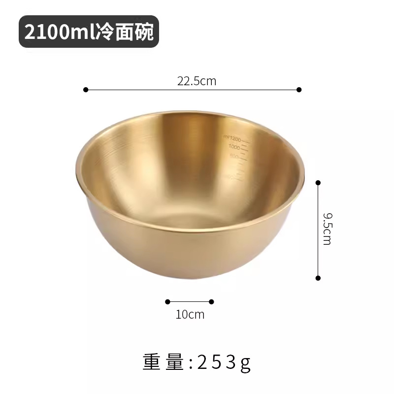 不锈钢冷面碗高颜值带刻度家用水果沙拉碗拌饭碗ins风韩式餐具