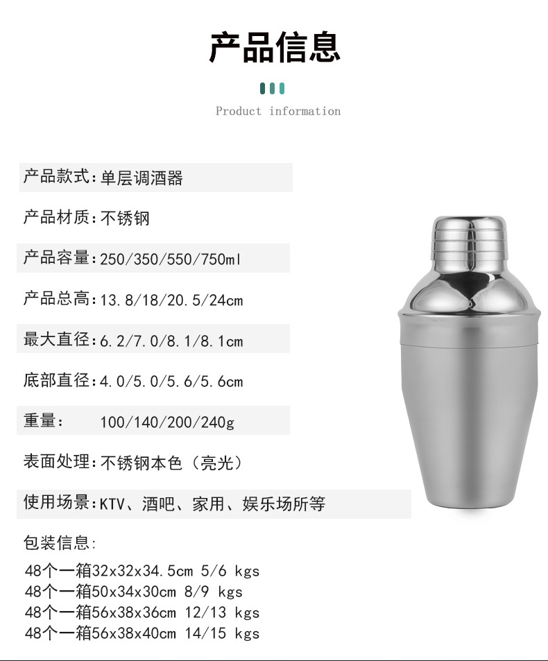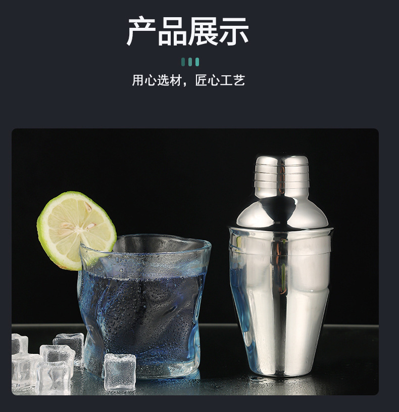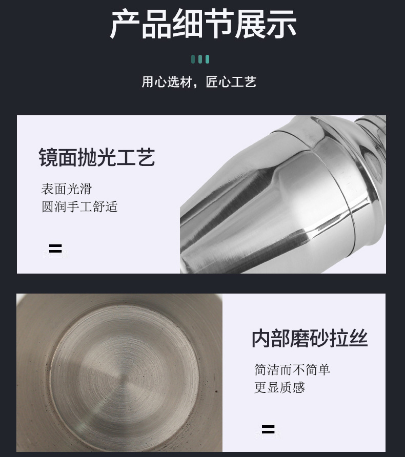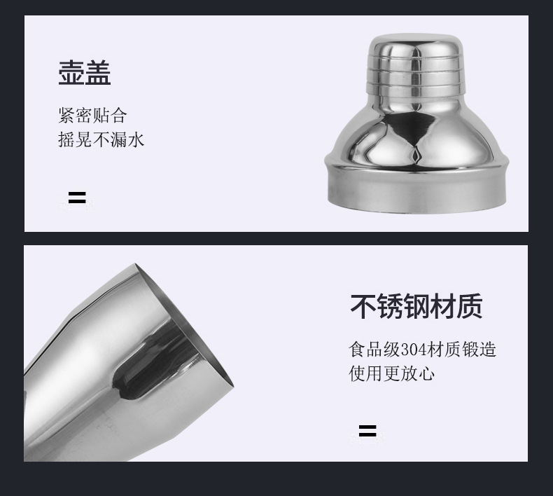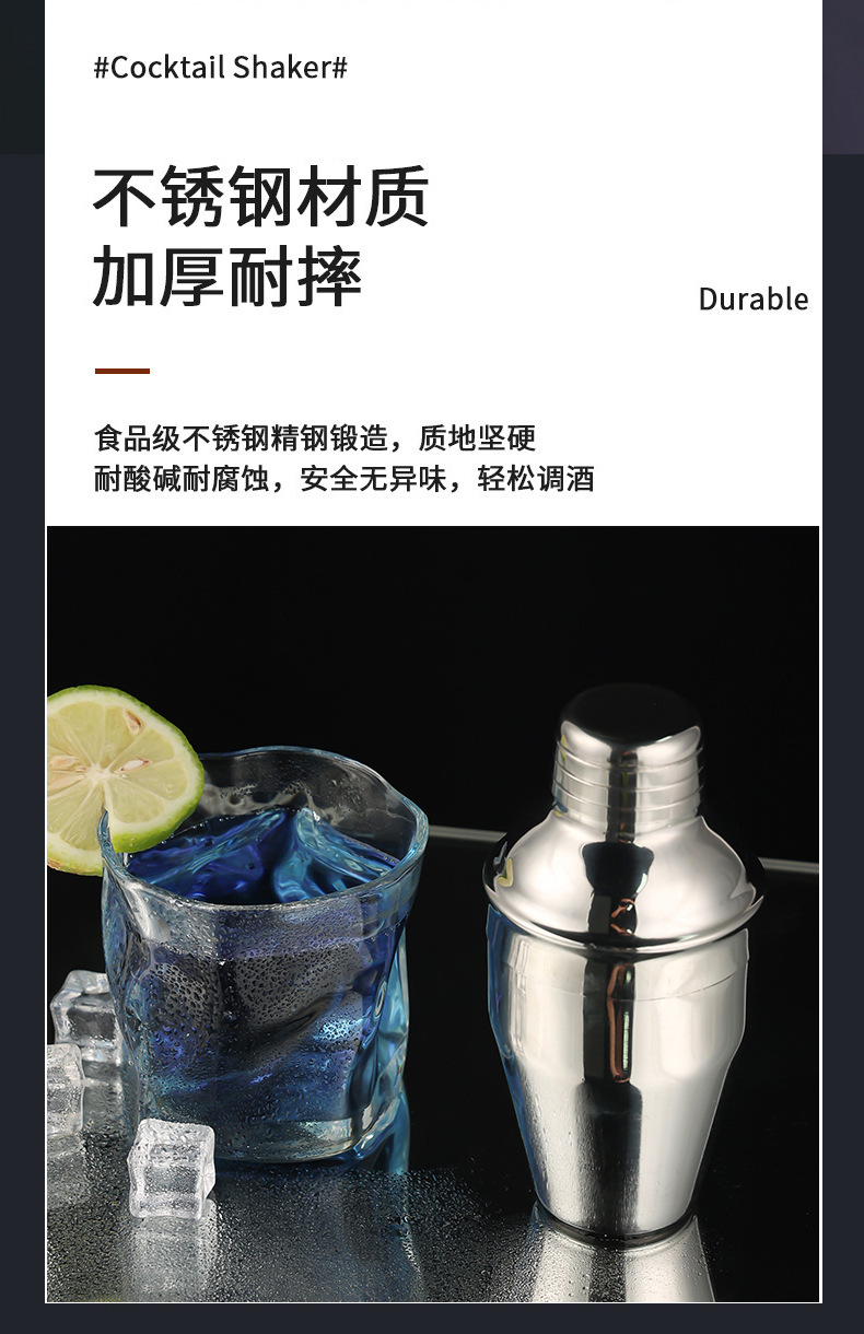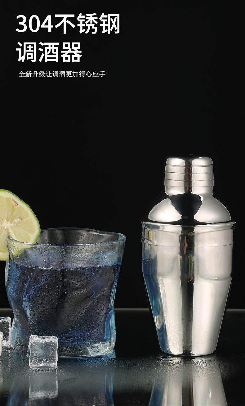 跨境新款不锈钢摇酒器多尺寸三段式手摇雪克杯家用酒吧鸡尾调酒器