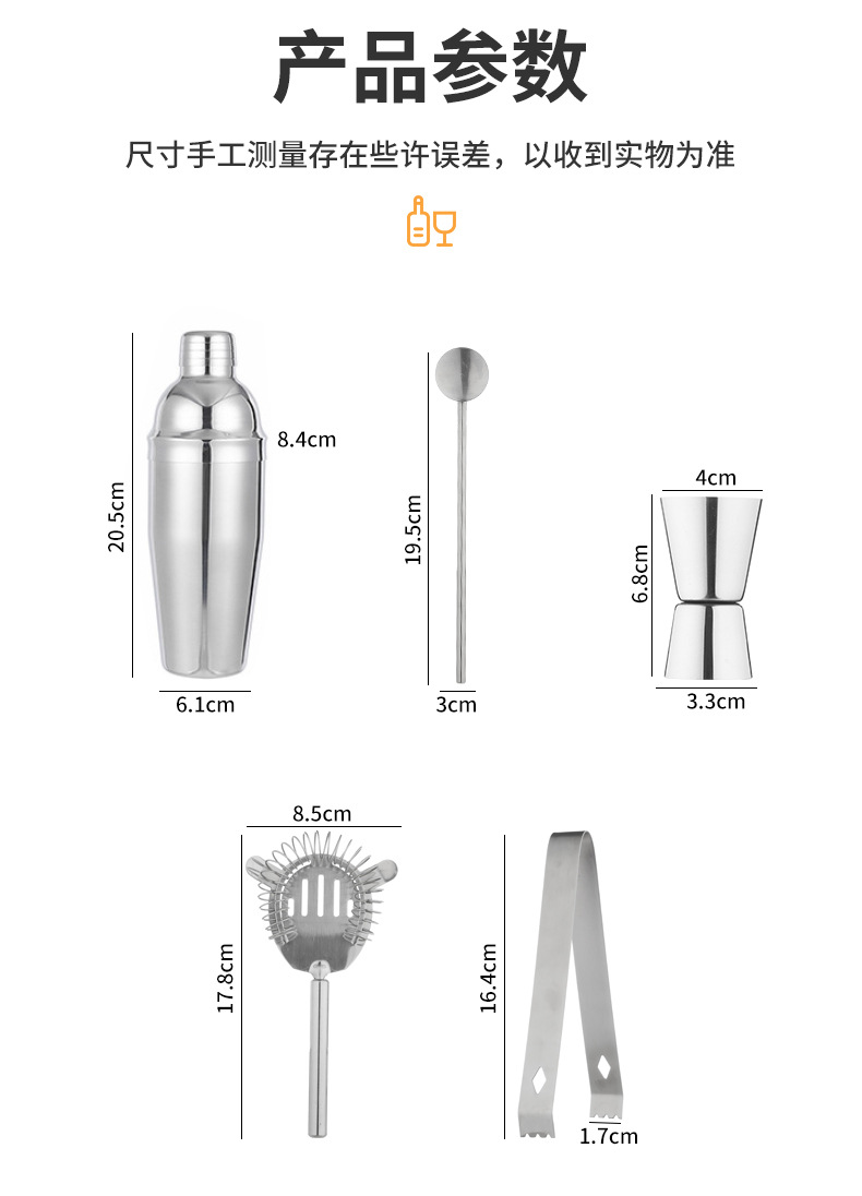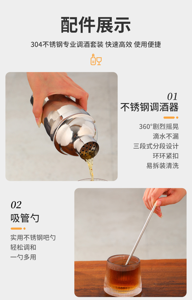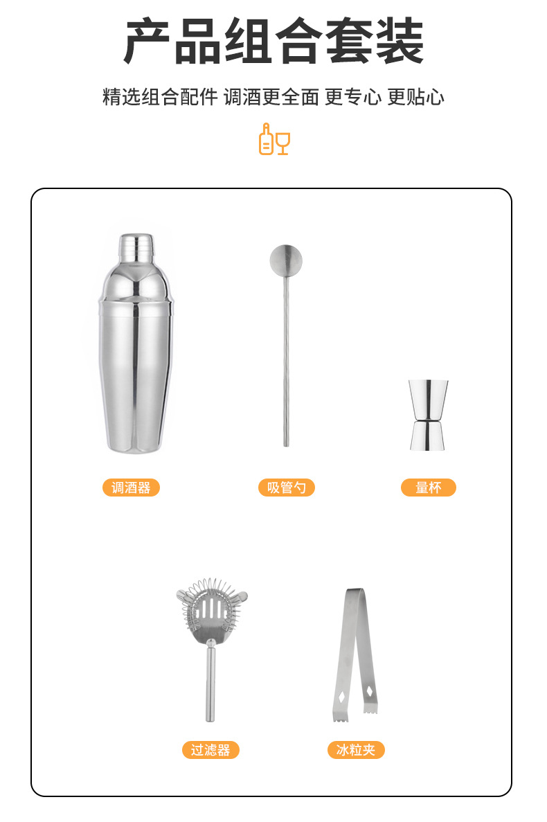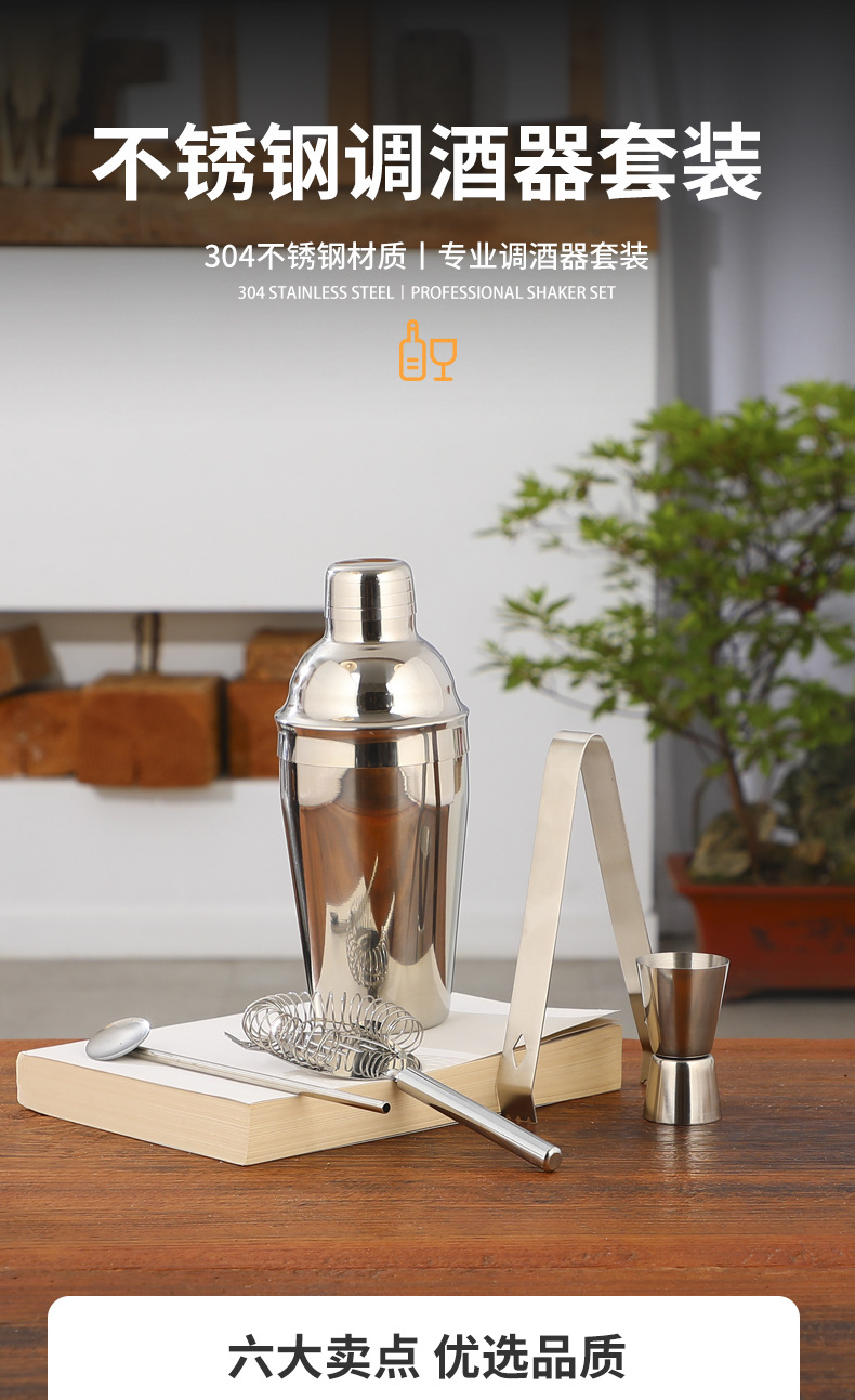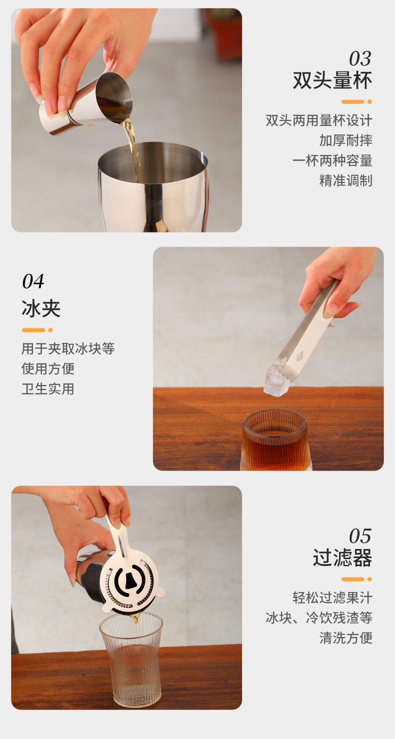 英式不锈钢调酒器套装雪克师鸡尾酒调酒杯套装全套酒具套装批发