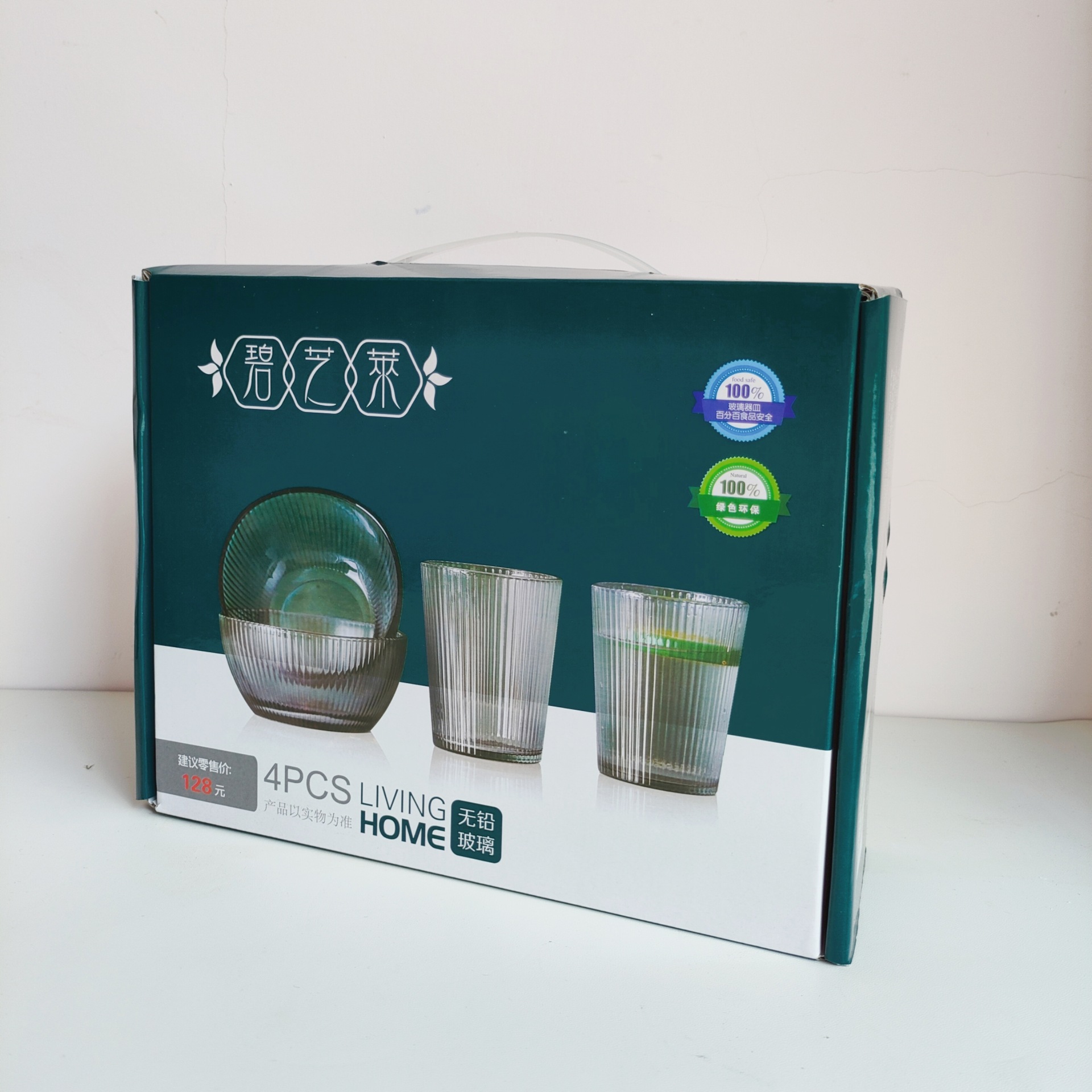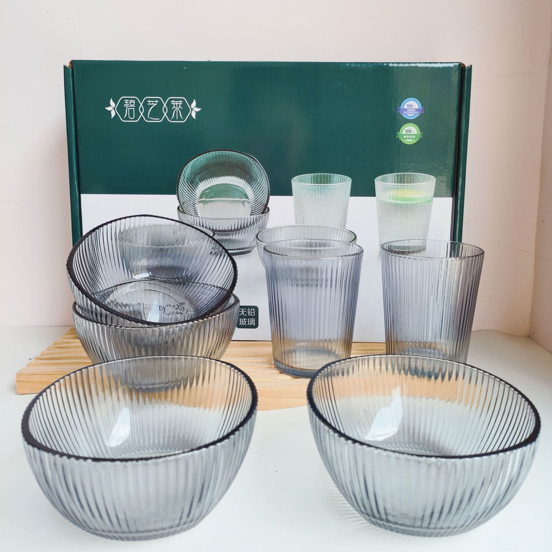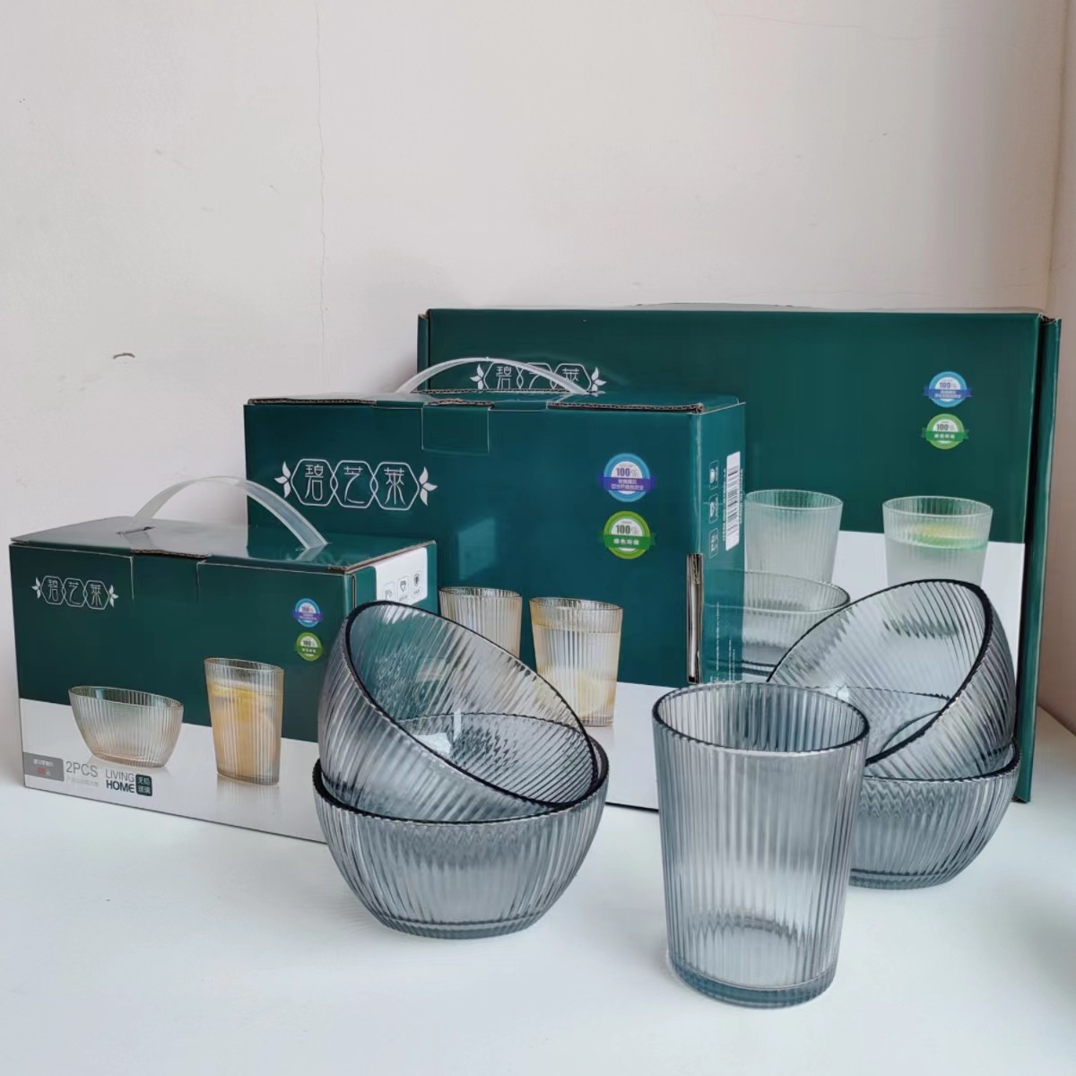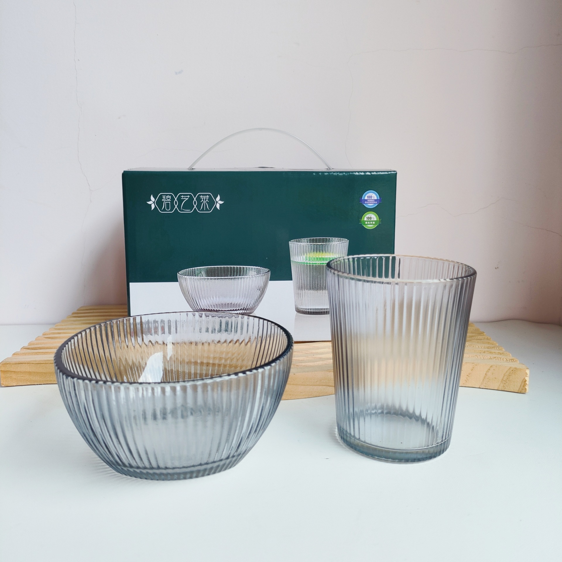 碧芝莱玻璃杯套装带彩盒烟灰色玻璃碗两件套5元内开业活动礼品