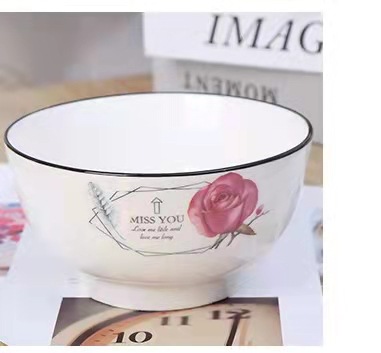 黑口沙拉碗批发两元店北欧风陶瓷饭碗创意家用餐具高脚黑口金花碗