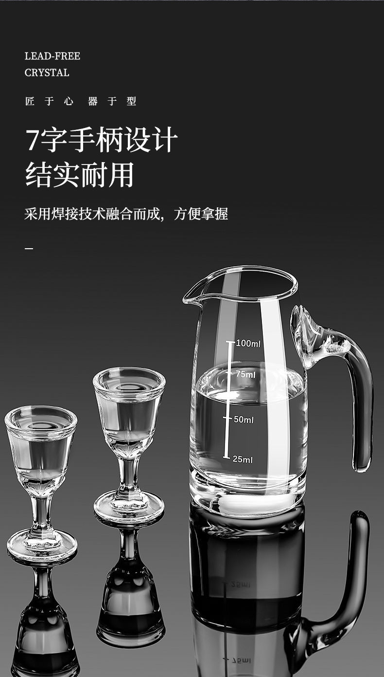 玻璃分酒器白酒杯酒具套装一口杯子弹杯家用小酒杯送礼水晶玻璃杯