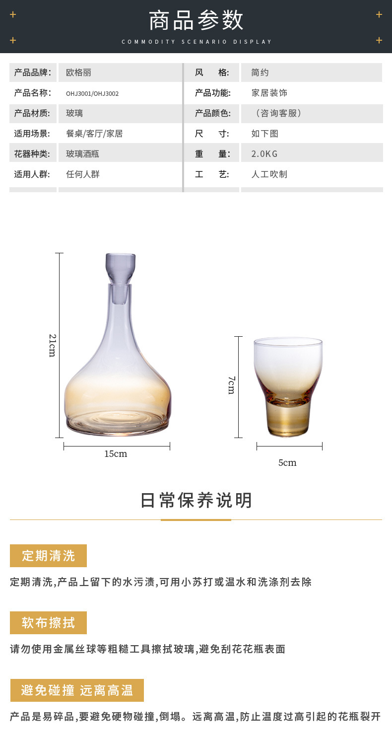 现代简约水晶玻璃酒具创意渐变色红洋酒醒酒器酒柜摆件酒瓶酒杯