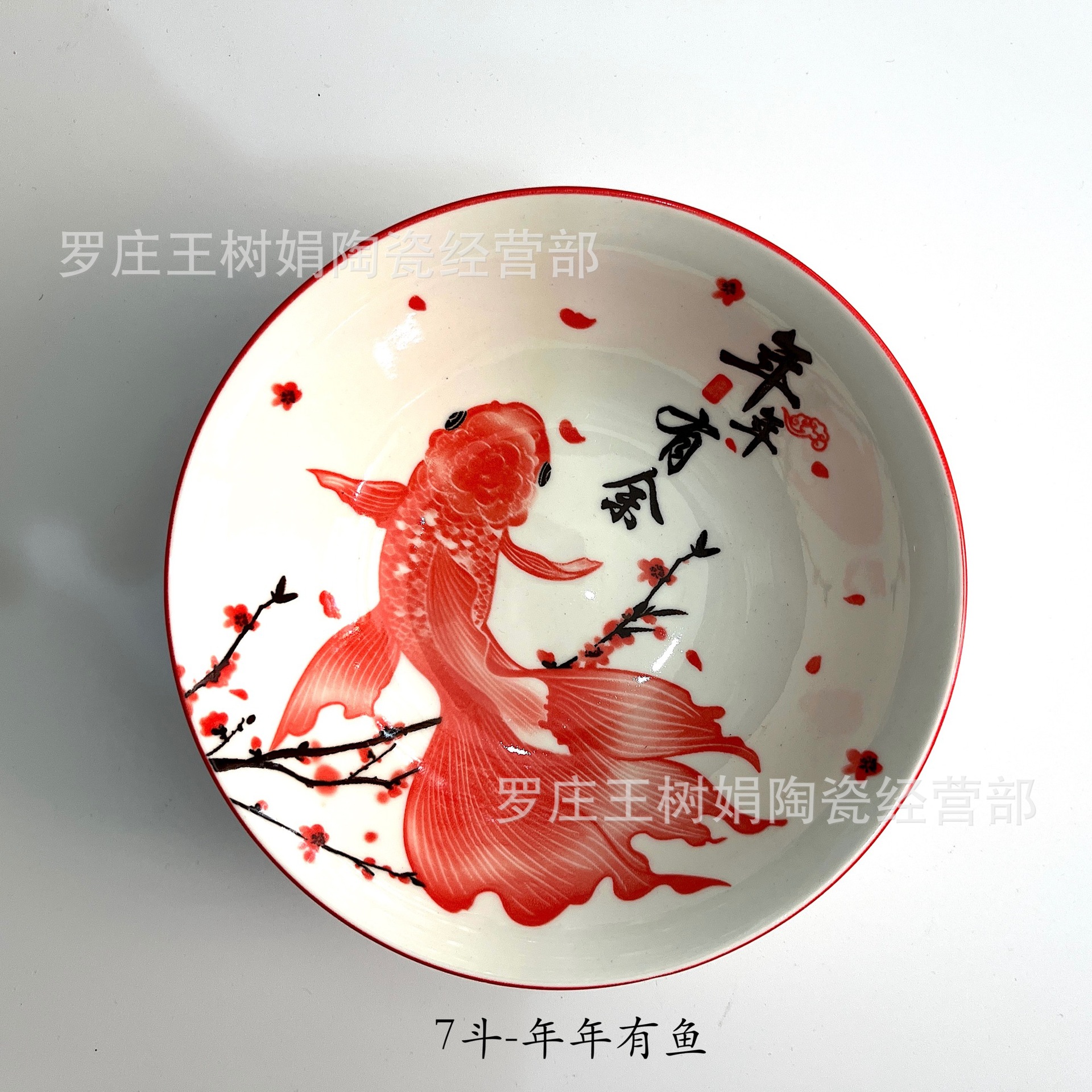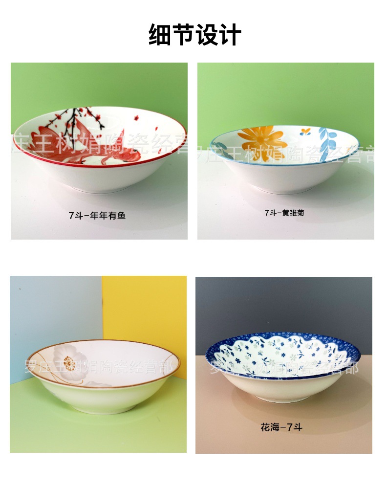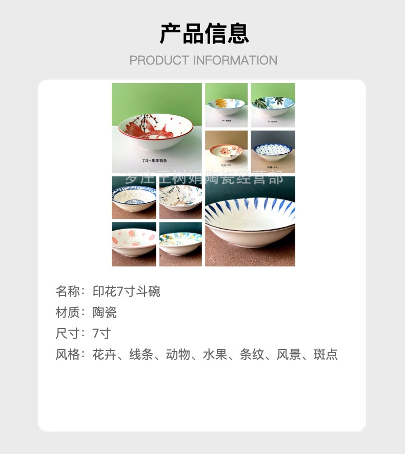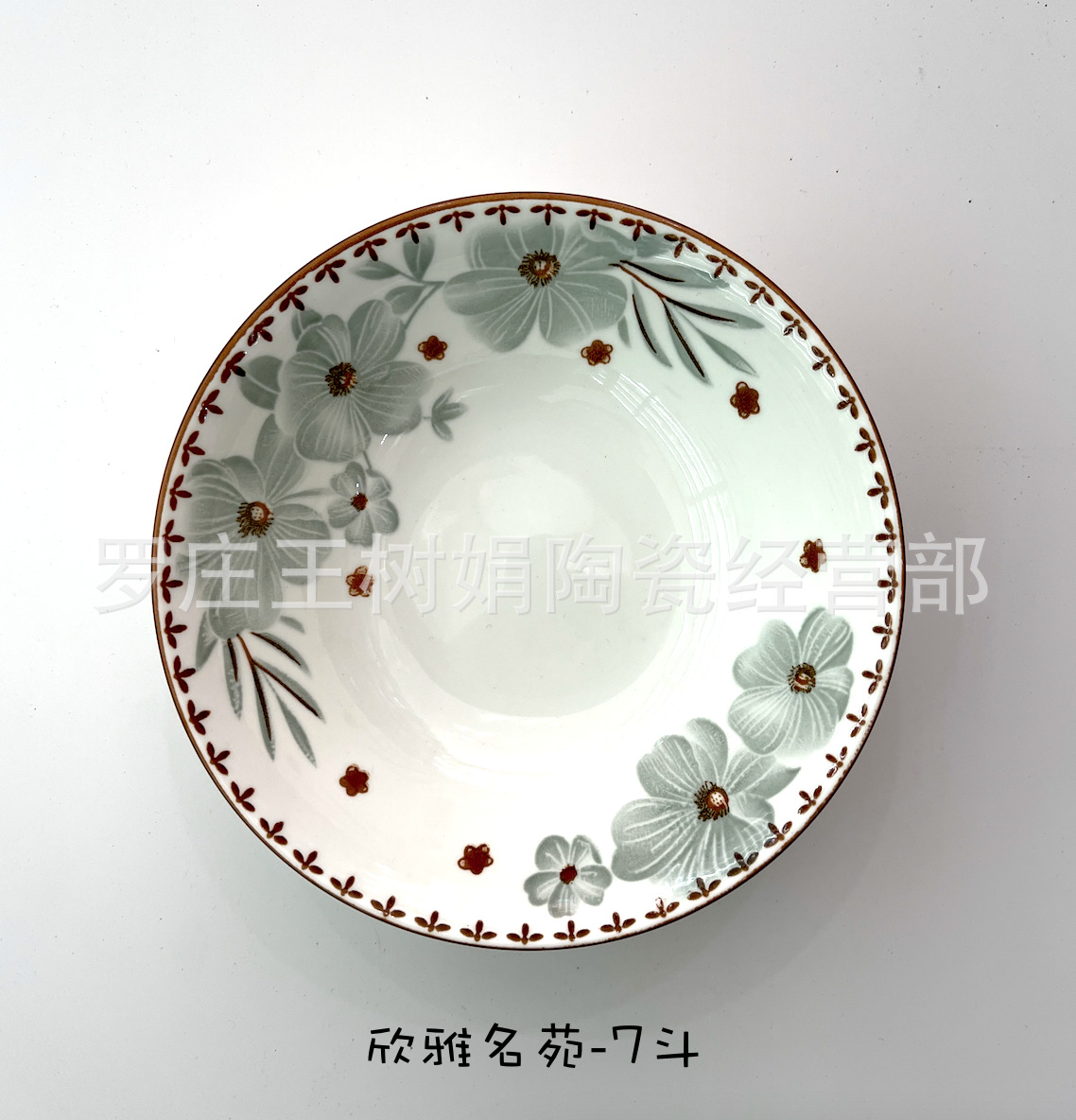 山西印花7寸斗碗面碗汤碗牛肉面碗菜盘厂家批发2元店采购家用瓷